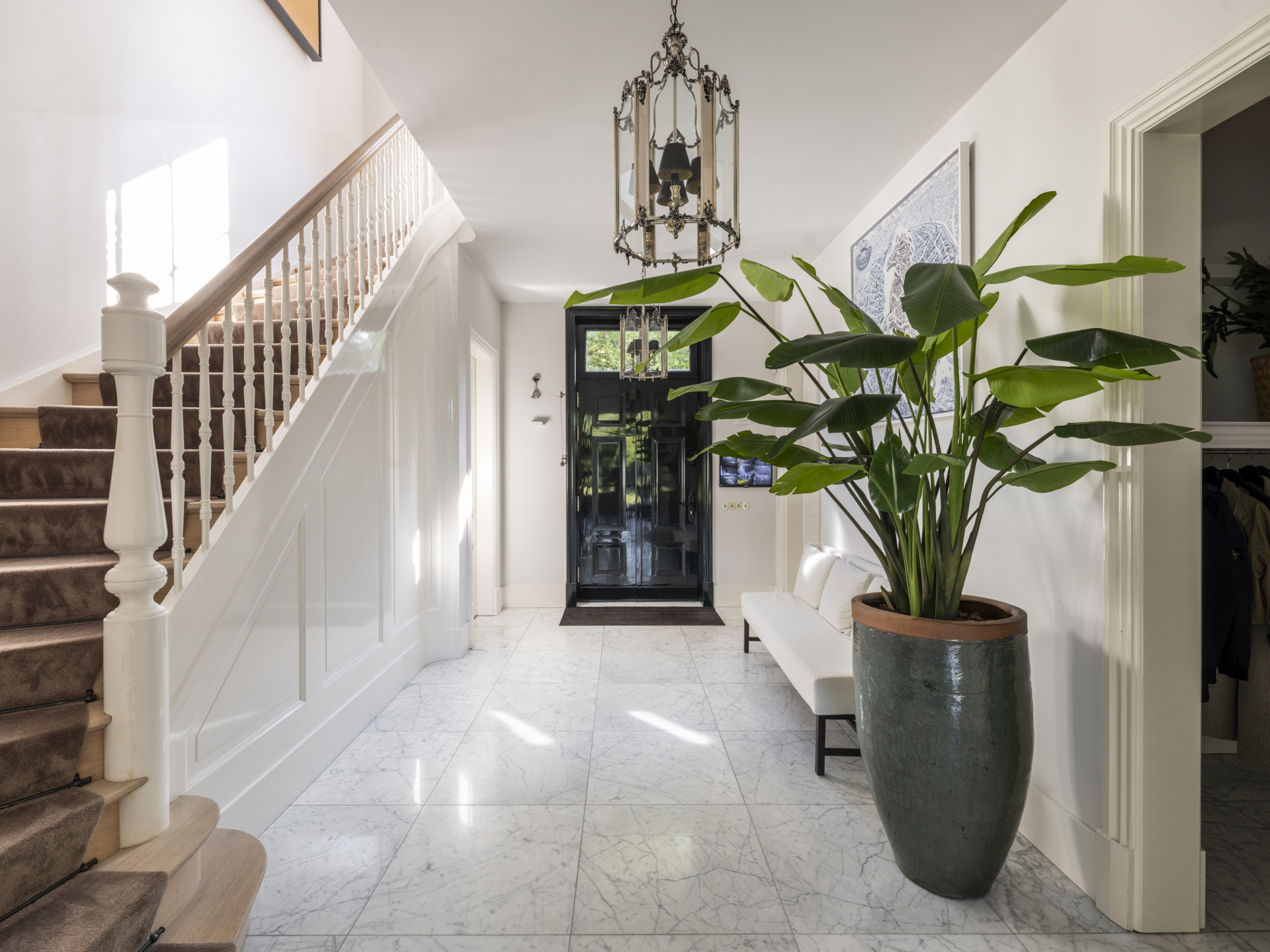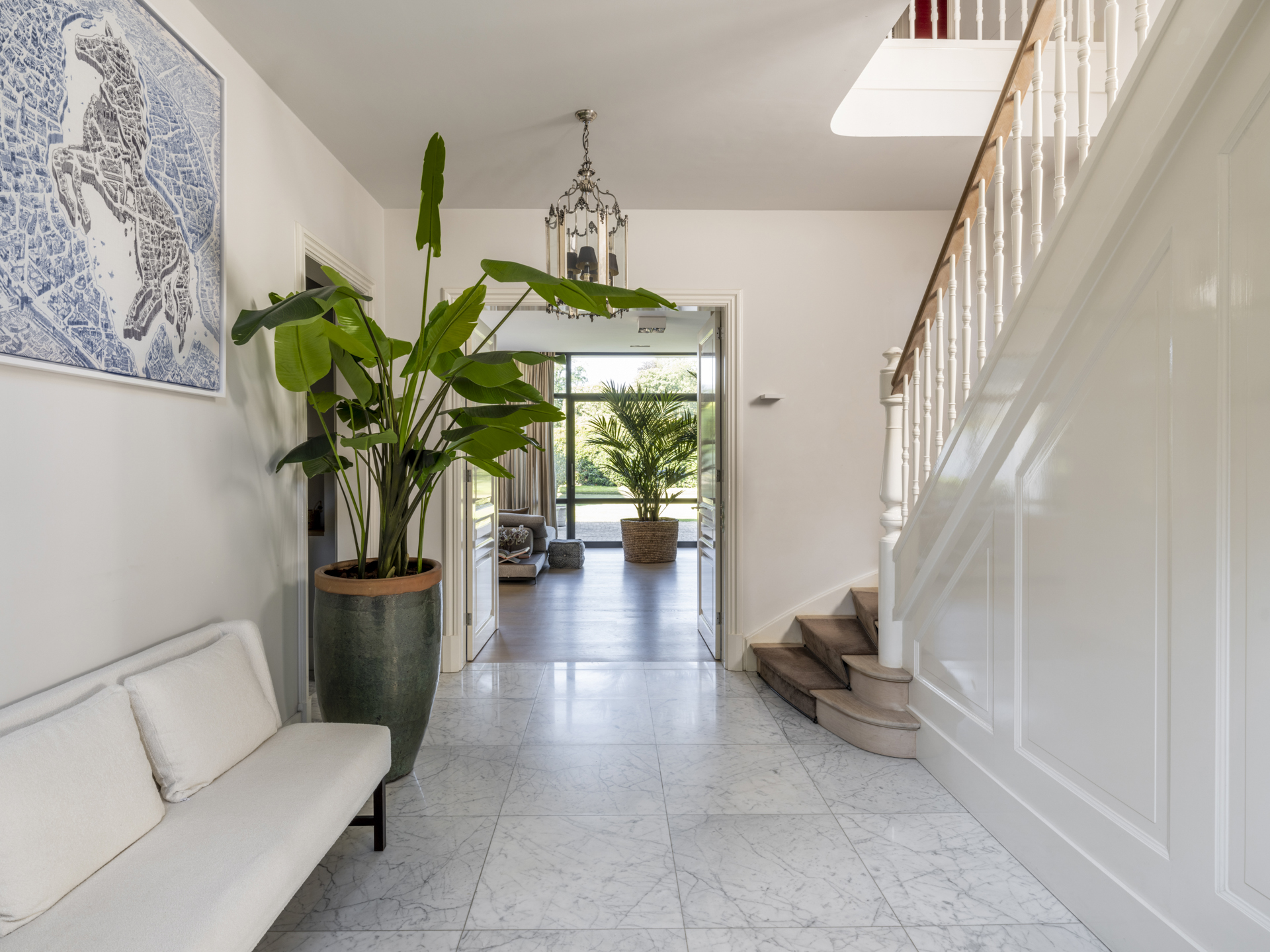 Villa Breda sits discreetly within walking distance of Ginnekenmarkt, the Mastbos, and Markdal, embodying understated grandeur through a fusion of classical and modern architecture. This 850 m² villa for sale in Breda, constructed in 2011, is nestled behind gates in a private courtyard, shaded by plane trees, where a carriage house accommodates four cars and a wooden shed completes the arrival sequence. On a 3,188 m² secured plot, the home offers an atmosphere of cultivated seclusion, heightened by a lush garden, a private swimming pool, and a synthetic grass hockey field, seamlessly blending outdoor leisure with elegant living.