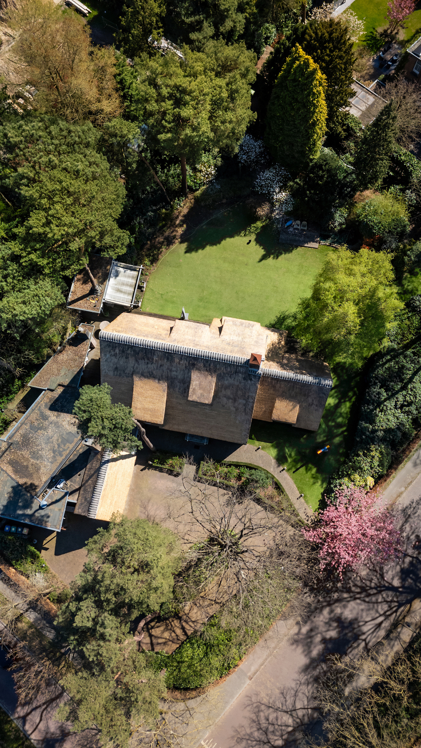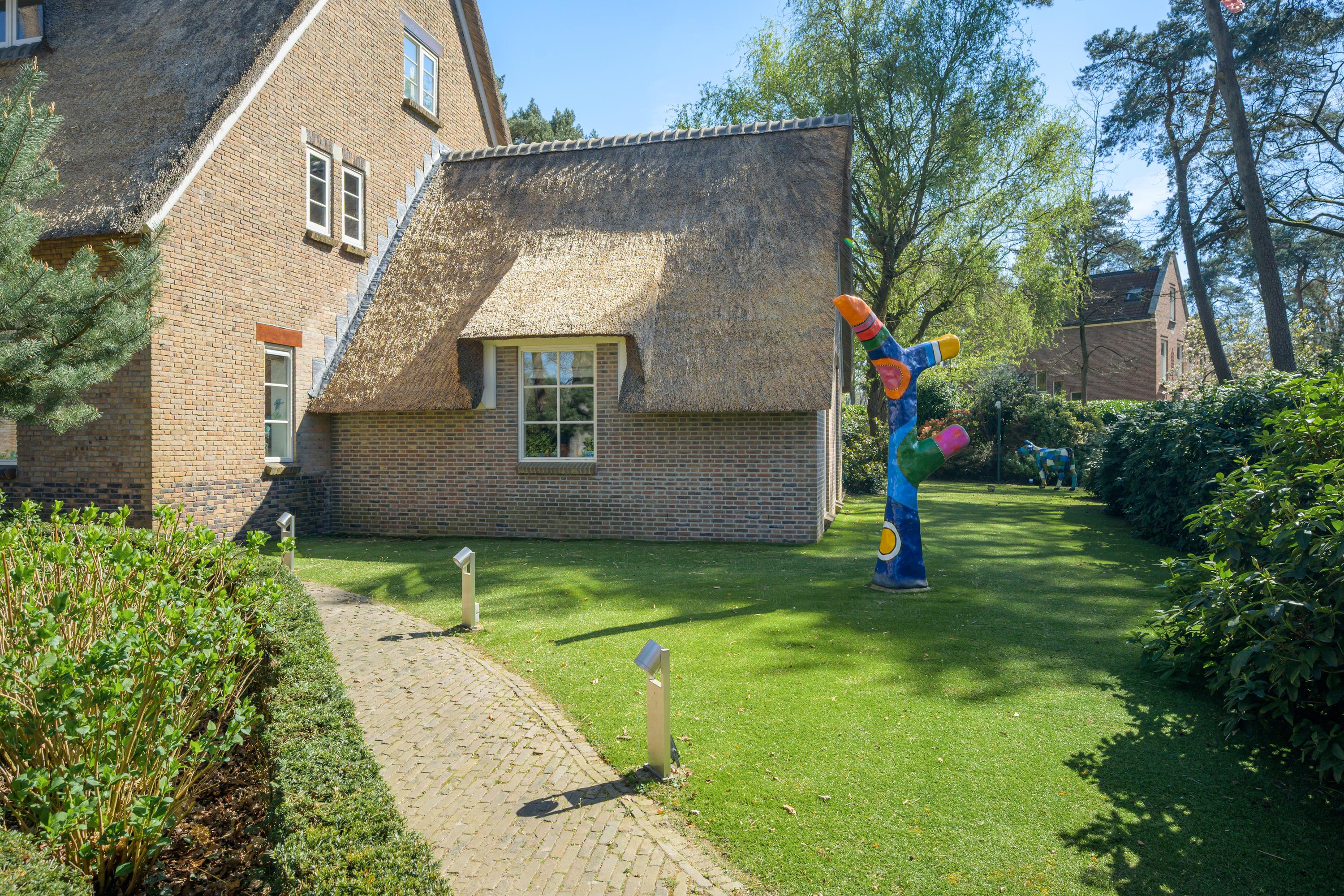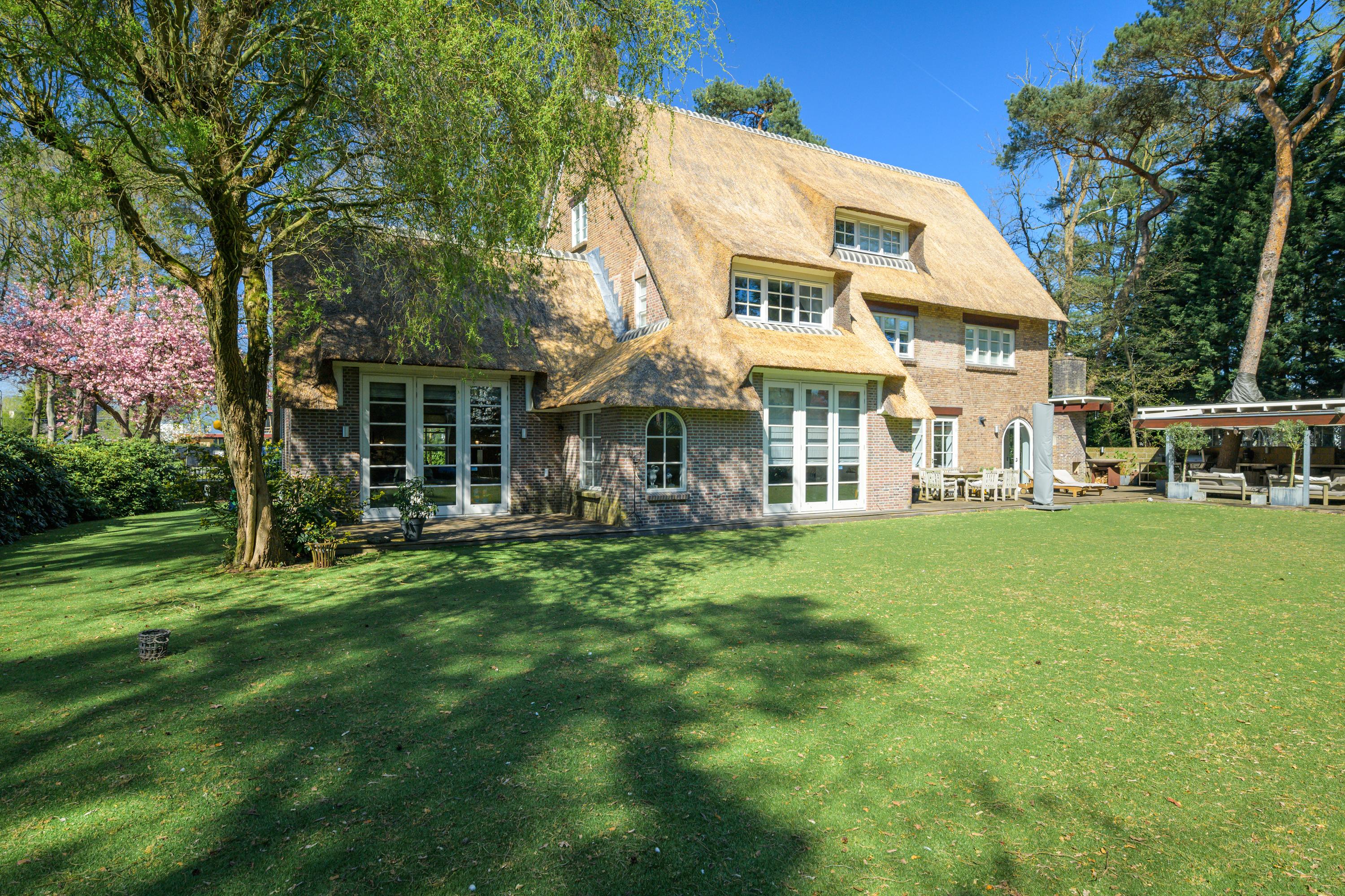 Villa Breda is an expansive country house set on 2,830 m² of wooded land in the stately Ruitersbos district, where privacy meets quiet grandeur. This villa offers 521 m² of living space, seamlessly blending original 1932 details with modern craftsmanship. The thatched roof and stained glass articulate its heritage, while extensive renovations support contemporary comfort.