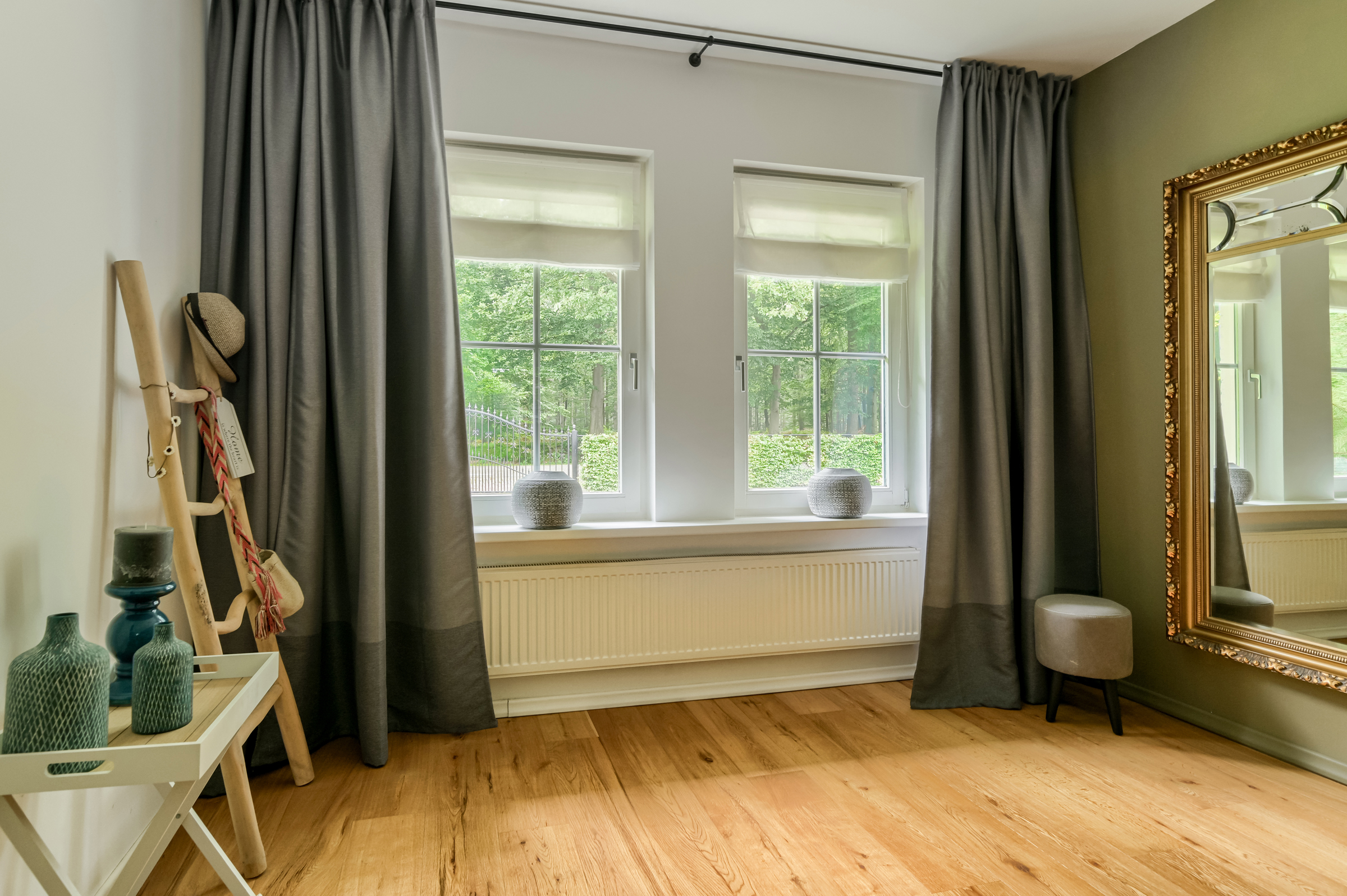 Villa Breda stands directly beside the Liesbos forest, set on a 9,523 m² plot that assures full privacy and a seamless connection to natural woodland. This villa, meticulously maintained and fully insulated, presents 182 m² of living space arranged for both comfort and elegant practicality. The ground floor grants single-level living potential with a suite comprising a bedroom and bathroom, underfloor heated anthracite tiling, and smooth plasterwork, epitomizing understated ease. Large windows and multiple sliding doors invite views of the surrounding gardens and forest, while light oak and laminate flooring upstairs echo the clarity of the space.