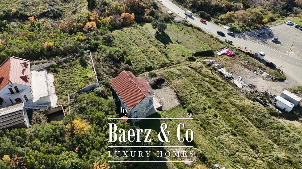 House Budva is quietly set in the natural surroundings of Sveti Stefan, where the beach and the Adriatic are just 400 metres away. This 210m² residence spans two levels plus an attic, offering four bedrooms, three bathrooms, three balconies and a terrace with views that sweep from sea to mountain. Connected by an asphalt road to the main route, it balances seclusion with accessibility. The house stands unfurnished and in need of renovation, presenting a canvas for personal vision. Daylight moves easily through the living spaces, including a living room with kitchen and generous balcony exposures.