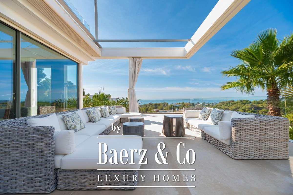Villa Cap Martinet stands at the crossroads of privacy and refined living, embodying the essence of a villa Cap Martinet in one of Ibiza’s most desirable addresses. The property’s 525 m² of living area is matched by a 806 m² plot, offering panoramic south and southeast terraces overlooking the Mediterranean and the historic silhouette of Dalt Vila. Seven bedrooms and seven bathrooms form the heart of the home, each designed with understated elegance and comfort in mind.