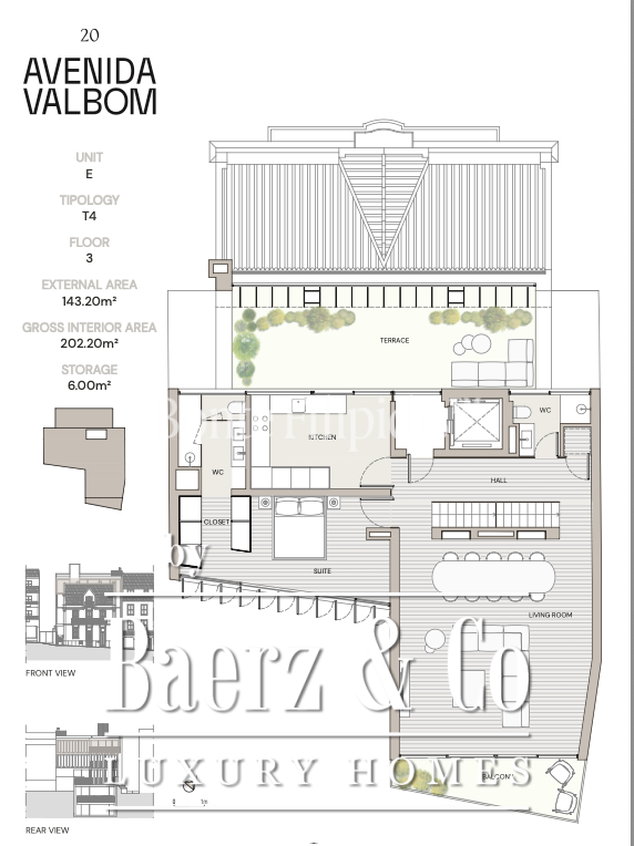 4 bedroom apartment, with an interior area of with 202 sqm of interior space and 143 sqm external area, offers a comfortable and practical experience, perfect for families or those looking for a spacious home in one of the most desirable locations in Cascais.