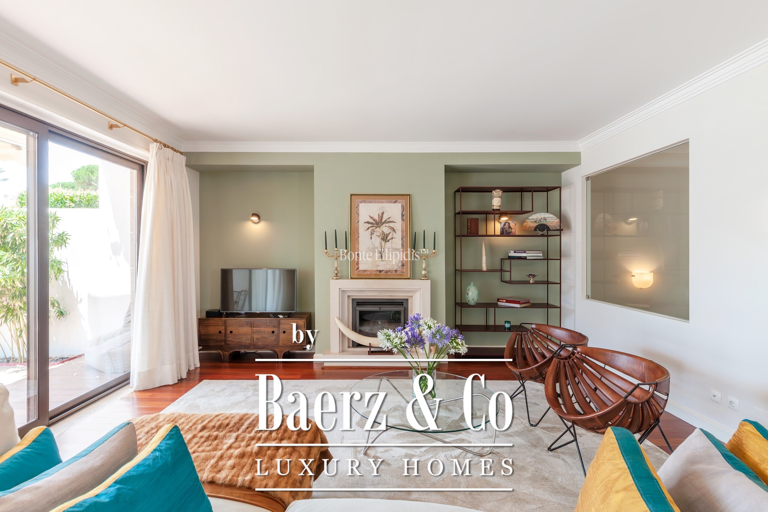 This semi-detached house Cascais e Estoril is set on a peaceful street in Monte Estoril, offering a refined four-bedroom retreat shaped by natural light and curated modern interiors. Recently renovated and fully furnished with new pieces, the home is move-in ready. Overlooking the Estoril Golf Course, the southwest-facing orientation fills the space with sun throughout the day.