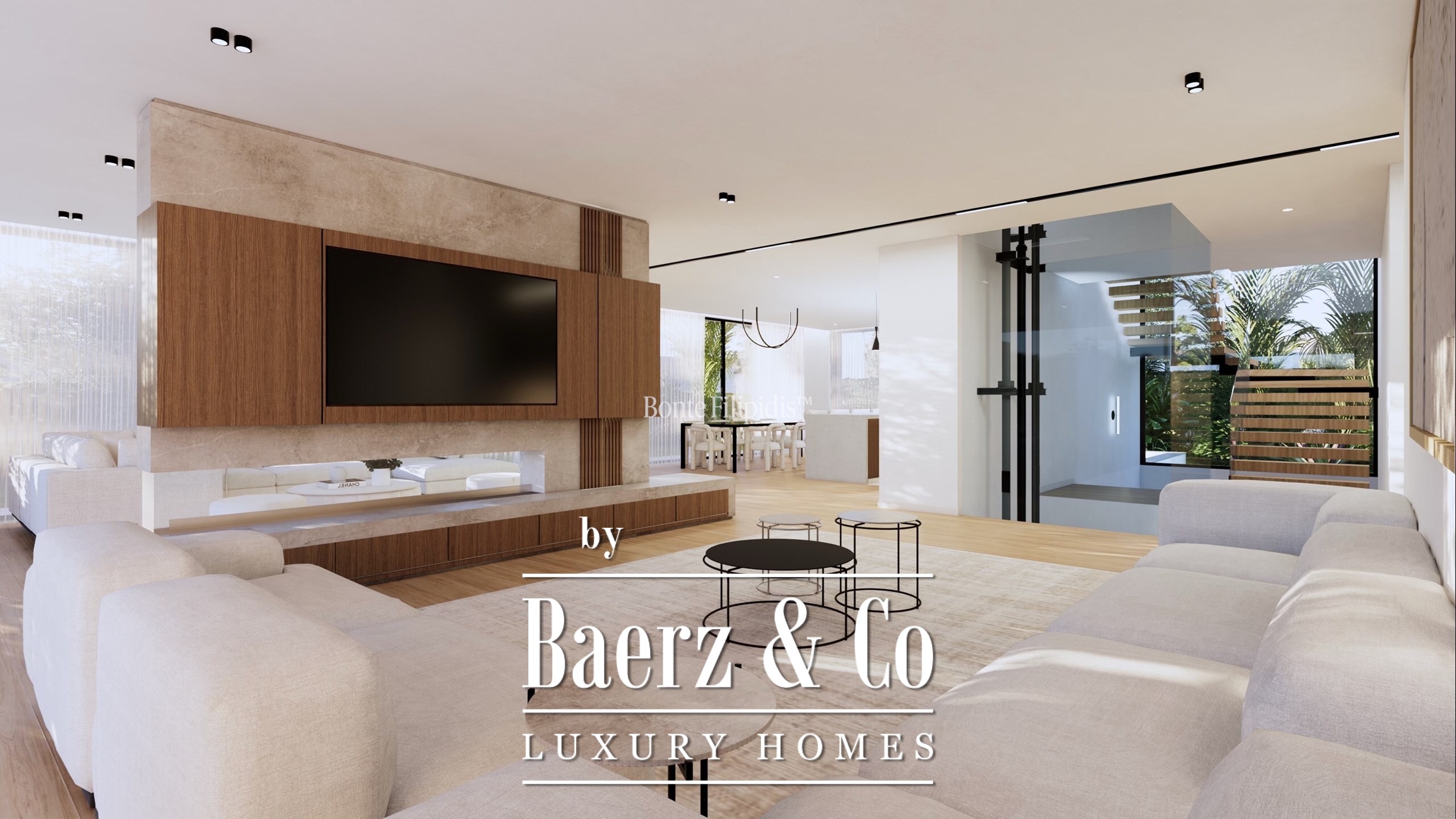 Villa Cascais Birre stands as a statement of contemporary design and privacy in one of Cascais’s most respected residential quarters. This six-bedroom villa extends across 625 m² and is set on a landscaped 1,040 m² plot. Every aspect of the villa Cascais Birre expresses thoughtful architecture, from the triple-level layout connected by a private elevator to the seamless integration of indoor and outdoor living spaces.
