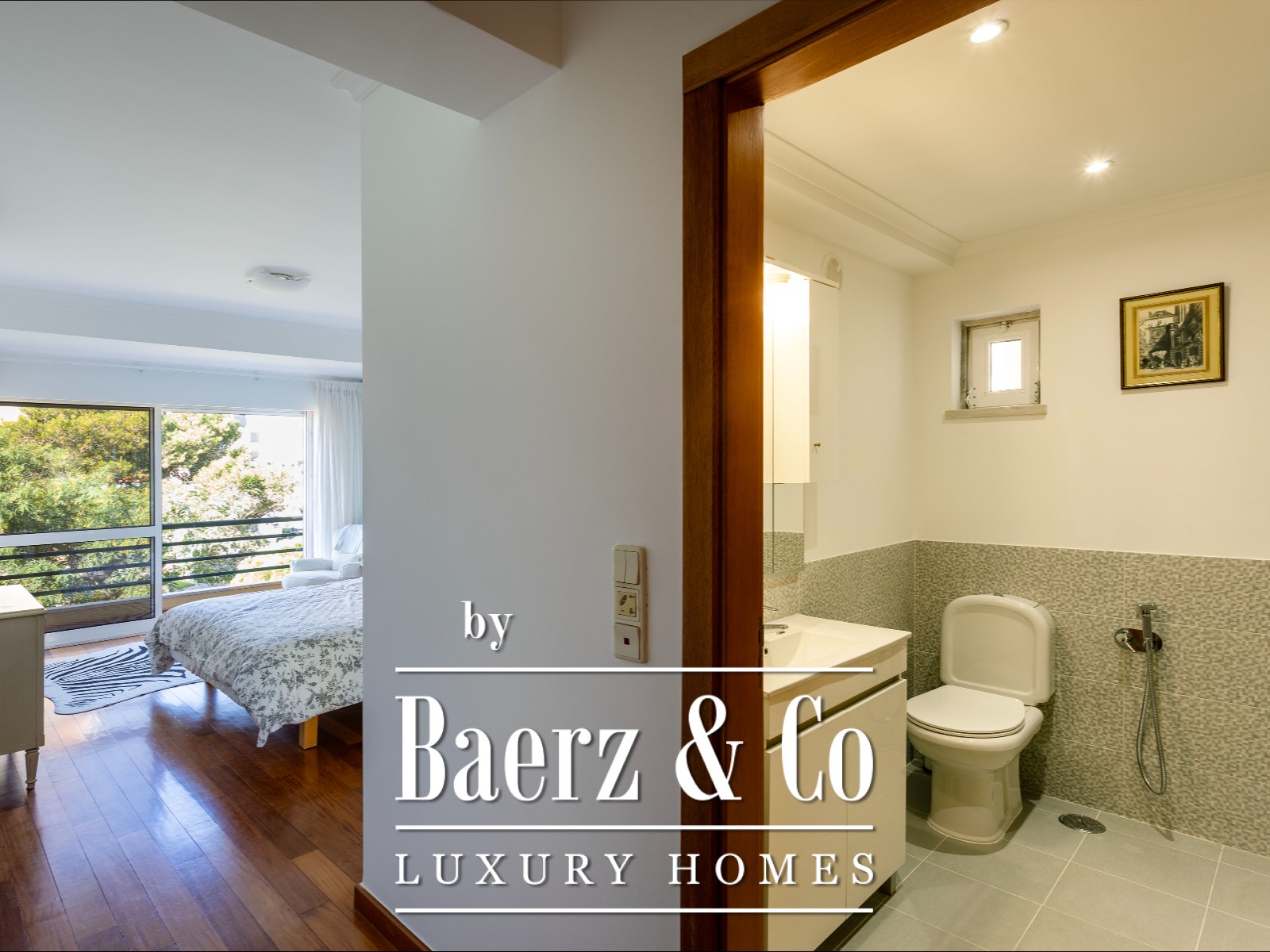 This seafront apartment Cascais is positioned within a private condominium on the famed Costa da Guia, capturing panoramic sea views in every room. The 142 m² living space is defined by a calm, light-filled atmosphere and a floor plan that embraces both comfort and exclusivity. The west-facing living room creates an inviting space for quiet evenings or refined gatherings. The property includes two bedrooms: one generous suite with built-in wardrobes and a remodeled bathroom, and a second bedroom, both carefully articulated to frame the ocean beyond.