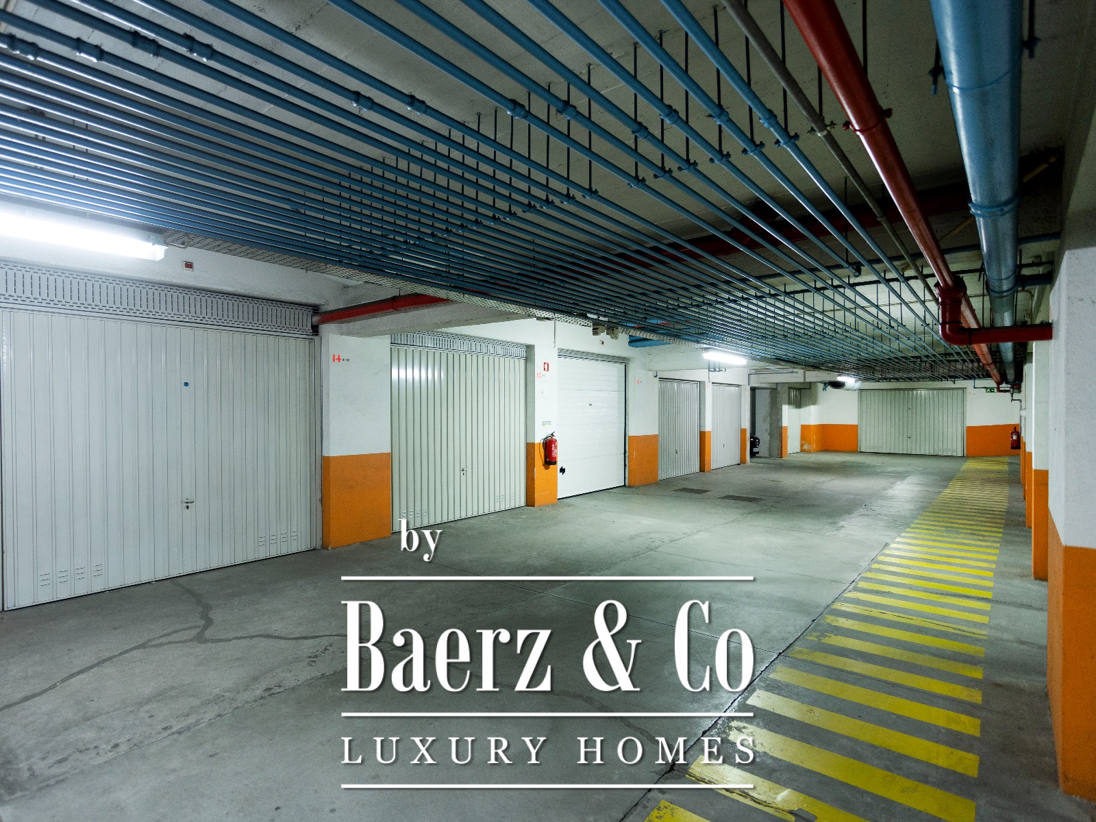 A modern, fully equipped kitchen extends onto a balcony. The home benefits from air conditioning, double glazing, and electric shutters, and is offered fully furnished and equipped. Amenities include a private pool, mature garden, outdoor parking, 24-hour security, lift, garage, and a dedicated storage room. The location brings immediate access to Casa da Guia, Cascais Marina, key cycle routes, and renowned schools such as Salesianos do Estoril and Saint Julian's.