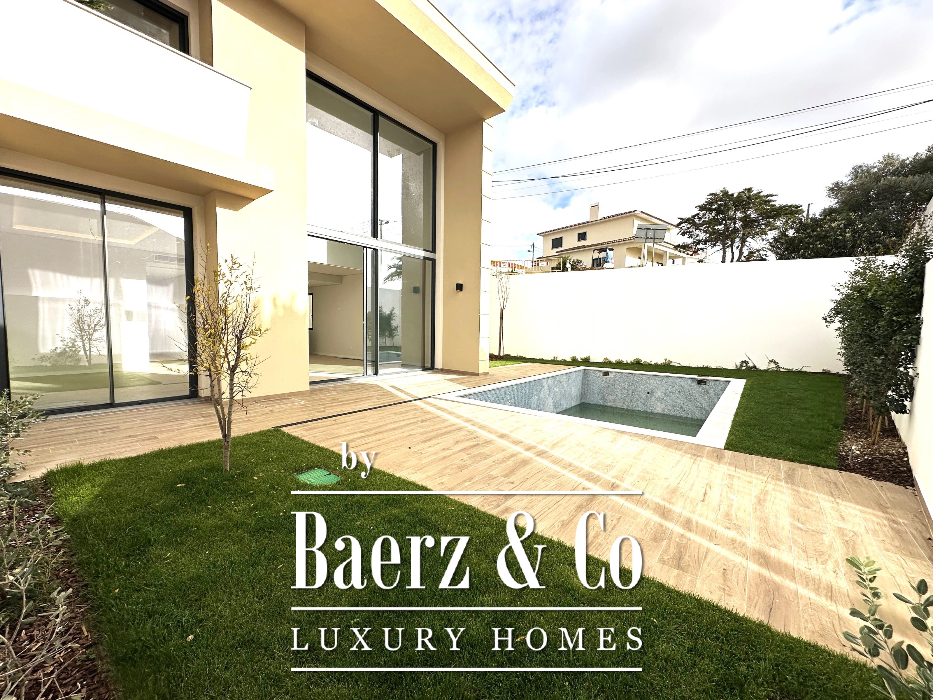 Villa Cascais stands as a discreet statement of modern architecture within an exclusive closed condominium of only four units. The residence offers 570 m² of living space and a plot measuring 2,743 m², creating a rare sense of privacy close to the rhythms of Cascais. This villa features four bedrooms and six bathrooms, its design anchored by a 62 m² living room seamlessly connected to a contemporary kitchen, ideal for gatherings where light is the central element. The ground floor includes a tranquil suite of 12 m², while three additional suites on the lower level—measuring 27 m², 13.43 m², and 12 m²—offer generous space, high-standard finishes, and remarkable potential for personalisation.