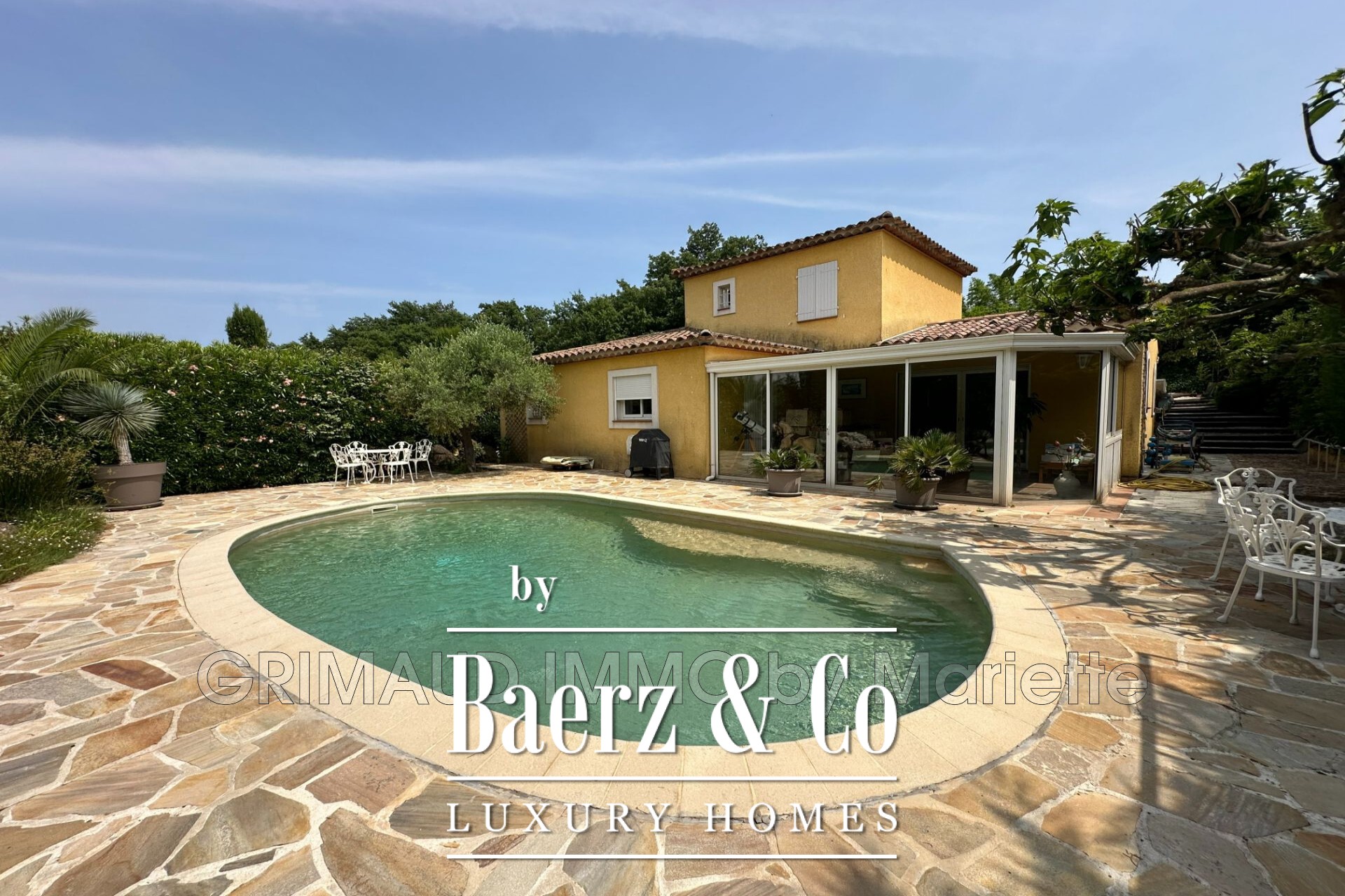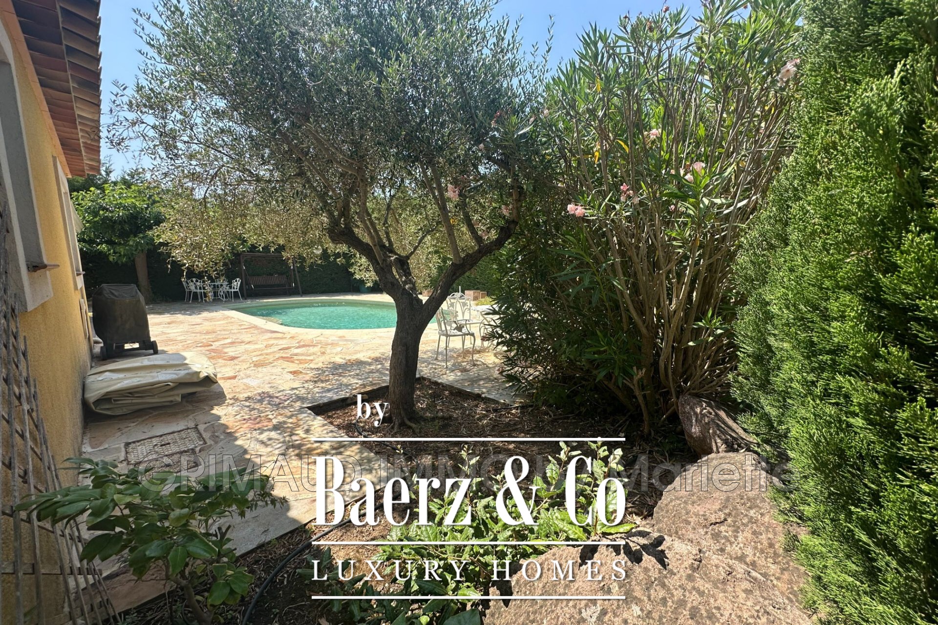 veranda. Upstairs, there is a bedroom with storage and a shower room with a toilet. The garage has been converted into a bedroom or office, and a large double garage completes this property. For more properties, visit our website: www.grimaudimmo.com