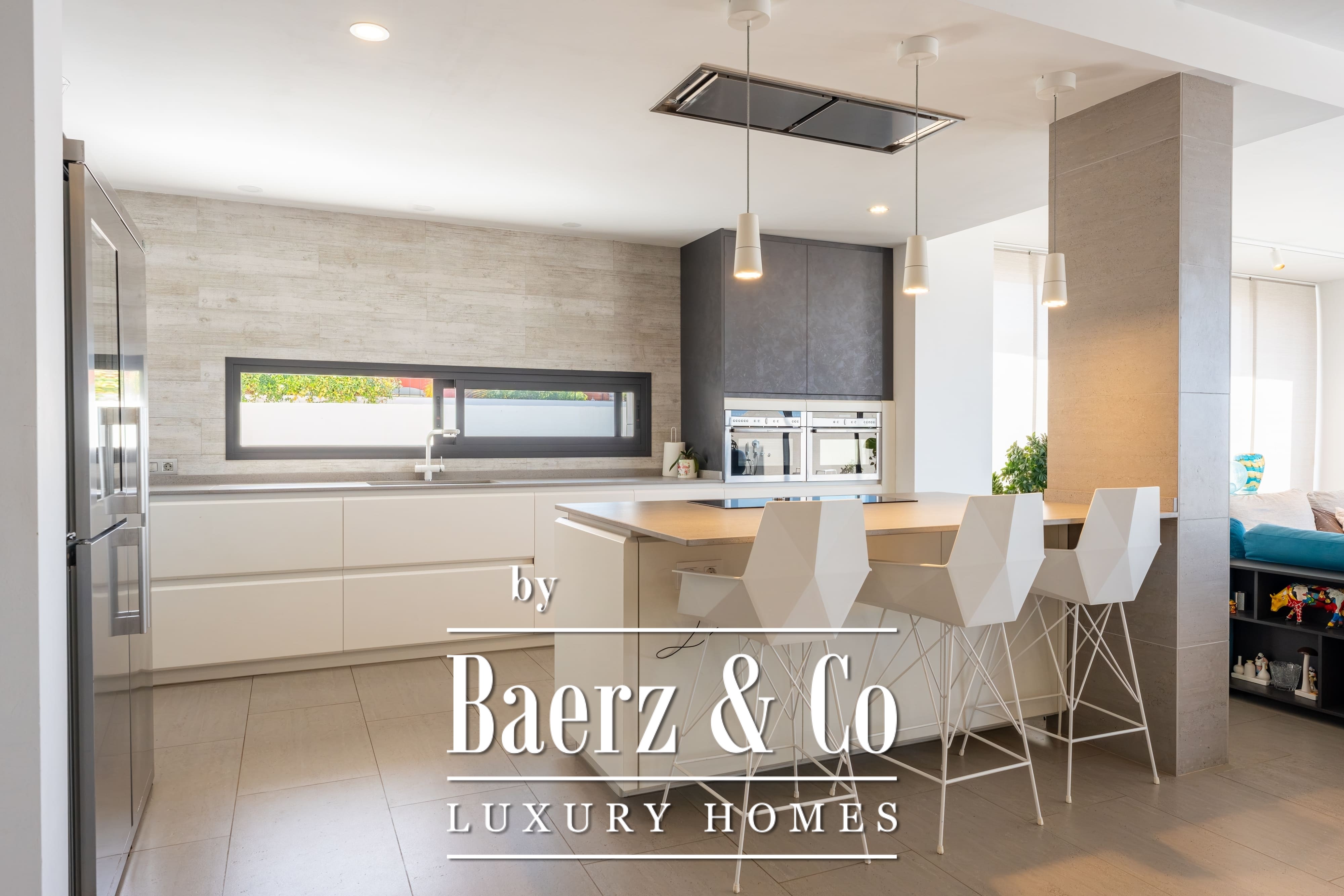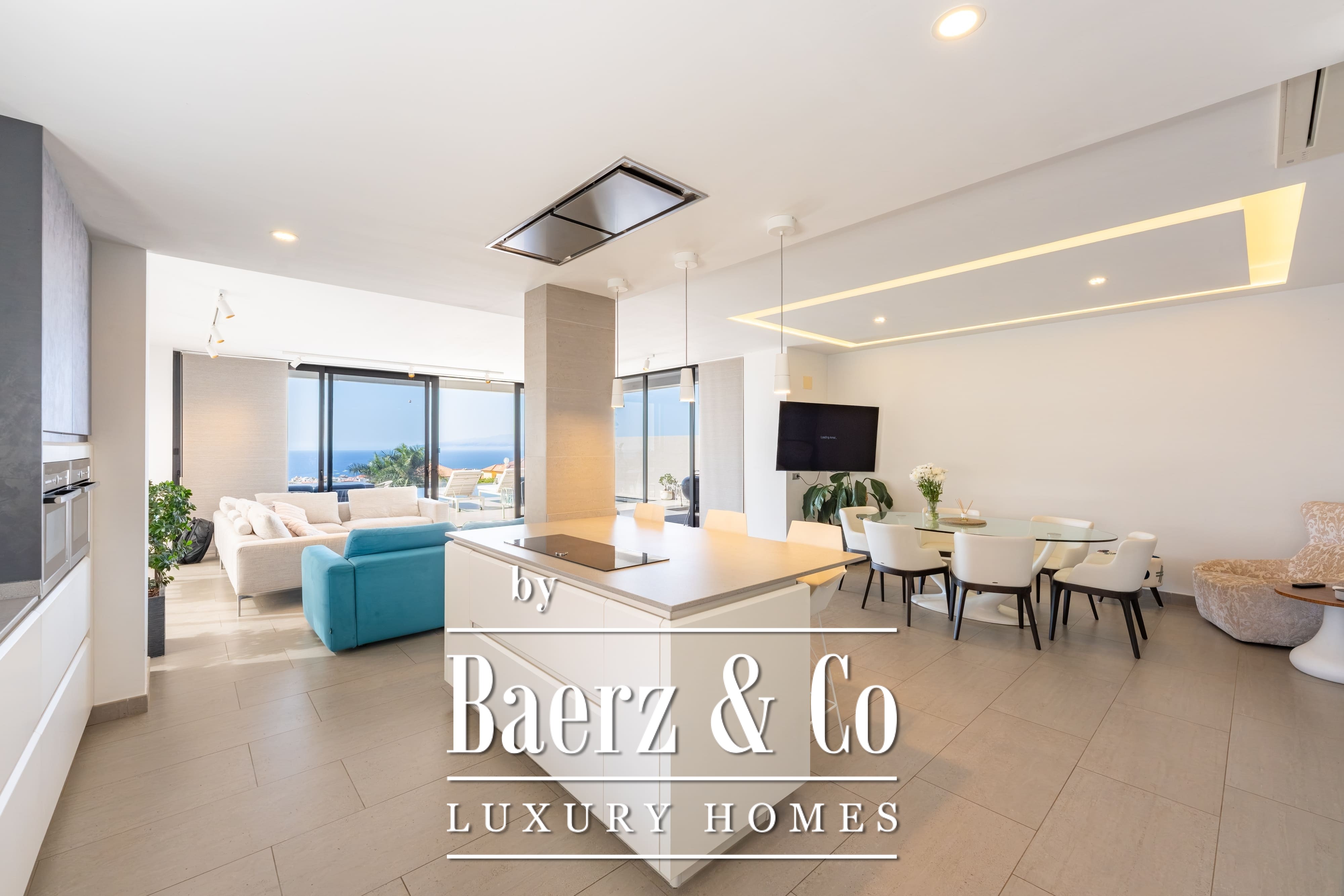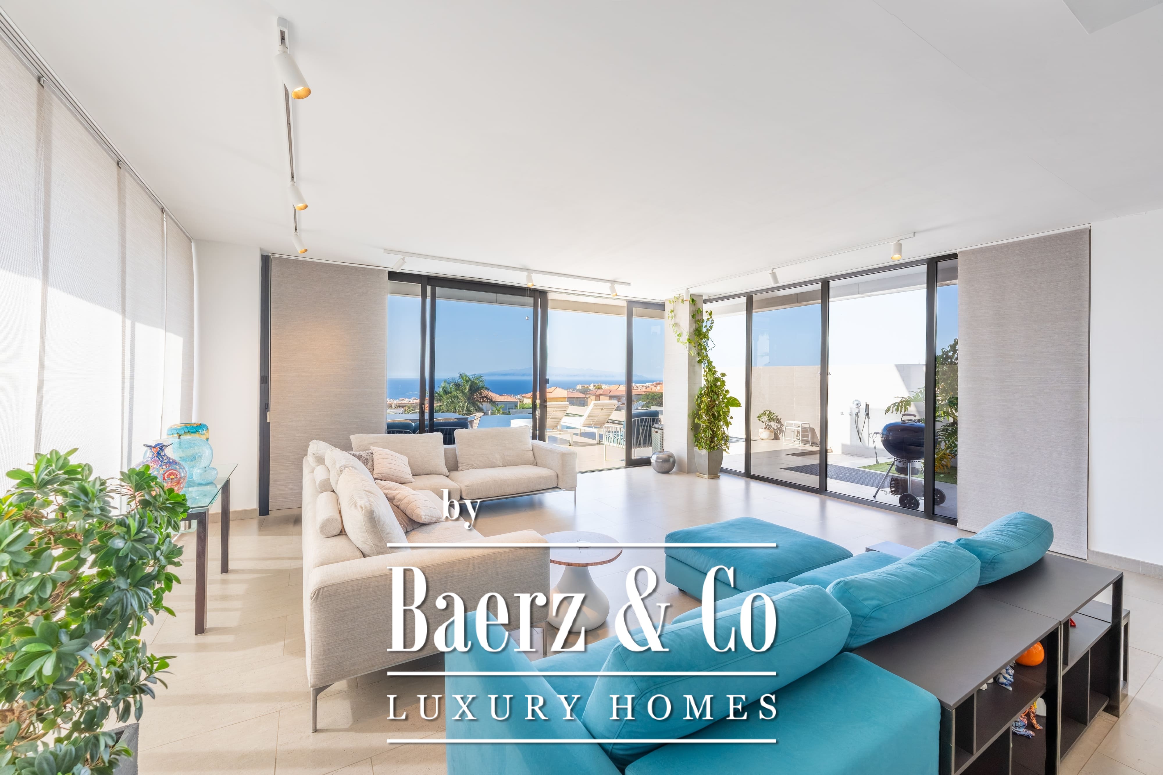 Multiple terraces unite the levels, establishing a rhythm of indoor and outdoor life complemented by a private heated swimming pool, sunbathing spaces, and chill-out zones. The villa features two kitchens, fitted wardrobes, air-conditioning, and a closed garage for several vehicles. El Madroñal is known for its discretion and tranquility, yet is moments from international schools, upscale shops, and gourmet dining. This modern villa for sale in Costa Adeje is presented furnished, reflecting a blend of luxury, functional design, and privilege in southern Tenerife.