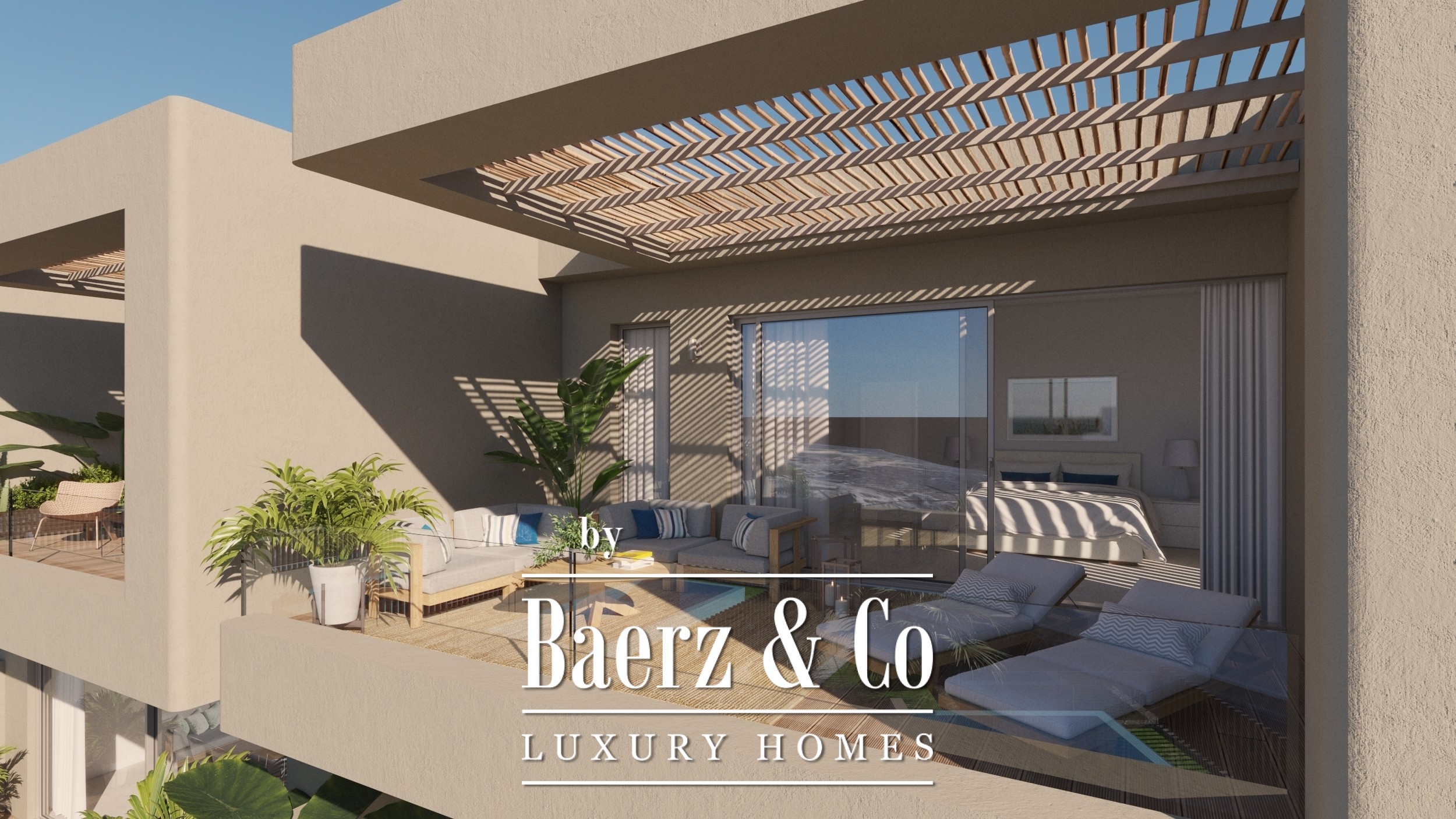 The residence spans 116 m² of living space, complemented by a 190 m² plot. Thoughtful design by Teótimo Rodriguez is felt throughout, balancing innovation with the calm of the surroundings. The penthouse offers three bedrooms, including a bedroom with en-suite bathroom, two bathrooms, a guest toilet and a dedicated laundry room. Seamless indoor-outdoor living is made real by a private terrace with swimming pool, from which panoramic ocean views unfold.