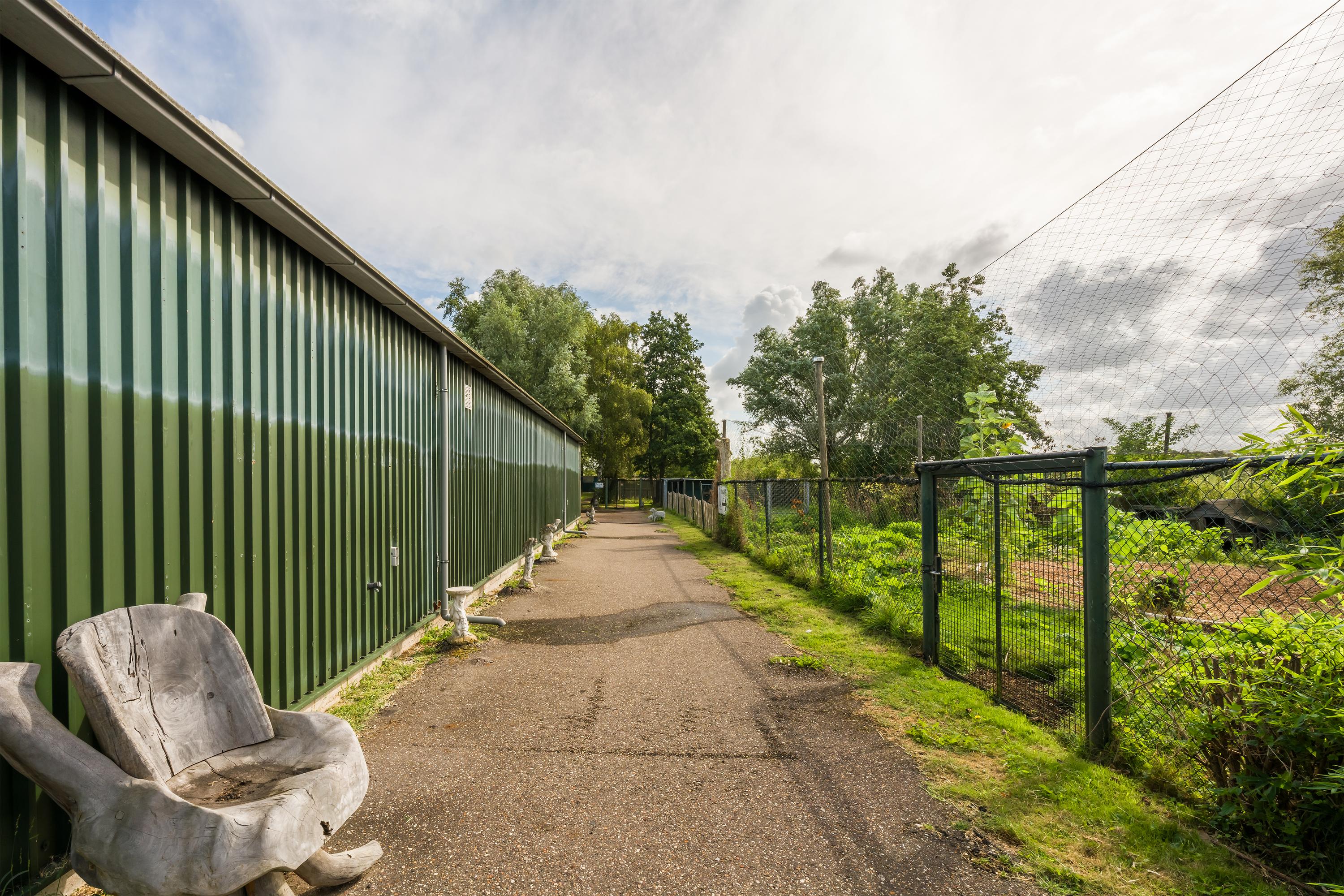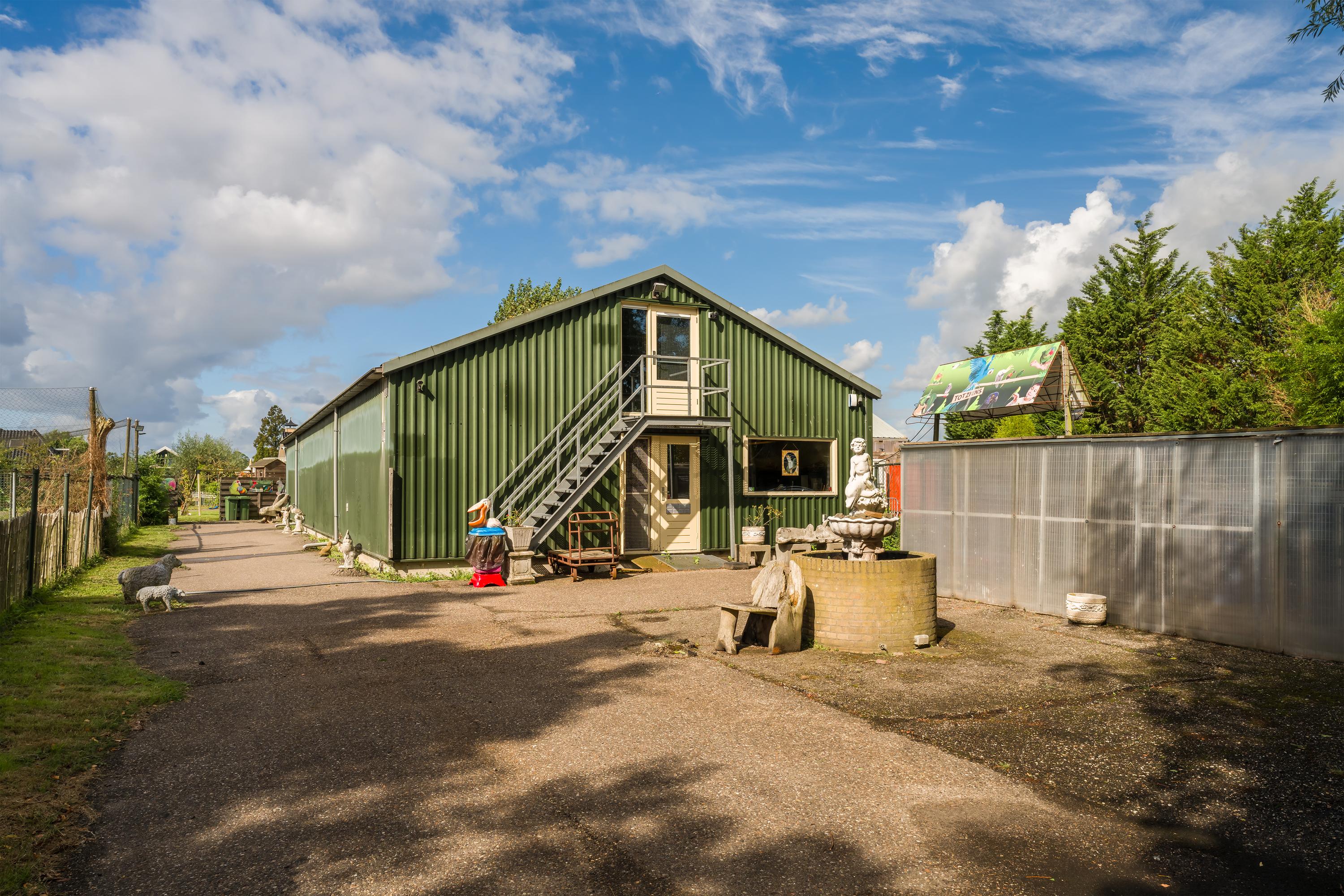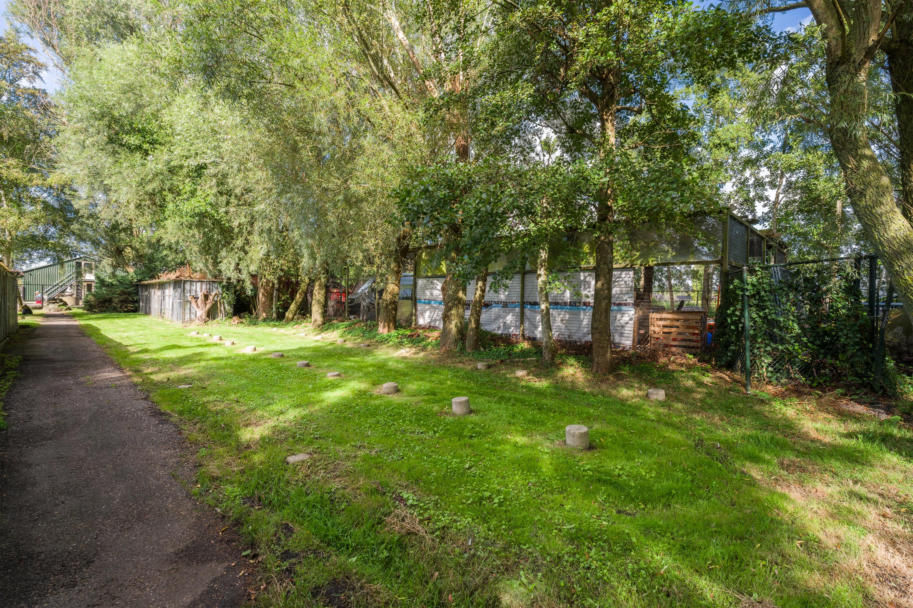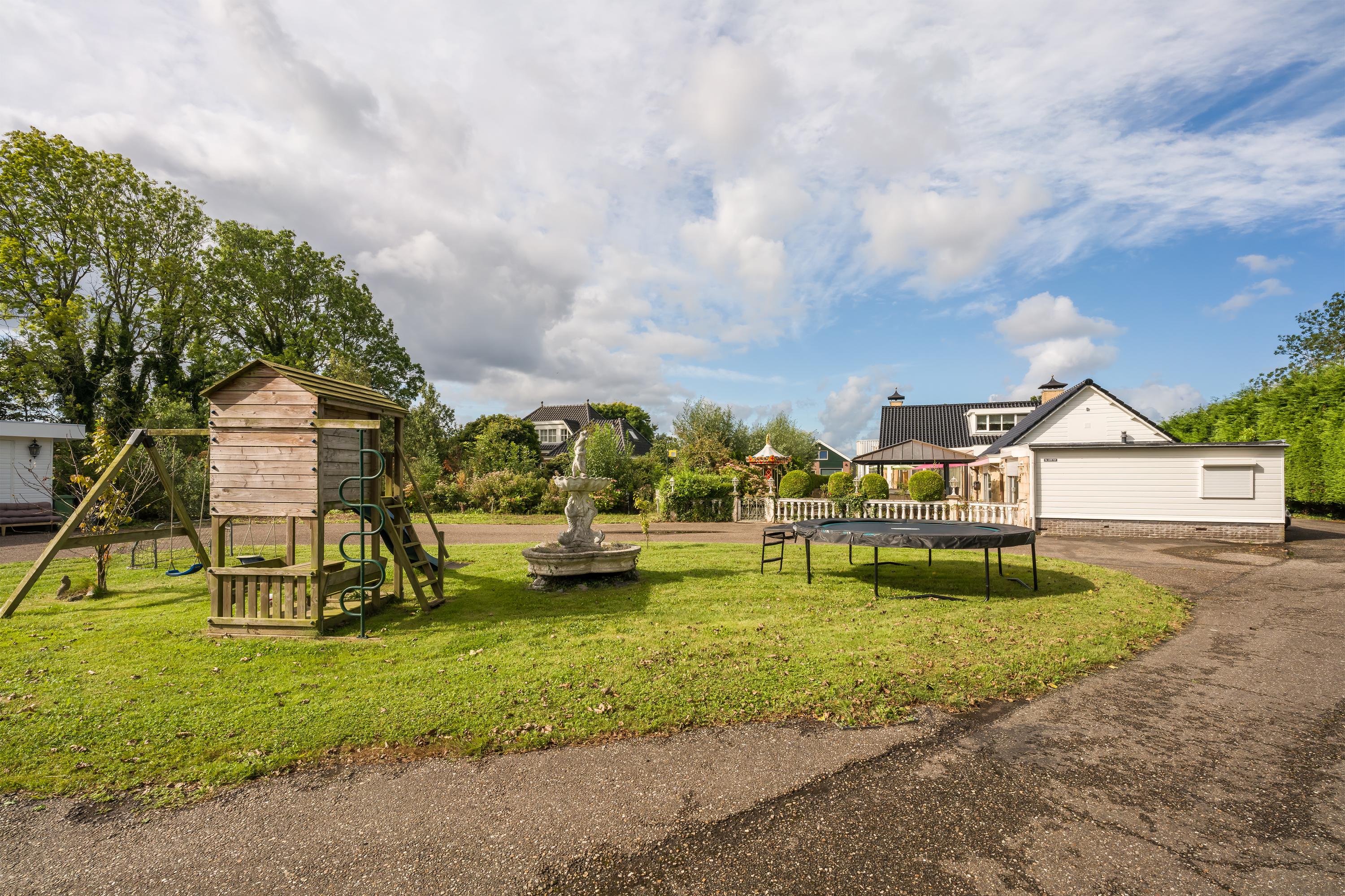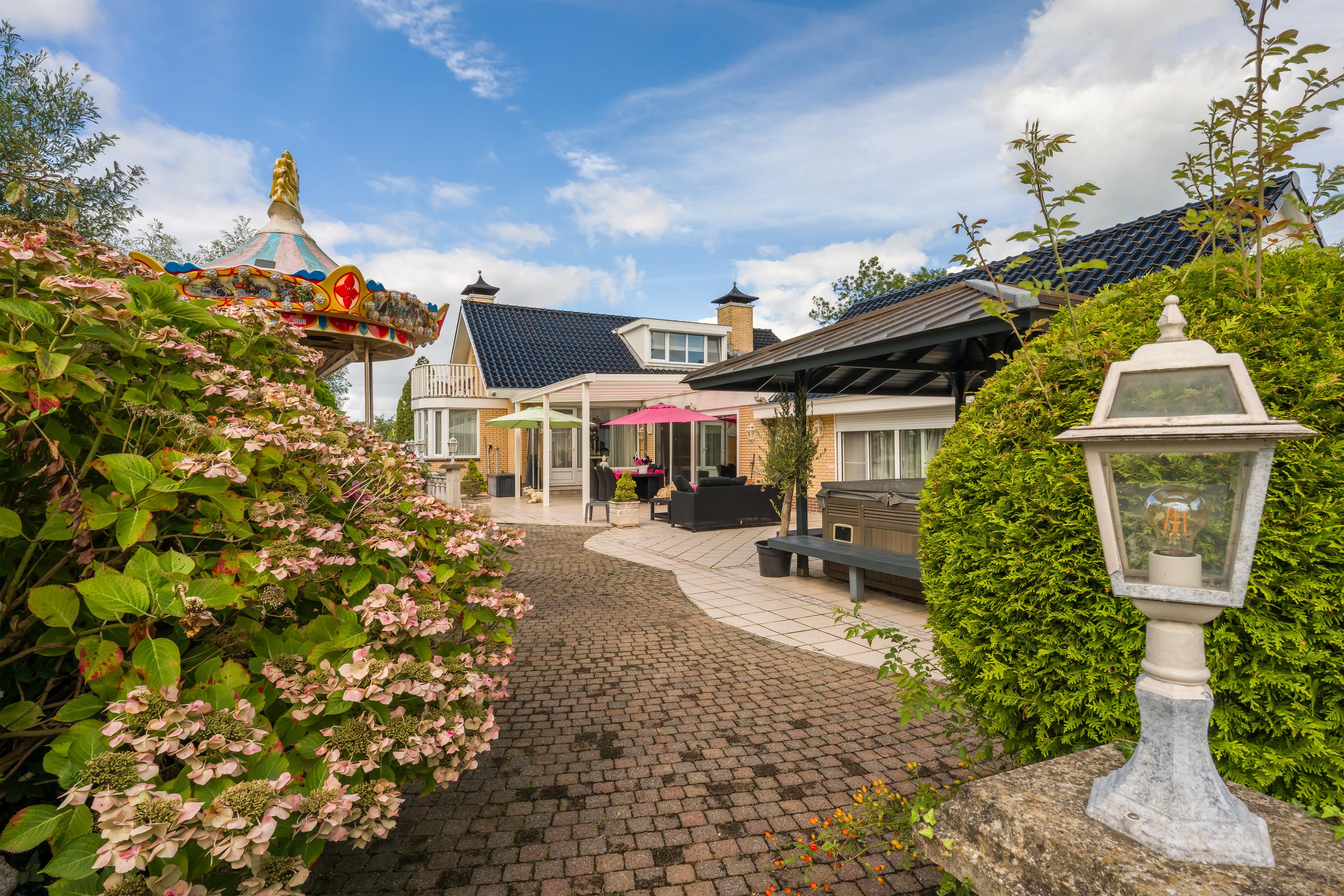 A beautifully enclosed private domain is hidden behind this cleverly positioned detached house with a guesthouse. The entire property exudes a grand vibe as soon as you drive up. Your eyes are drawn to the white iron gates that accentuate the green plot as you approach the gate. Your journey continues along the asphalt driveway, turning around at the back of the property and parking on the roundabout. From here, you can admire the American-style bungalow with its piled terrace, the spacious guesthouse, the commercial space, and the animal enclosures, where flamingos once graced the North Holland landscape.