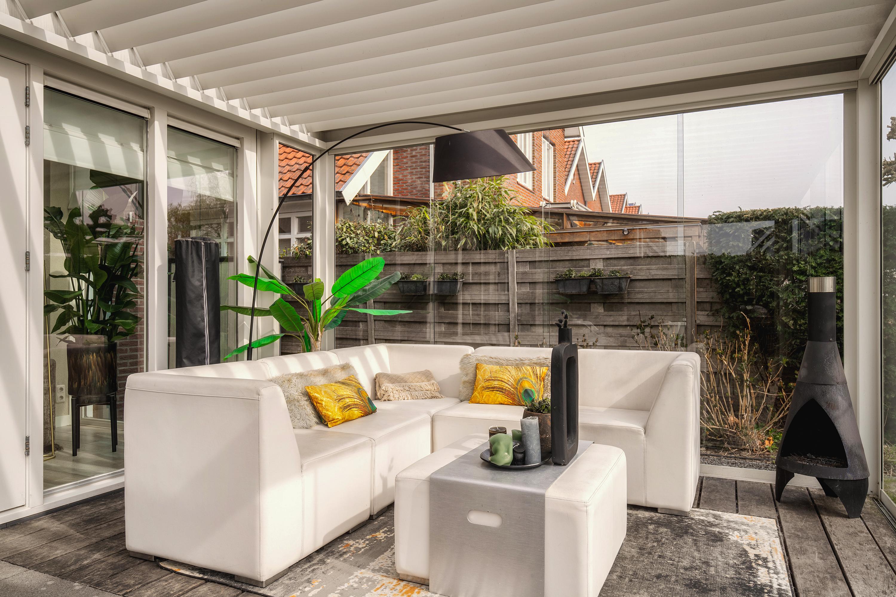 The garden is beautifully landscaped and thoughtfully designed. Located on the water with a private mooring for a sloop and a swimming ladder to enjoy the open water directly. Whether you are lying in the hammock or sitting on the terrace by the water, the view of the water and Het Twiske never gets boring. The garden has drip irrigation for optimal watering and atmospheric lighting with 12V spots. Under the canopy with louvered tilting roof and glass sliding doors (with integrated drainage function), you can enjoy it all year round.