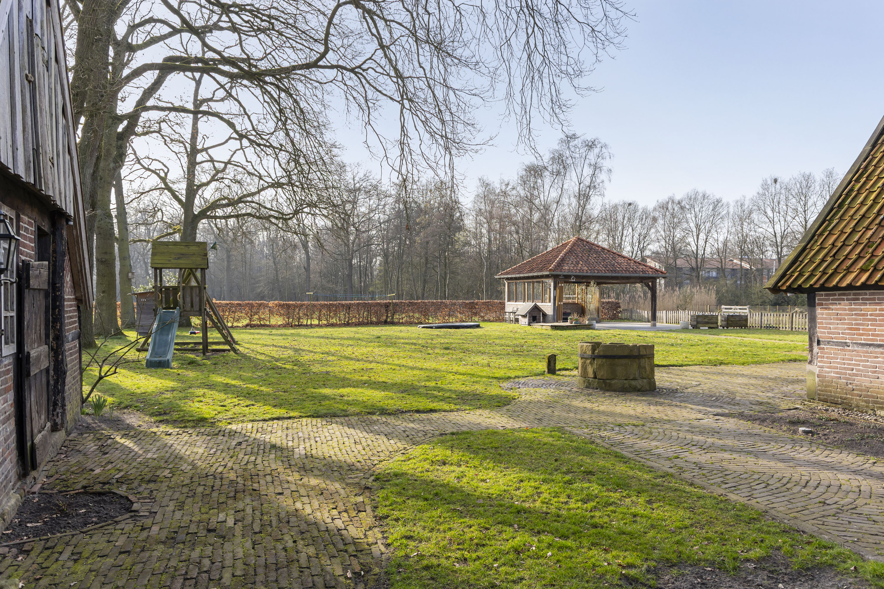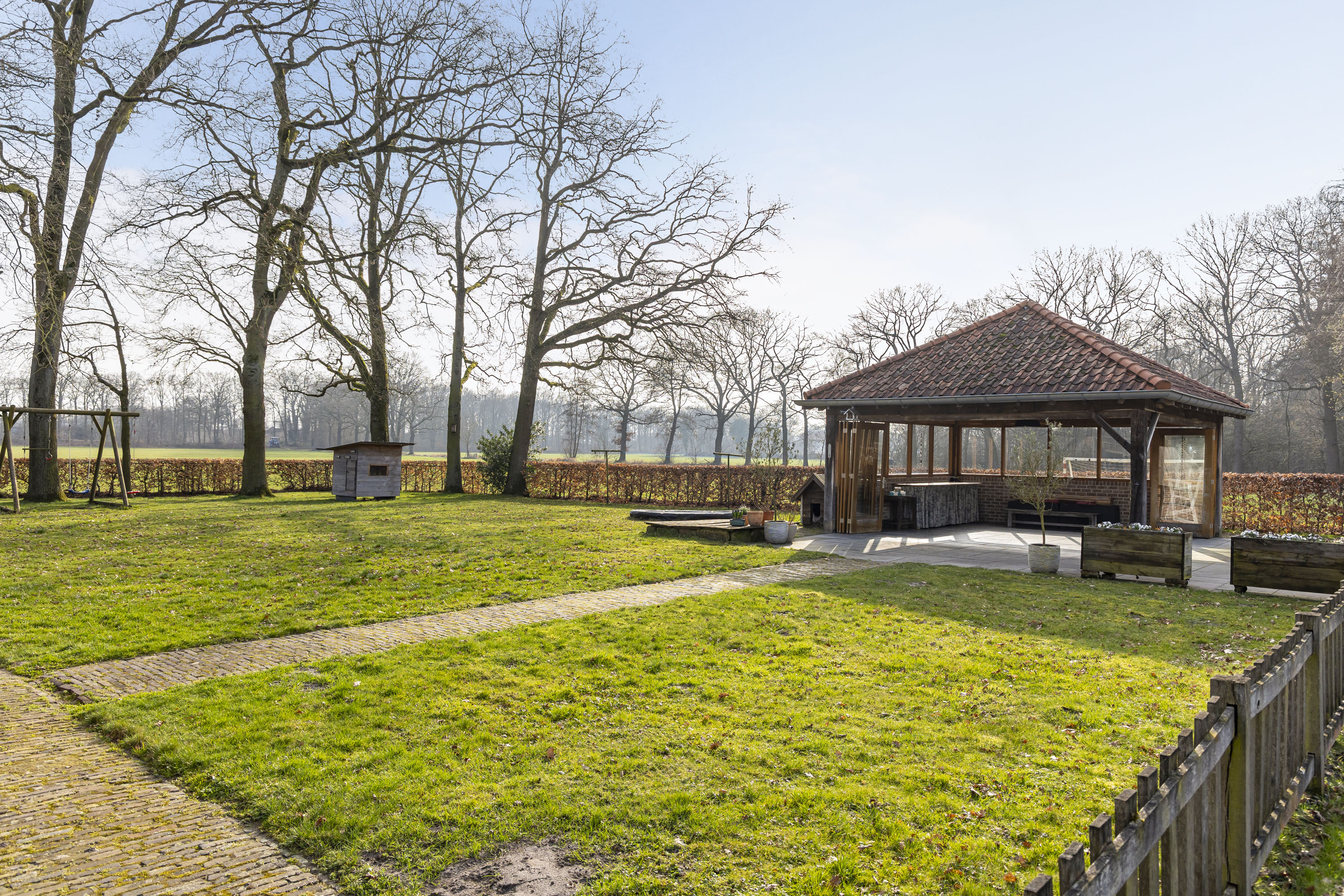 The estate offers ample space to enjoy outdoor living. The country-style landscaped garden features a spacious freestanding garden room, making it the perfect setting for long, cosy evenings in complete peace and privacy. There is also plenty of room for keeping hobby animals. Here, you experience the ultimate sense of freedom, surrounded by nature, while still enjoying all modern comforts.