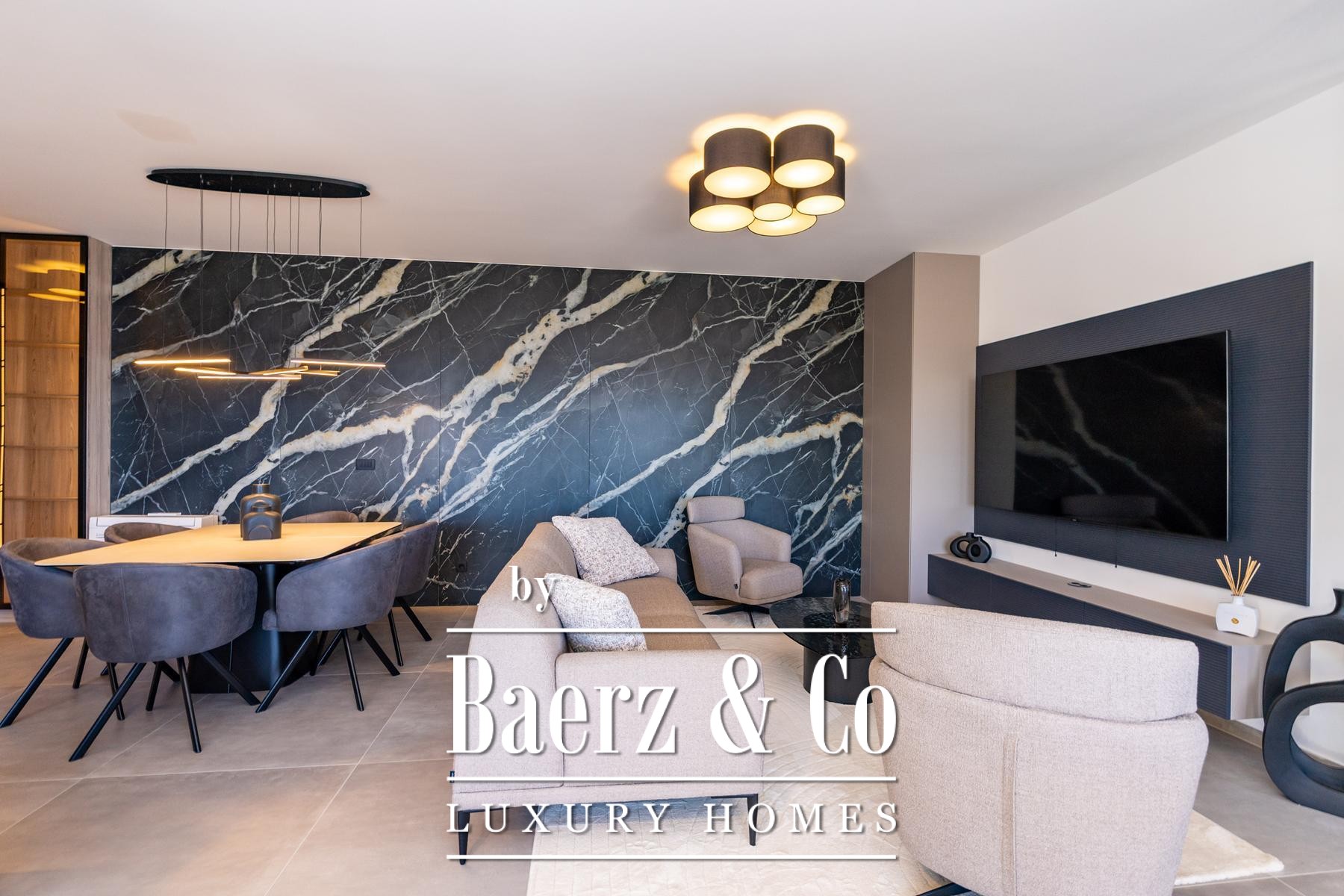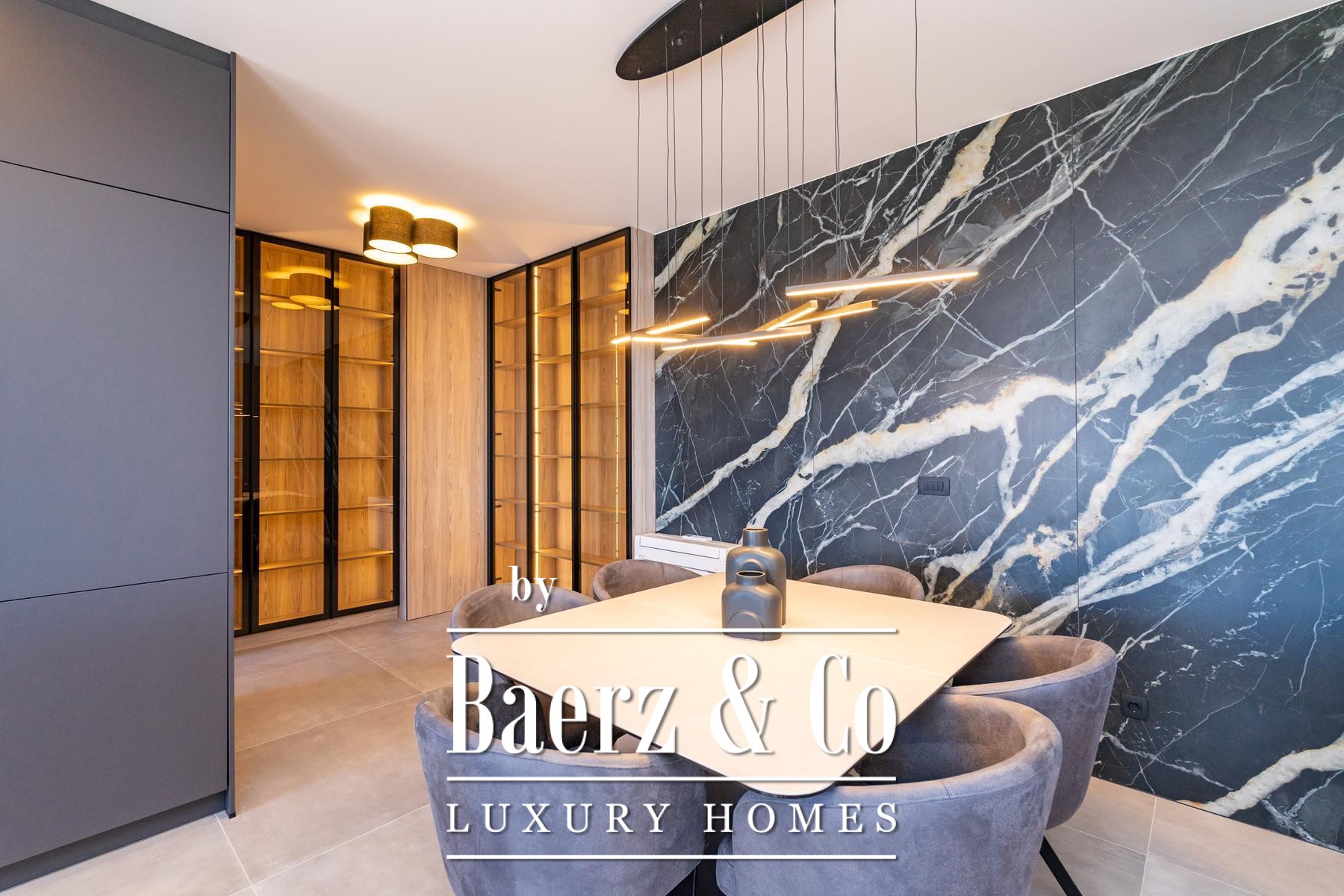 Spanning 300 m² over multiple floors, the residence offers a spatial rhythm designed for both intimacy and convivial gatherings. Four bedrooms and four bathrooms are appointed with a refined restraint, ensuring personal space and comfort for both residents and guests. Smart home features and energy-efficient solutions reflect the demands of contemporary living, enhancing both ease and sustainability.