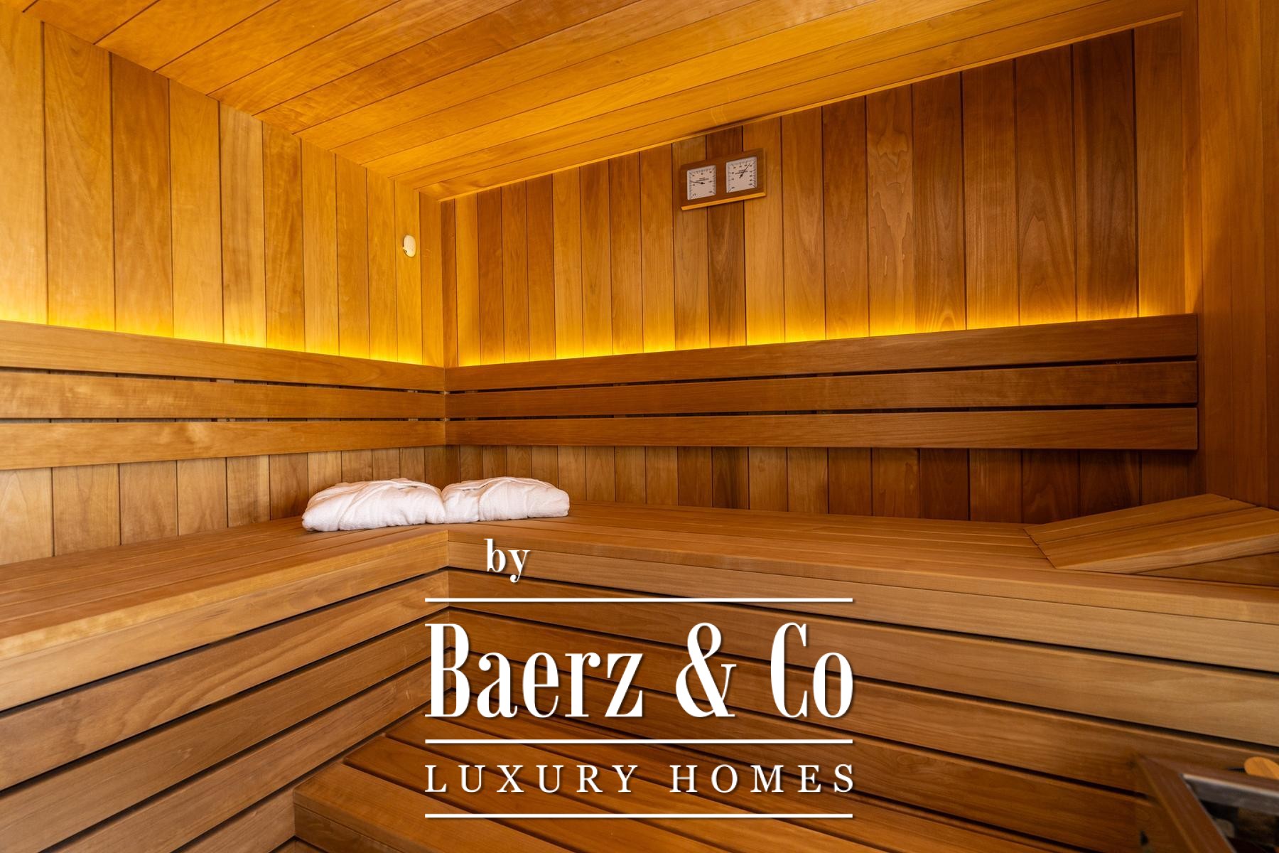 On its 740 m² plot, the property invites outdoor living through a generous terrace, manicured Mediterranean garden, and an elegant pool—all oriented toward unobstructed sea views. Moments of wellness are nurtured by a private gym, fitness space, and a modern sauna, integrating relaxation seamlessly into daily life. Storage is thoughtfully incorporated, offering both usability and clarity within the home.