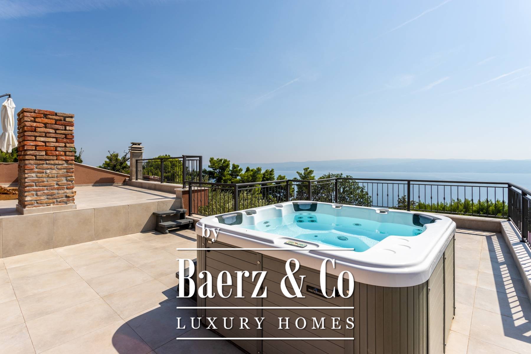 This beautiful authentic villa is located in the small and picturesque town of Jesenice, in a unique isolated position with an open sea view and exceptional privacy. Jesenice is a small town with 2,000 inhabitants located between the cities of Split and Omiš. The villa is located in the green belt of the old village at the foot of the Mosor hill (a popular destination for recreational mountaineers), 2 km from the town center. The position of the villa offers a wonderful view of the sea and islands and has all the prerequisites for complete enjoyment of nature and sports activities. At a walking distance of approx. 500 m, there is a renowned tavern with excellent food, service and a wonderful view. The villa is partly an old building, i.e. a stone house with 50 cm walls, and it was additionally extended and adapted in 2023. It is located on a plot of 800 m2 and covers 228 m2 of living space distributed over three floors (basement, ground floor, first floor) with a usable roof terrace. In the basement there is a dining room, a kitchen equipped with all appliances, a toilet, a summer kitchen with a barbecue, a relaxation area with a sauna. In the extension, there is access to the open summer terrace with dining area and where you can enjoy the 28 m2 swimming pool with sunbathing area. On the ground floor there are