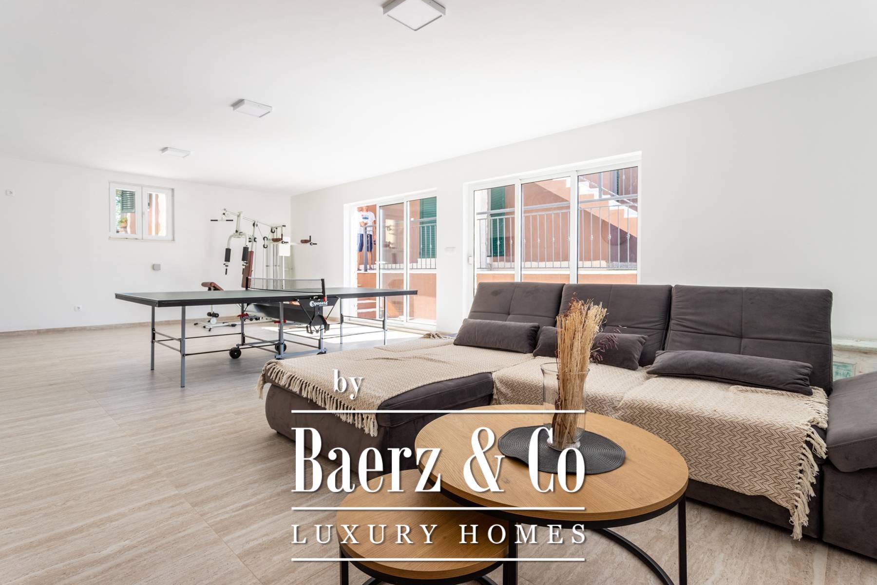 3 spacious and beautifully decorated bedrooms with bathrooms and a living room. On the 1st floor, there is a fourth bedroom with a bathroom, and on the roof terrace there is a jacuzzi tub with a sunbathing area, from where there is a beautiful panoramic view of the Adriatic Sea and the islands. The roof terrace also provides an excellent opportunity to observe the night sky for all astronomy lovers. All rooms, living room and dining room are equipped with air conditioners and WI-FI is also available. The insulation of the villa is made of styrofoam 5 cm, the windows and doors are made of aluminum carpentry, the villa is equipped with a water heater with solar heating, the whole house has been installed for central heating and the installation for the installation of solar has also been carried out. The villa has 4 covered parking spaces, a tool room, a pool machine room, a laundry room. Given that the villa is located in a green belt where construction is not allowed, the villa is not connected to water supply and sewerage. The villa has a water reservoir of 54 m3 and two septic tanks. Additional information - distances from important locations: Sea: 1500 m / Beach: 1500 m / Split 14 km / Omiš 9 km Shopping: 2000 m / restaurant: 500 m / pharmacy 2000 m / airport: 35 km I am available for all other information.