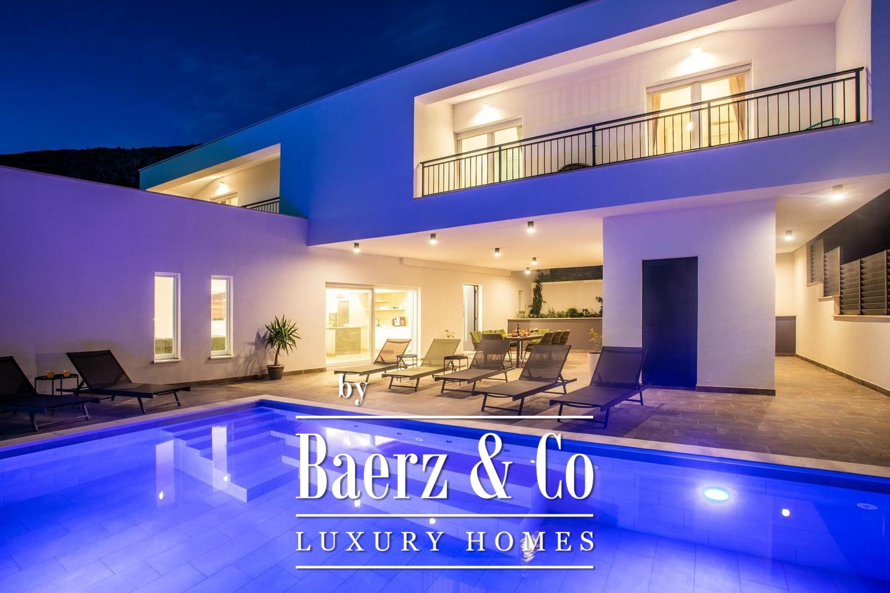 Luxury villa Dugi Rat offers a refined retreat on Croatia's Adriatic coast, balancing modern architecture with complete privacy just minutes from sea and town. This villa is set on an 814 m² plot, with a net usable area of 275 m², including 196 m² of enclosed living space, 110 m² of covered terraces, and a 40 m² sun deck. From every vantage, there are panoramic vistas of the sea and islands, framed by the villa’s thoughtfully designed layout.
