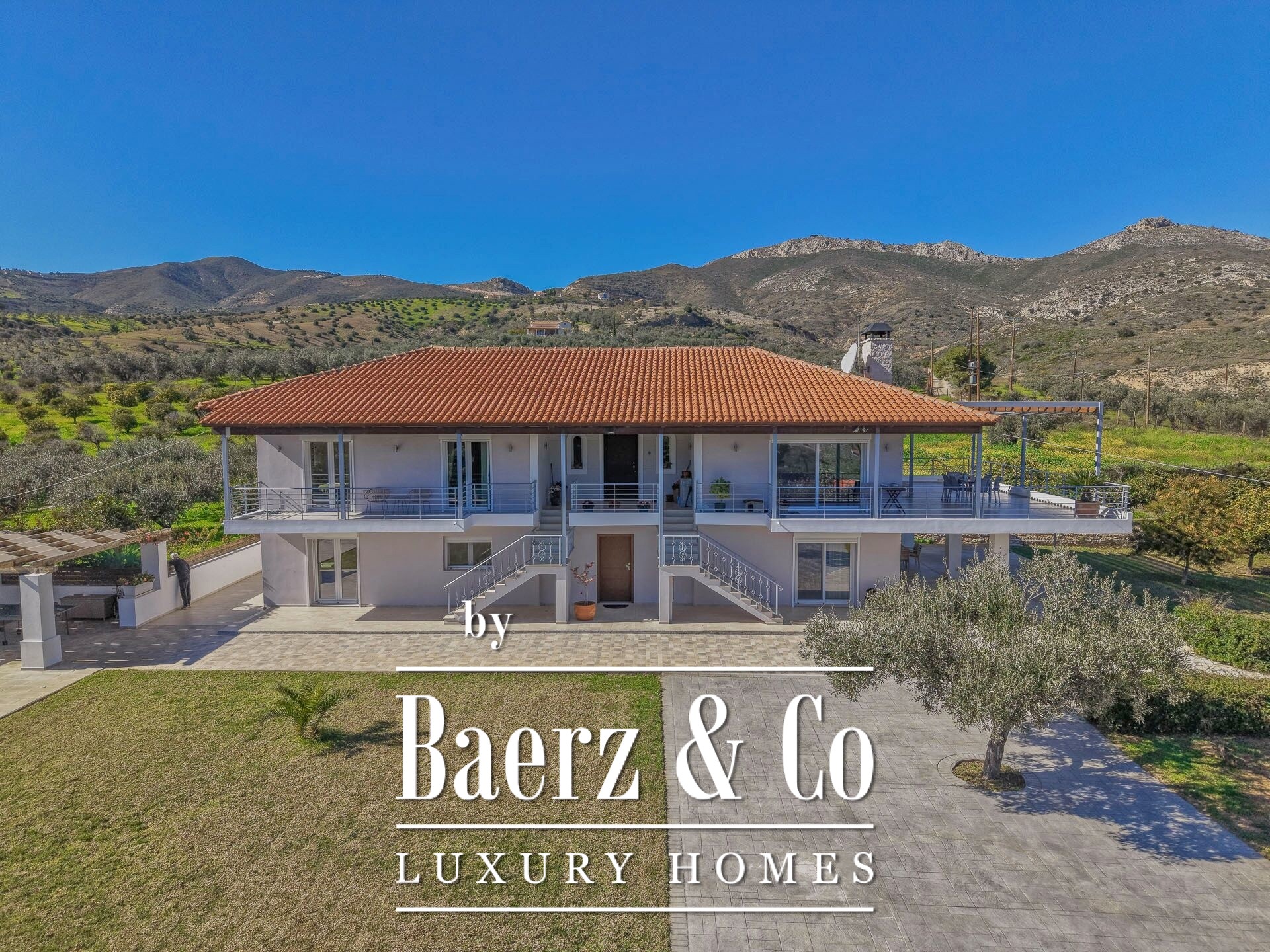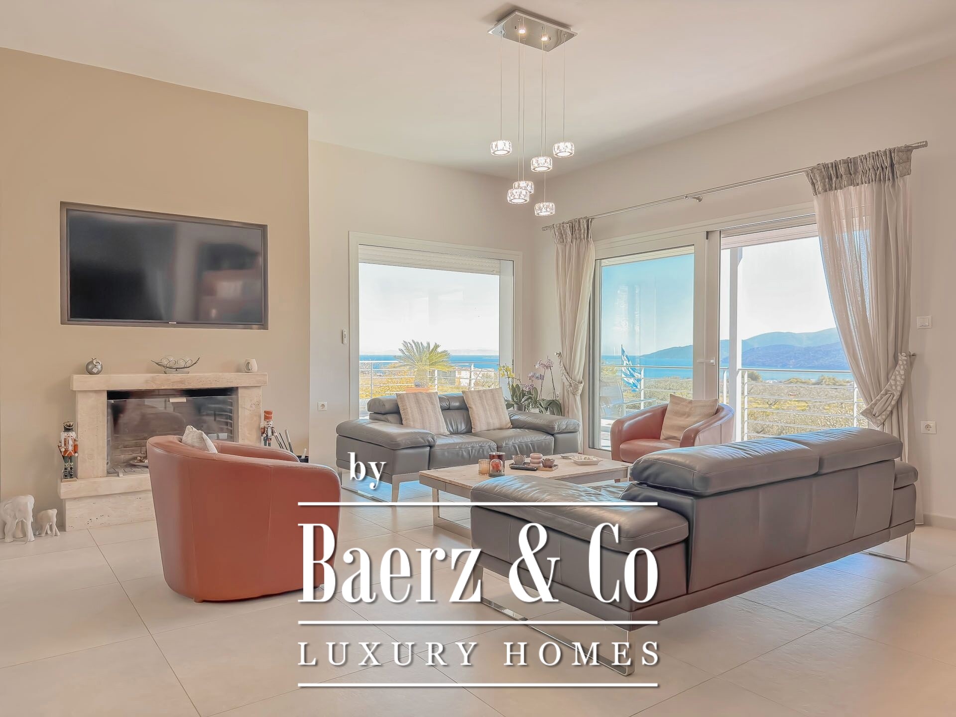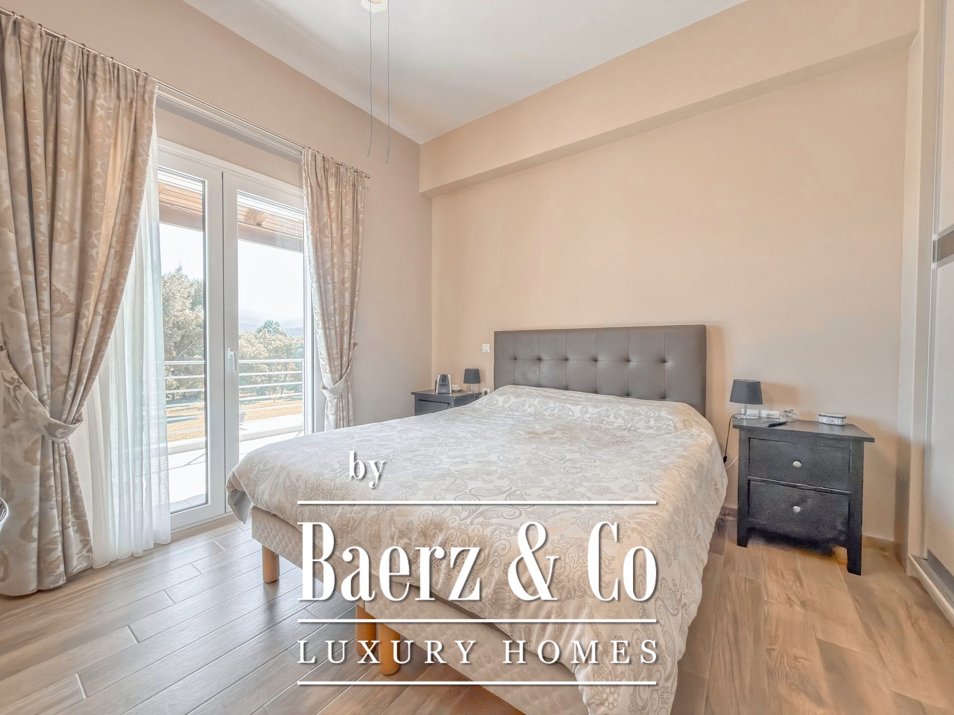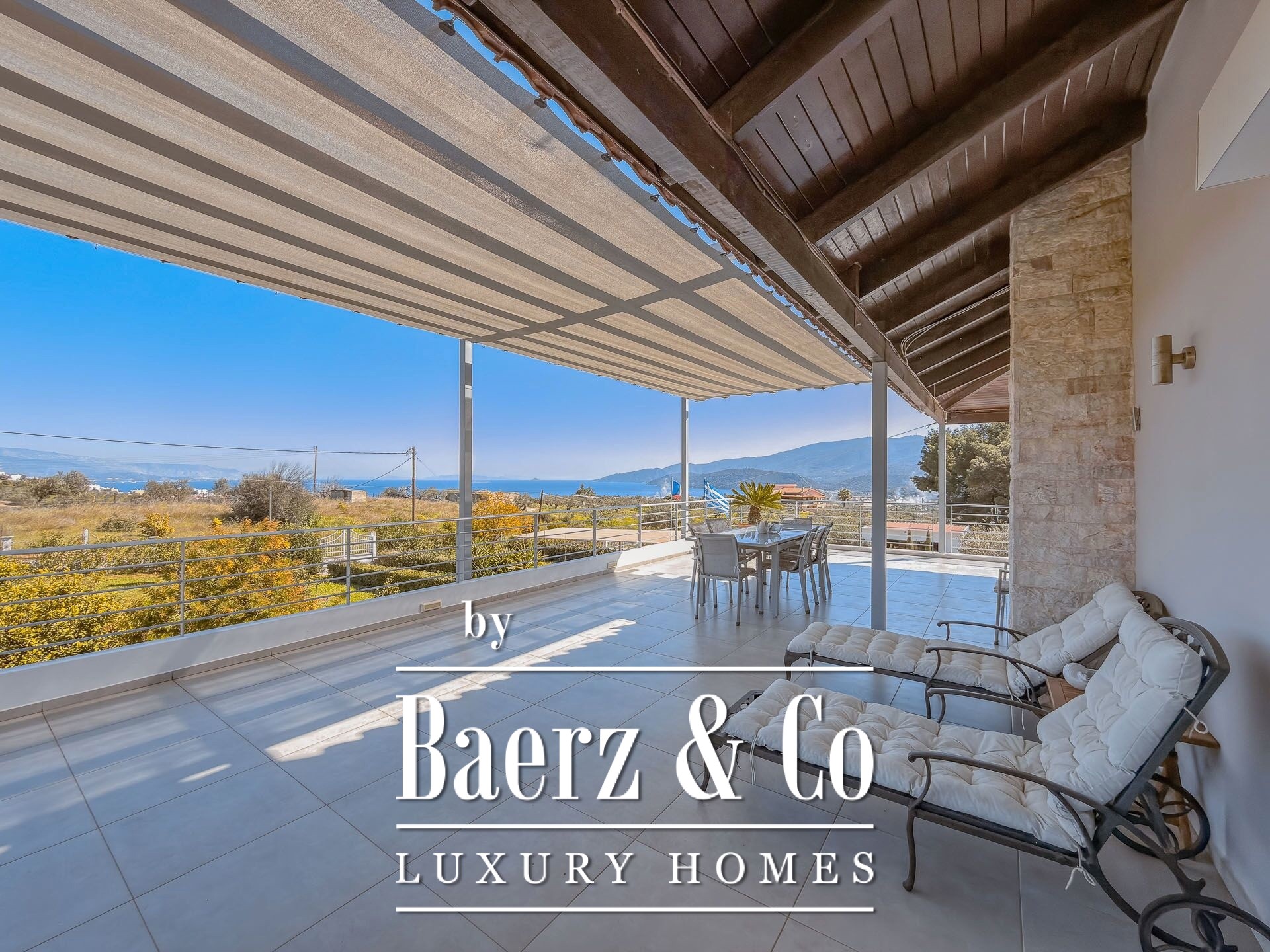 This residence distinguishes itself through energy autonomy, powered by 18KW photovoltaic panels and supported by a heat pump, solar water heating, and electric vehicle charging. The grounds, with pine, olive, and fruit trees, evoke the Mediterranean setting and offer scope for olive oil production. Located 1,500 meters from the beach and local amenities, the property combines tranquility with convenience, while advanced security features including CCTV, alarm, and cameras offer peace of mind. Luxury villa Galataki redefines the experience of owning a home in Greece, where understated luxury and advanced infrastructure meet.