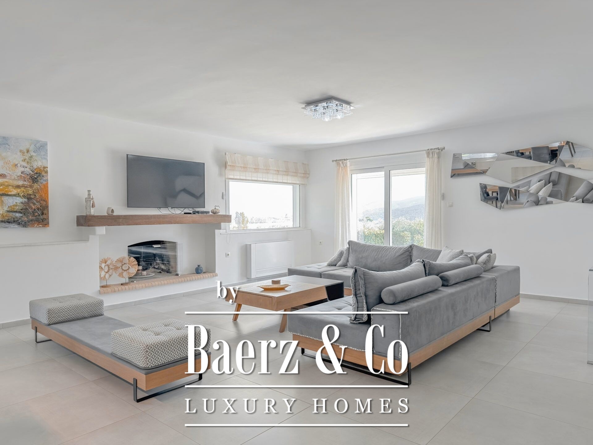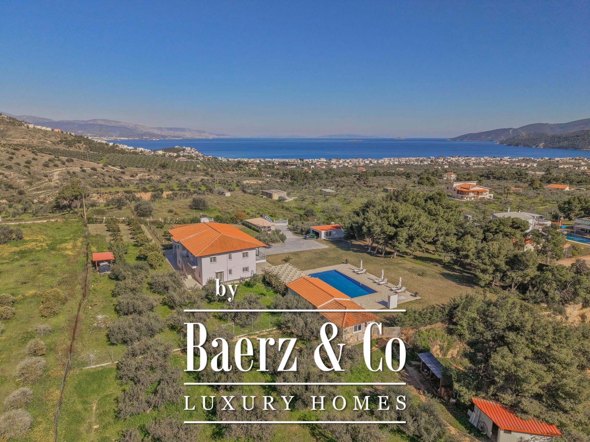 Luxury villa Galataki stands as a refined example of contemporary living, blending mature structure with the renewed elegance brought by a full renovation in 2022. This 360 m² villa, set within a 10,000 m² fenced plot, delivers total privacy and unobstructed views of the Saronic Gulf. The property is designed across two independent levels, each fully equipped, offering remarkable flexibility for multi-generational living or professional accommodation.