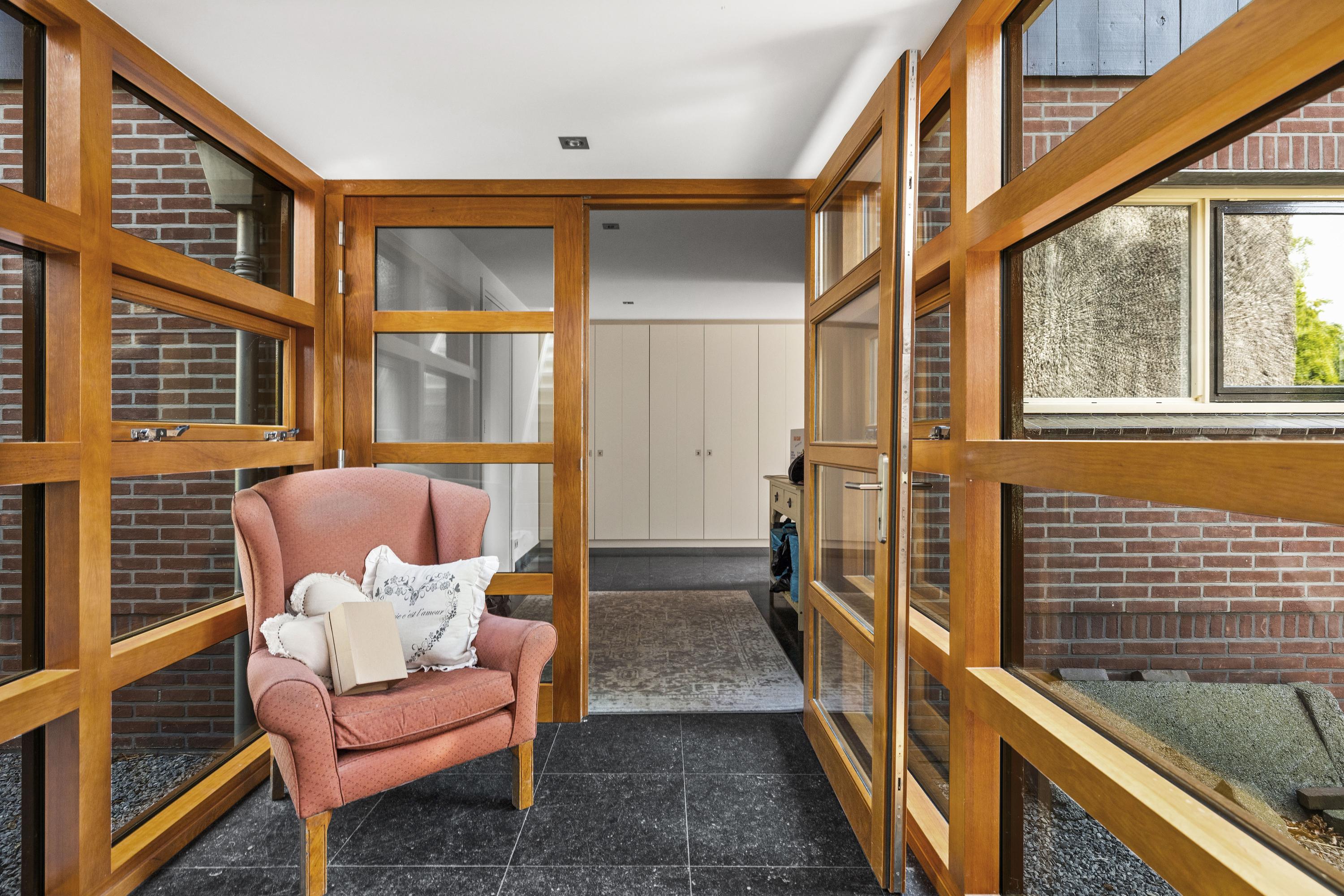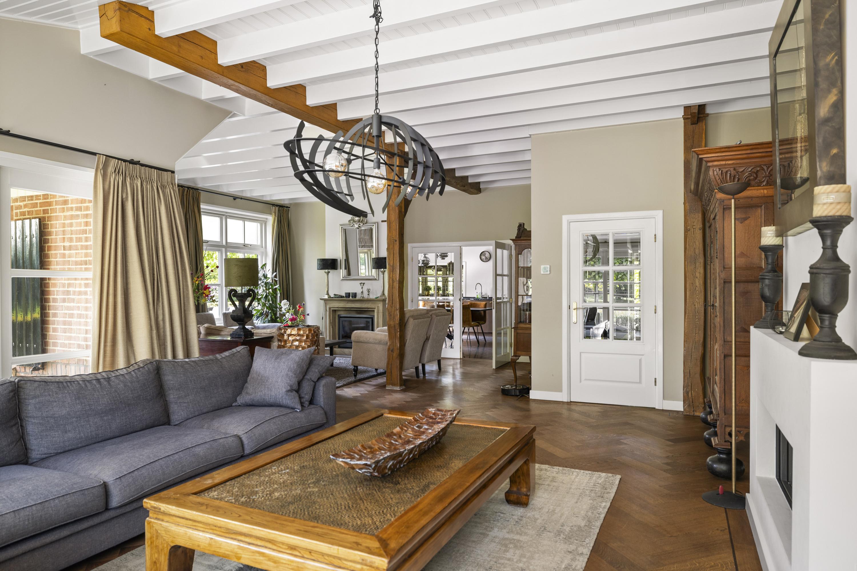 On the right is the kitchen, the beating heart of this house. The design is truly beautiful: traditional craftsmanship by Lodder Keukens from Barneveld, equipped with all modern conveniences. Every door, drawer, and function has been carefully considered. The kitchen has an L-shaped layout and is very spacious, so there is plenty of work space and room for all your guests at the large dining table.