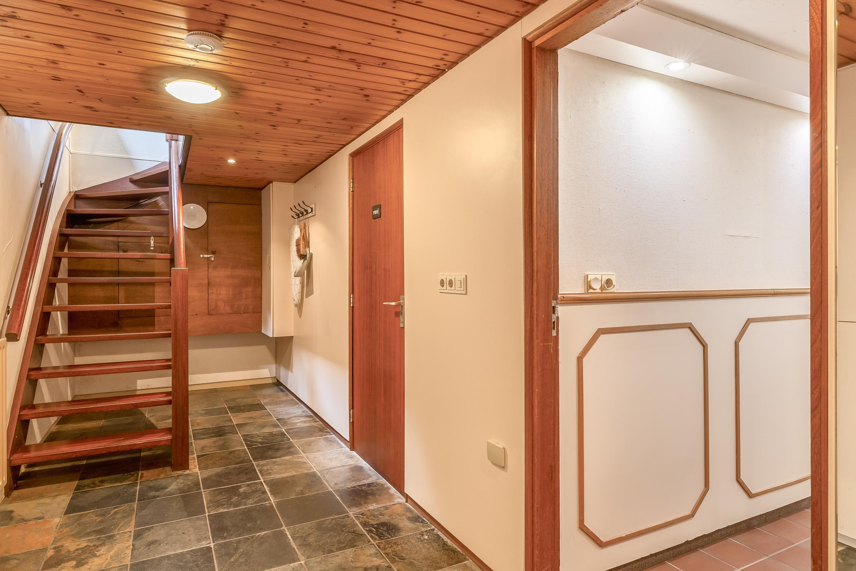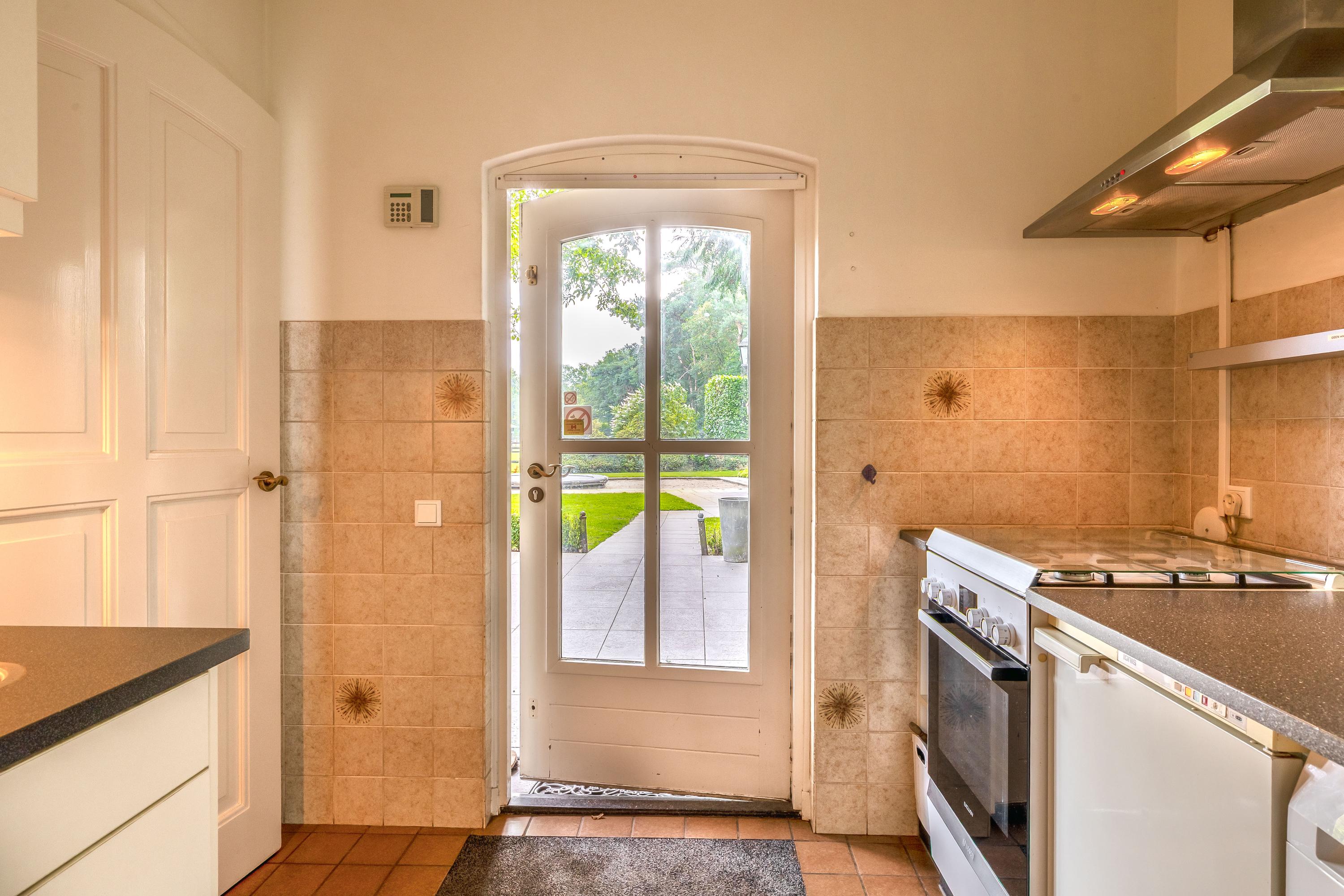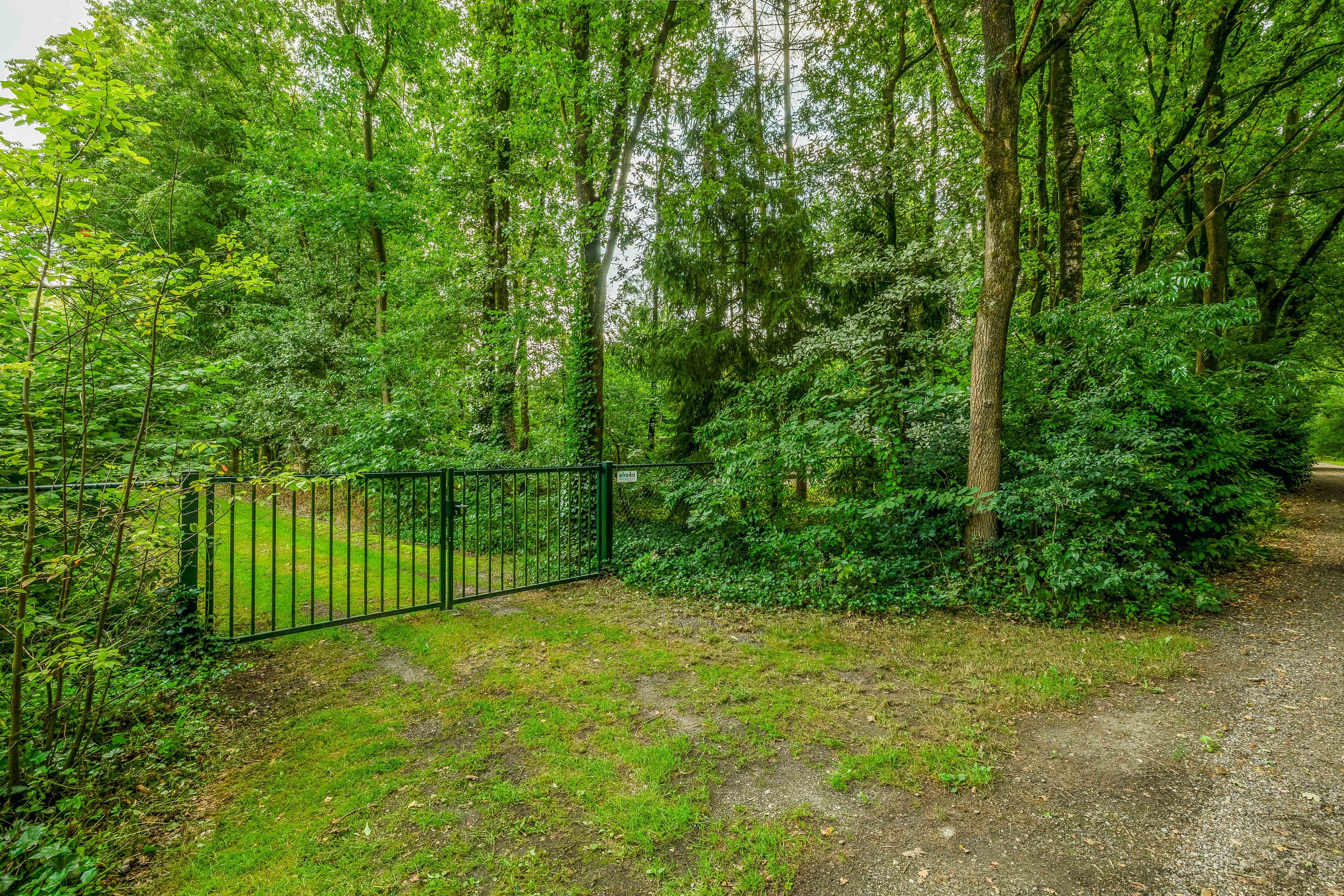Surrounding the house is a beautifully landscaped garden with a large terrace, playground, mature trees and plants, and a beautiful view of the adjacent meadows. The garden shed has been converted into a wellness area with a sauna, relaxation room, bathroom and toilet – a perfect place to relax. The former swimming pool is currently used as a sandpit with a trampoline, but can easily be restored to its former glory. The garden blends seamlessly into the surrounding private woods, ideal for a walk or a ride on your own property.