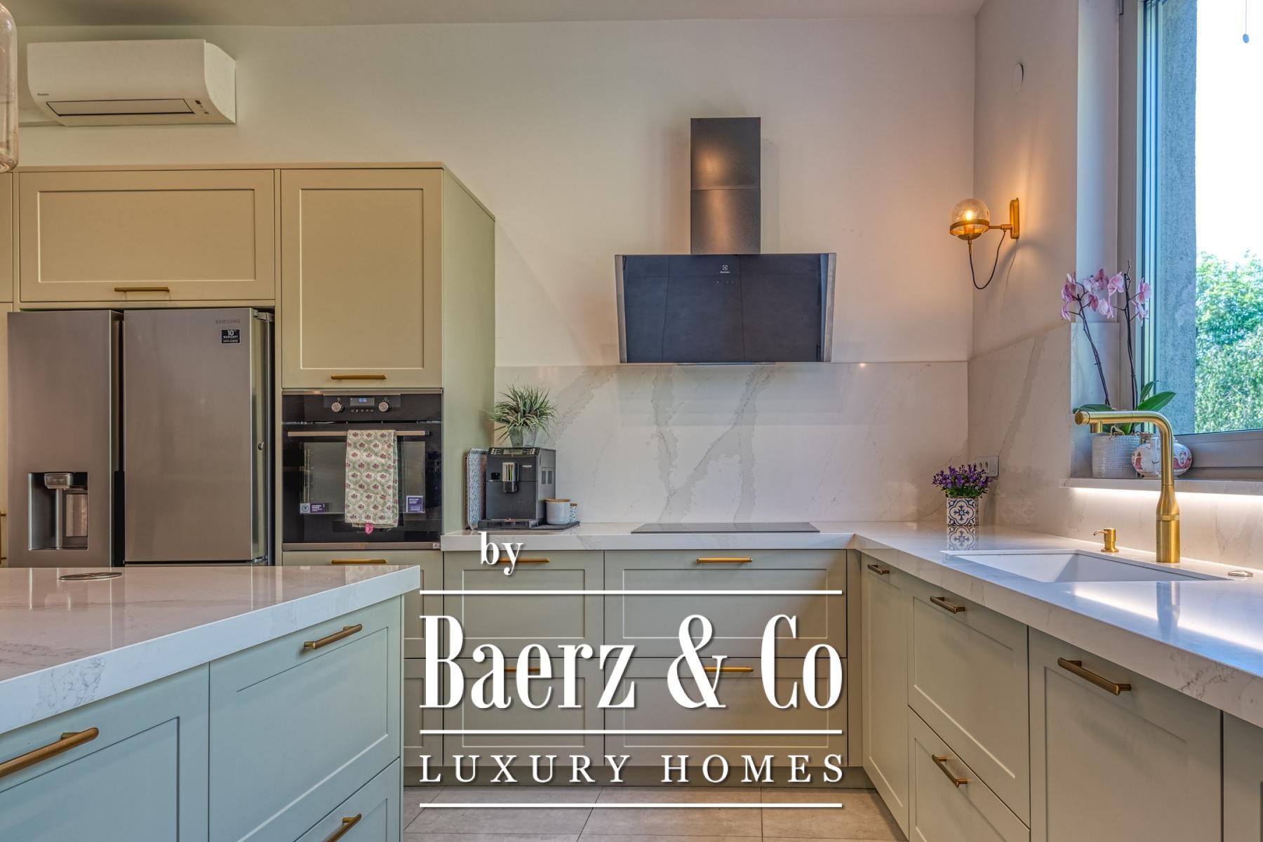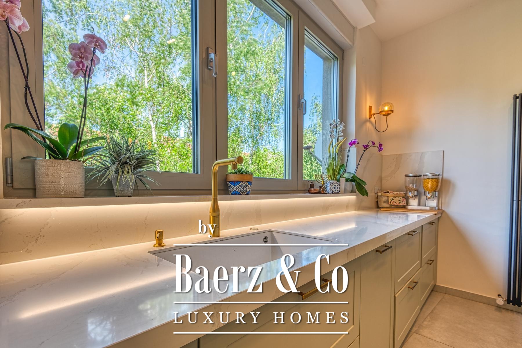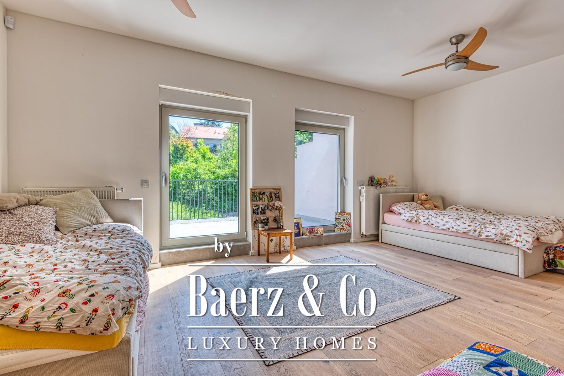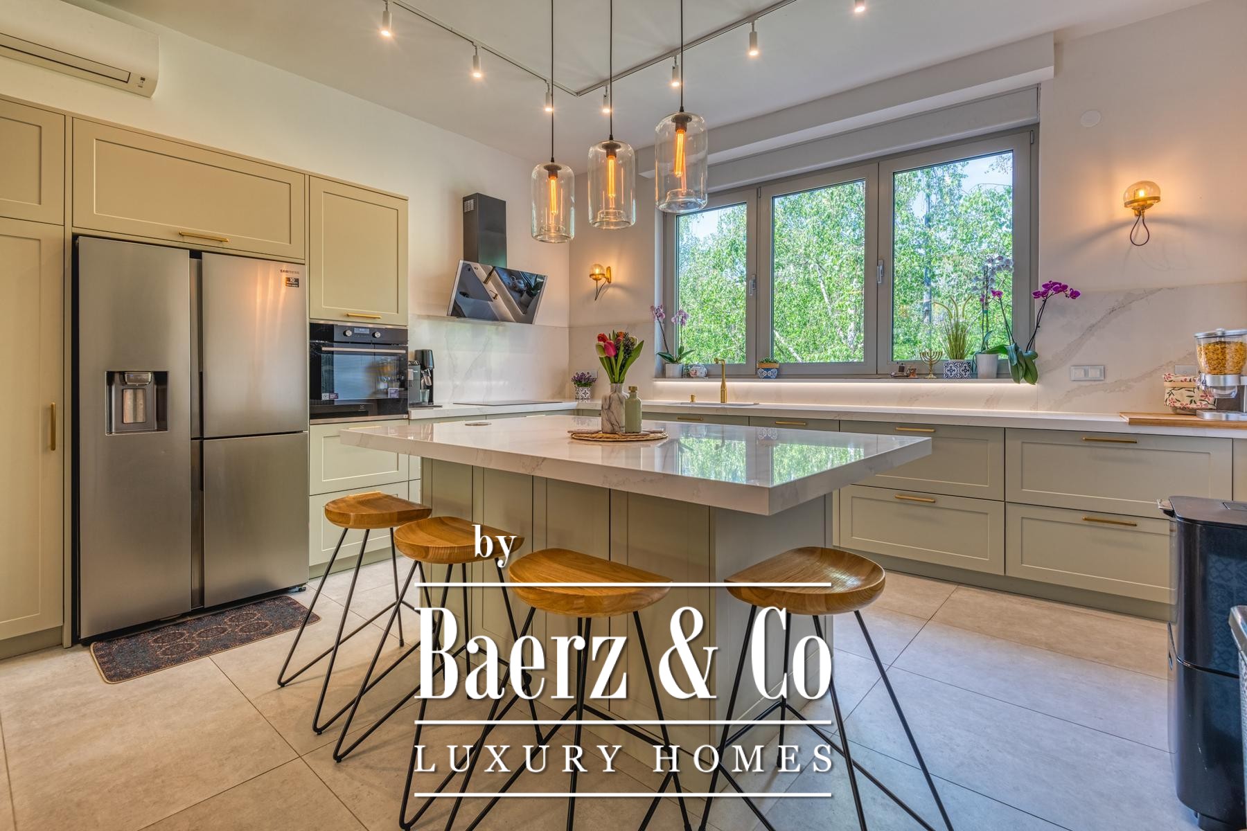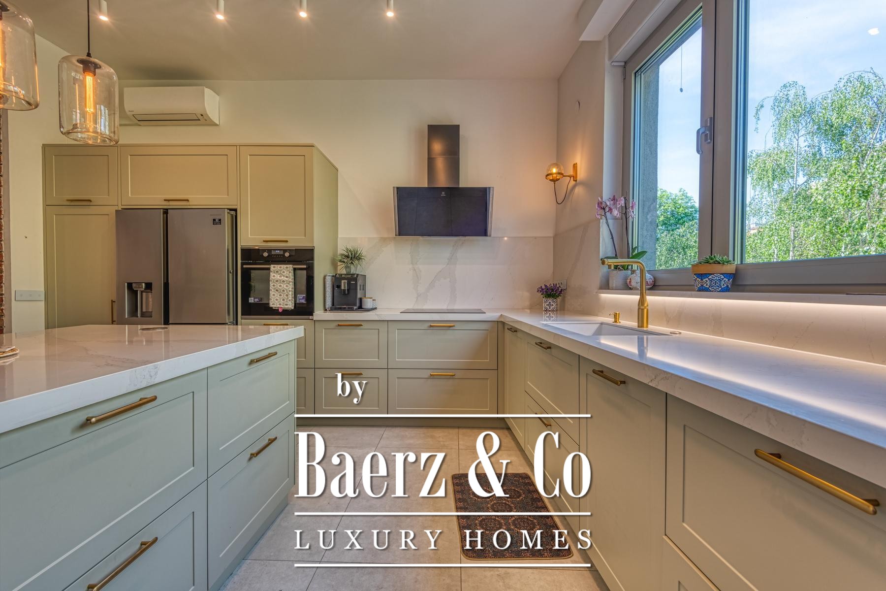 access to the terrace 3.75 m2, two bedrooms with access to the terrace 11.42 m2 and bathroom. Total calculated NKP 203.91 m2.During the decoration and renovation, only the highest quality materials and high-class equipment were used. Concrete construction, aluminum joinery with triple glazing. Designer-equipped bathrooms with top brands of all sanitary elements (GROHE), rustic floor A class, air-conditioned rooms. Floor gas heating with built-in high-quality radiators with smart home system, fireplace, Daikin air conditioners, water purification and softening system. Smart system for blinds and lights with control via the app or the Amazon Alexa system! The kitchen is made to measure, as are all the built-in wardrobes in the rooms, all in the same neutral colors.All other information on request.