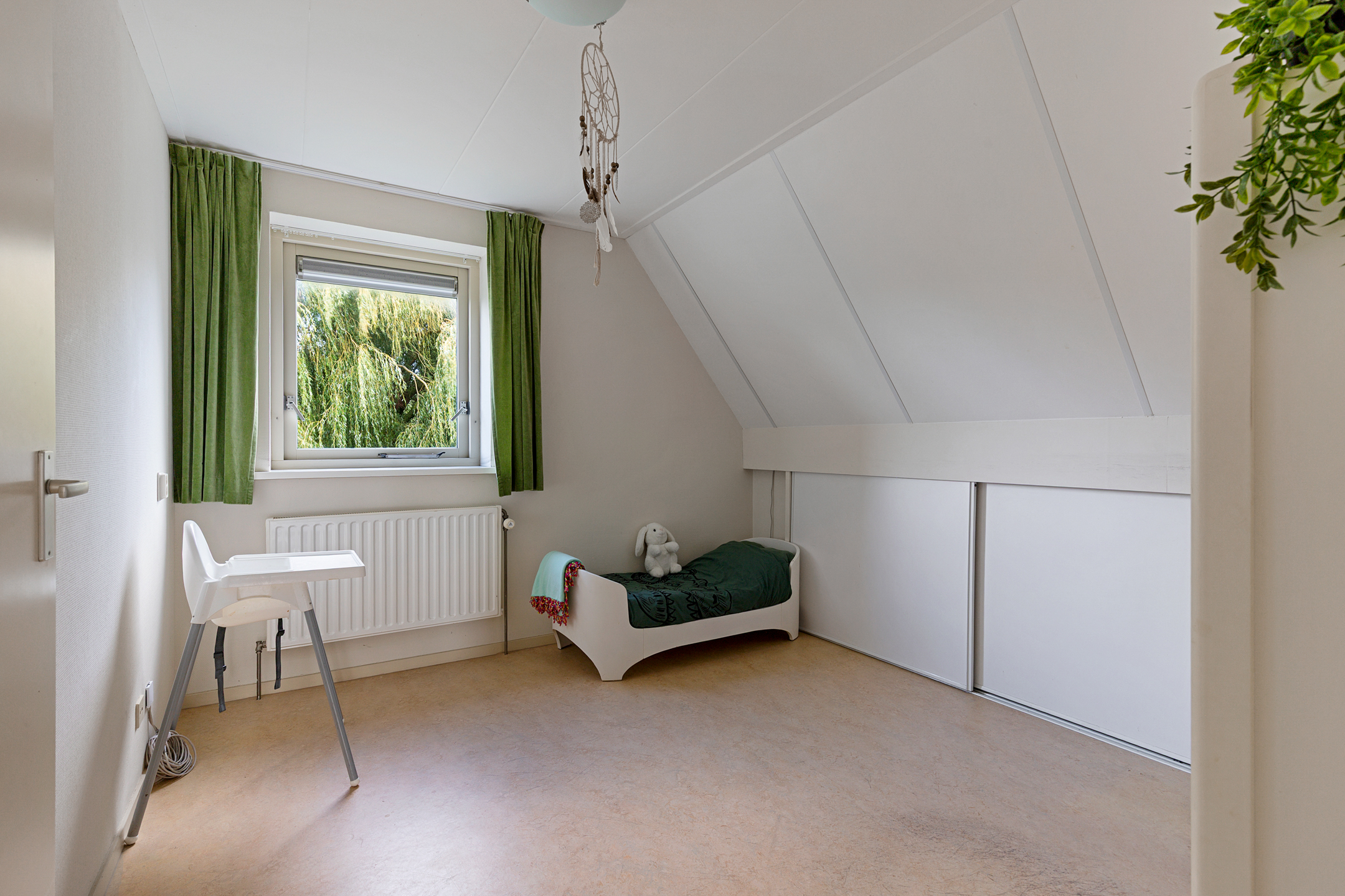 A well-insulated attic with natural light (two windows) is accessible via loft stairs. Thanks to the roof structure, this space has standing height and makes an excellent dry storage area. Mechanical ventilation is also located here.