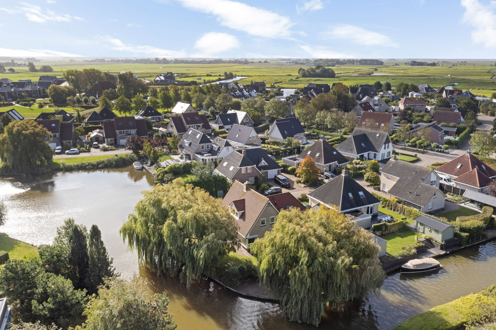 This well-maintained villa with indoor garage is situated directly on the water in one of Harlingen’s most desirable and spacious residential neighbourhoods, bordering the bird reserve *It Hegewiersterfjild*. From both the living room and kitchen, the home offers panoramic views of wide waterways and lush greenery.