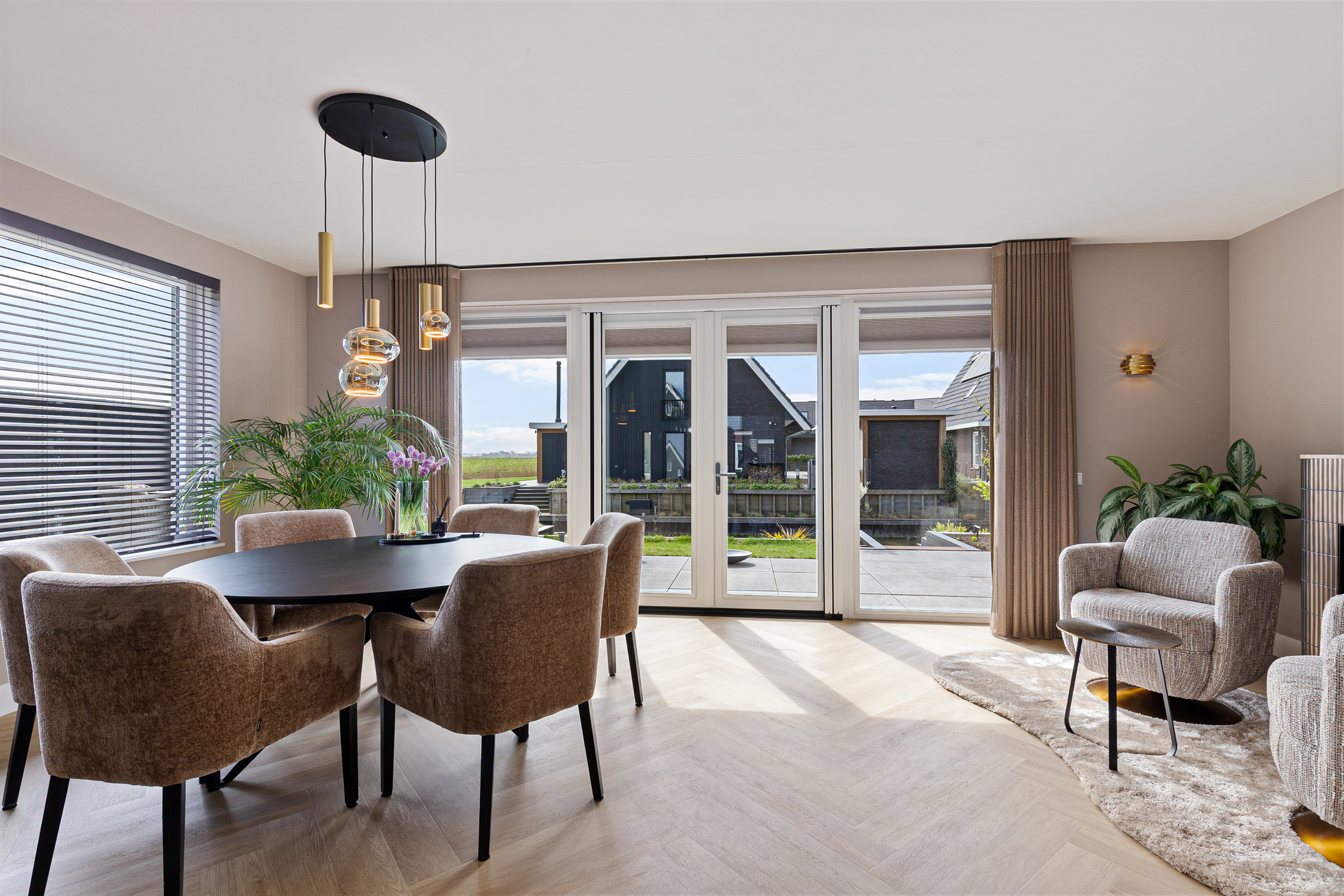 The architect-designed waterfront garden has been beautifully landscaped and features several terraces, stylish planting, and a generous composite mooring jetty. From your private water access, you can directly enter a branch of the famous Eleven Cities Route (Elfstedentocht).
