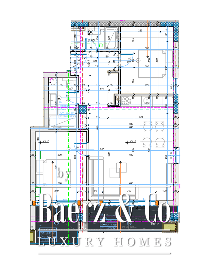 Structure of the apartment: hallway, living room with kitchen and dining table, 2 bedrooms, 2 bathrooms and 2 terraces. It has a panoramic sea view and the view of the mountains that surround it. The apartment will, upon its finishing, have equipped bathroom, equipped tiles, equipped kitchen and air conditioning.