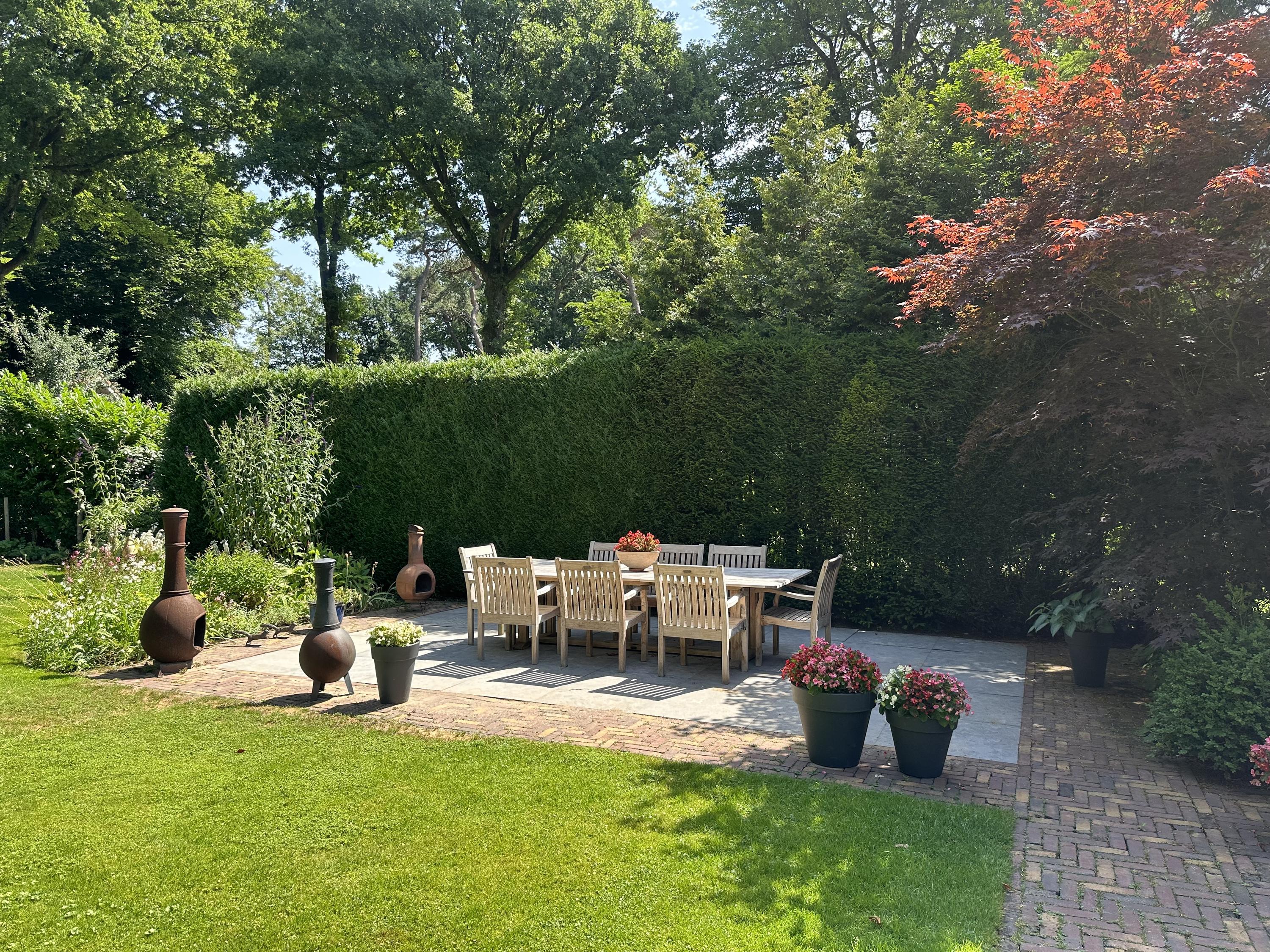 A tree-lined paradise of 1,590 m². Offering complete privacy, sun, shade, room to play or relax – and a detached wooden outbuilding with garage, studio, and storage space. Whether you use it as an office, hobby space, or a quiet retreat, the possibilities are as generous as the garden itself.