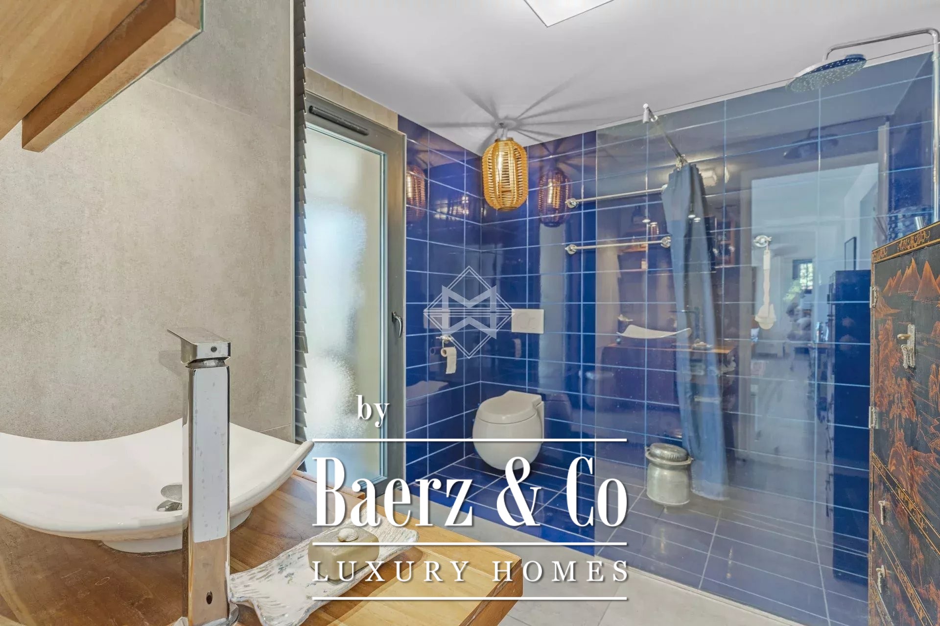 The interiors, bathed in natural light through large windows, feature generous volumes and open onto 2 terraces with dual exposures, each served by its own kitchen. The villa includes 3 bedrooms, designed to comfortably accommodate family and guests.