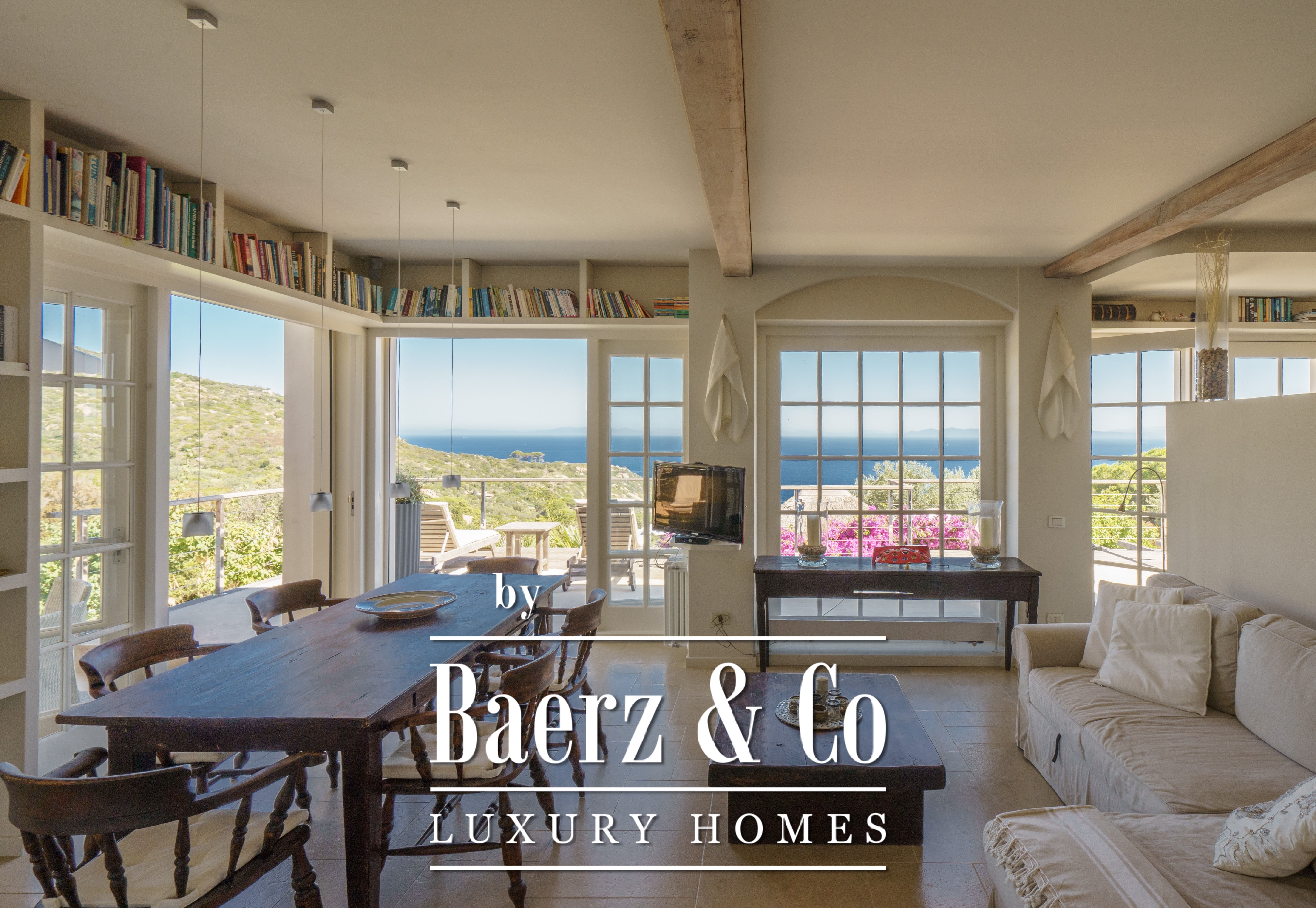 The setting is both secluded—neighbours are a distant presence—and conveniently proximate to the port of Giglio and Arenella beach, which lies just 1.7 kilometres away. Facilities include a swimming pool and several terraces, each lending a different perspective over the sea and the island’s undulating landscape. This villa for sale in Isola del Giglio marries discreet coastal living with architectural provenance and enduring style.