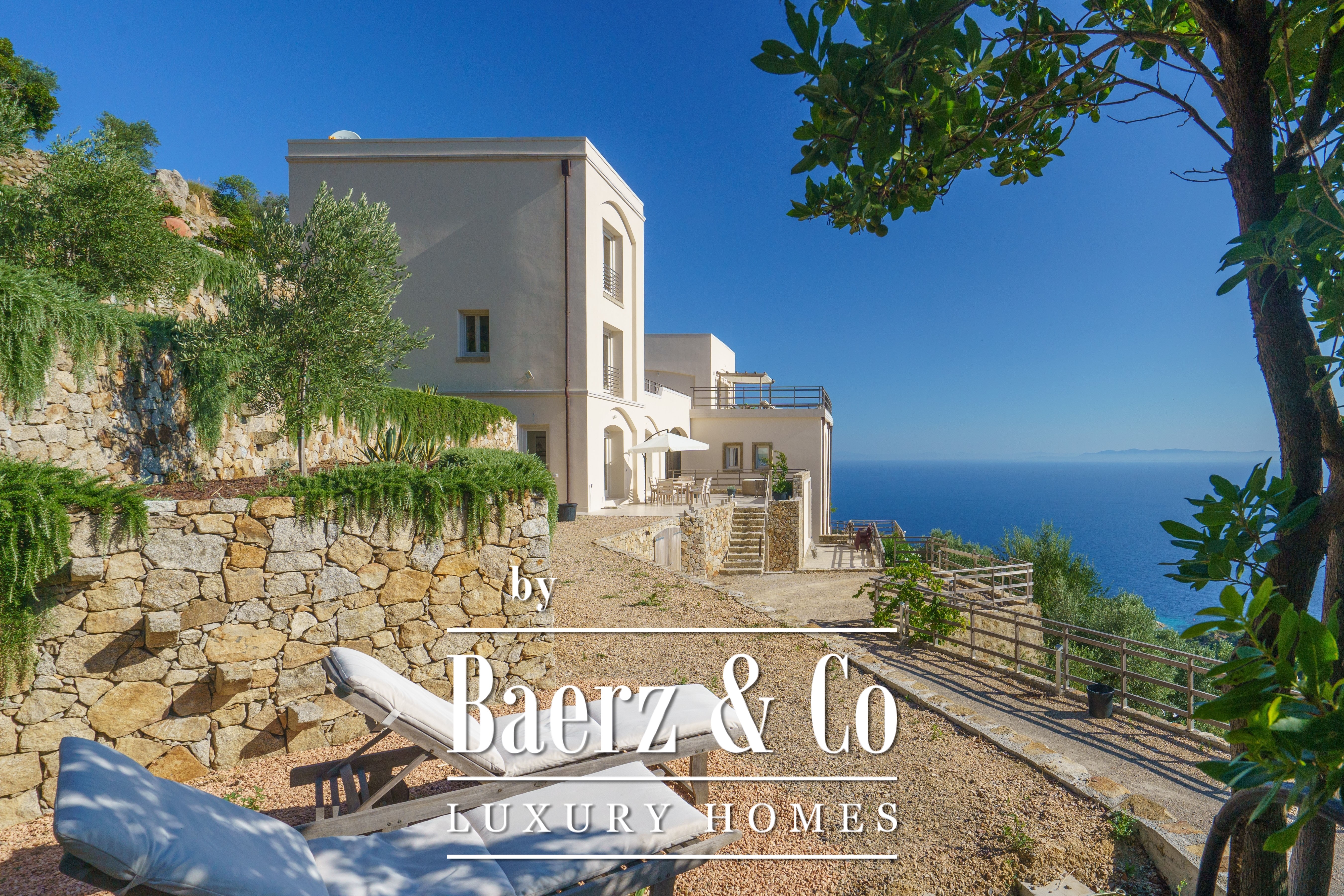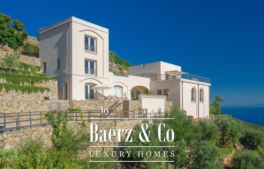 The original villa, designed in the 1950s by a noted architect, was restored in the early 2000s to preserve both authenticity and architectural integrity. Terraced gardens, Mediterranean vegetation and thriving olive groves envelop the 9,000 m² plot, affording calm and privacy. The main terrace looks out to vistas that trace the turquoise sea, Arenella beach, Monte Argentario and the island of Giannutri.