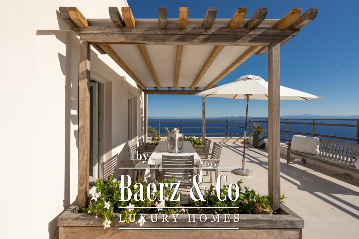 Villa Isola del Giglio with sea and mountain views is a real estate complex set on the east coast of the island, presenting 470 m² of living space. This distinctive property comprises a main villa linked by a walkway to an adjacent structure, together hosting four apartments. A fifth apartment stands independently in the gardens, newly completed in 2022. All five apartments are appointed with a double bedroom and private bath, and select living areas offer additional sofa accommodations. In total, the villa hosts up to 18 guests across carefully delineated interiors.