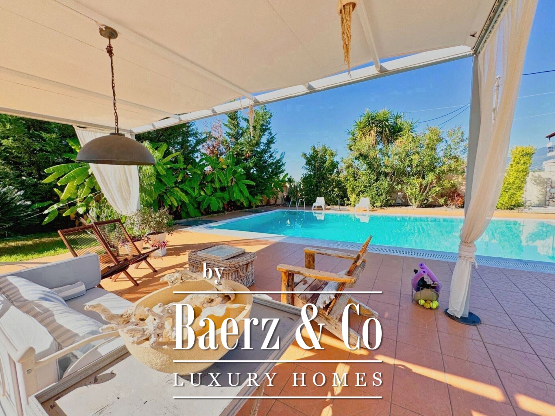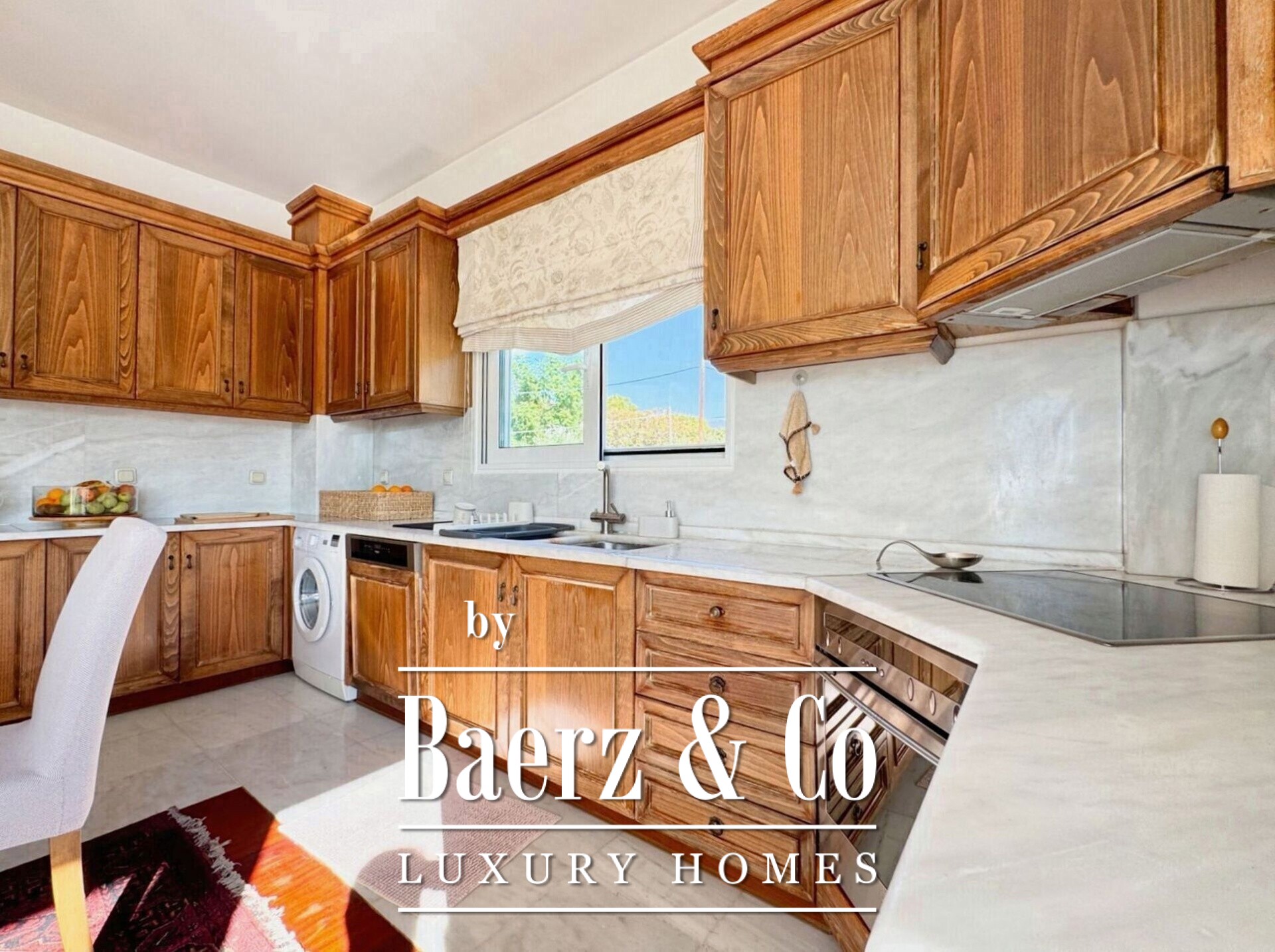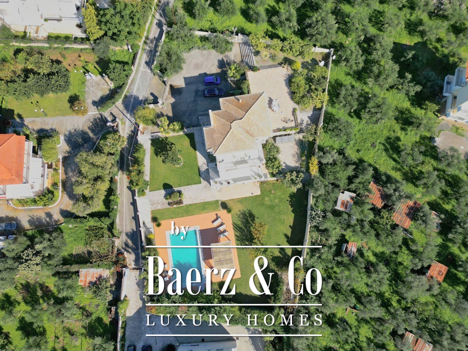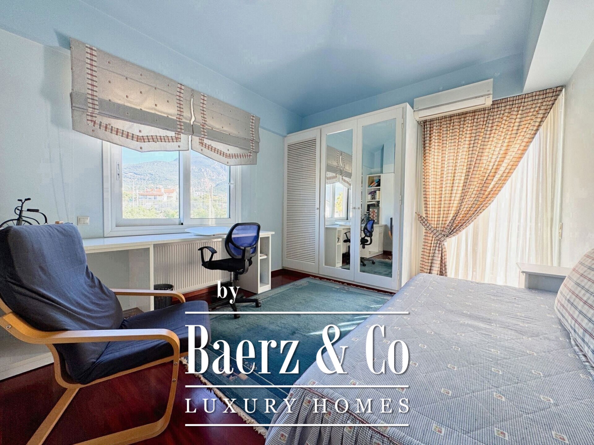 Detached house Kalamata offers an impressive sense of space and privacy across 370 m² and four levels. Set on a generous 2,000 m² plot, this home balances refined comfort with striking panoramic sea and mountain views. Outdoors, a pool, pergola, and well-equipped BBQ area invite restful afternoons or vibrant gatherings, enveloped by lush gardens and mature trees. There is ample parking and a closed garage, ensuring ease and security.