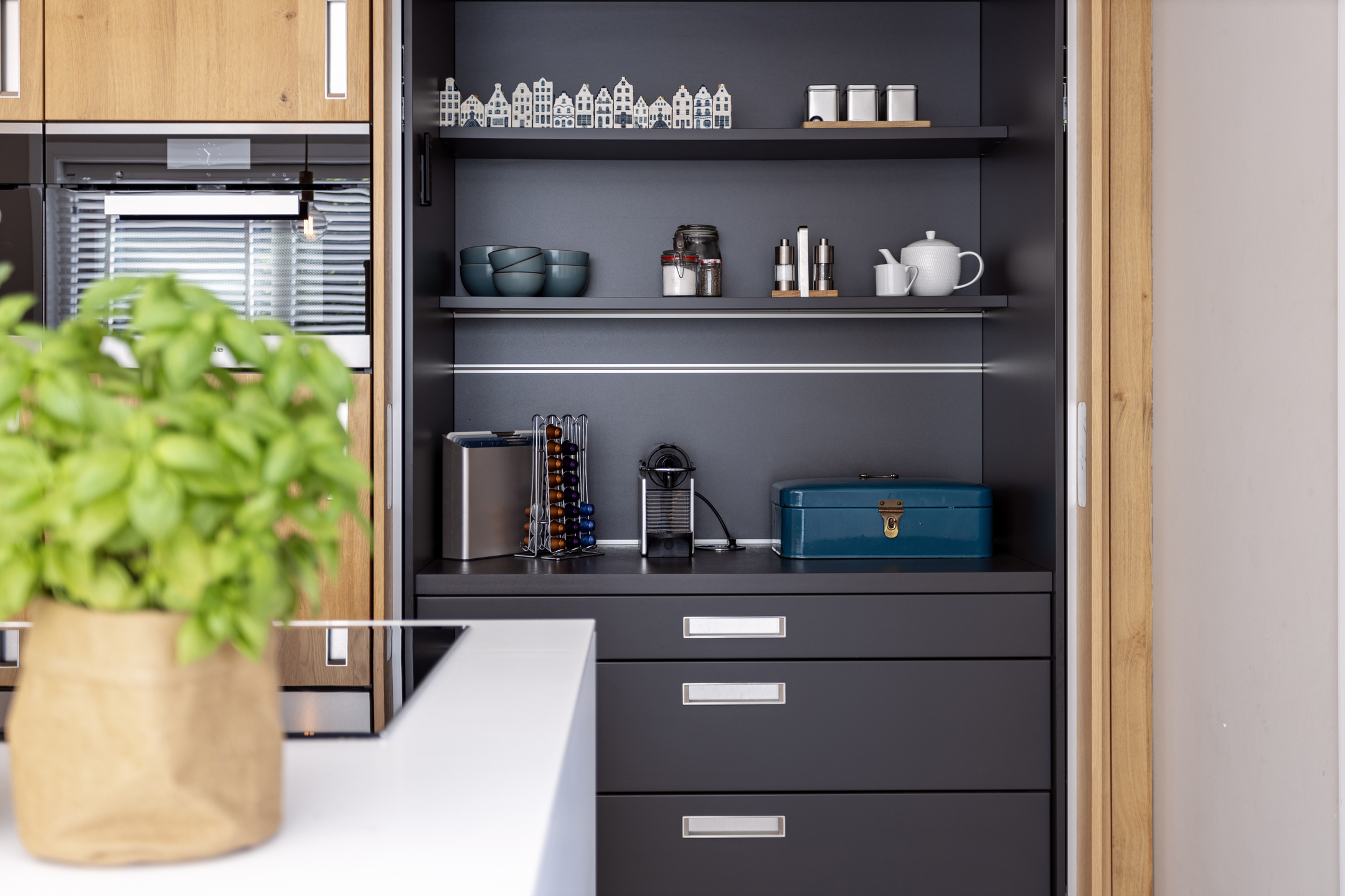 Upon entering there is a generous bright entrance with beautiful staircase and toilet room. Through the steel door we enter the generous, very bright living room with work corner and French doors to the beautiful garden. At the rear of the house is a large modern kitchen with cooking/sink island and breakfast bar; plenty of space for cozy dinners with friends and family. Again, large windows provide an abundance of light. A utility room is of course not missing; this is also where the washing equipment is located.