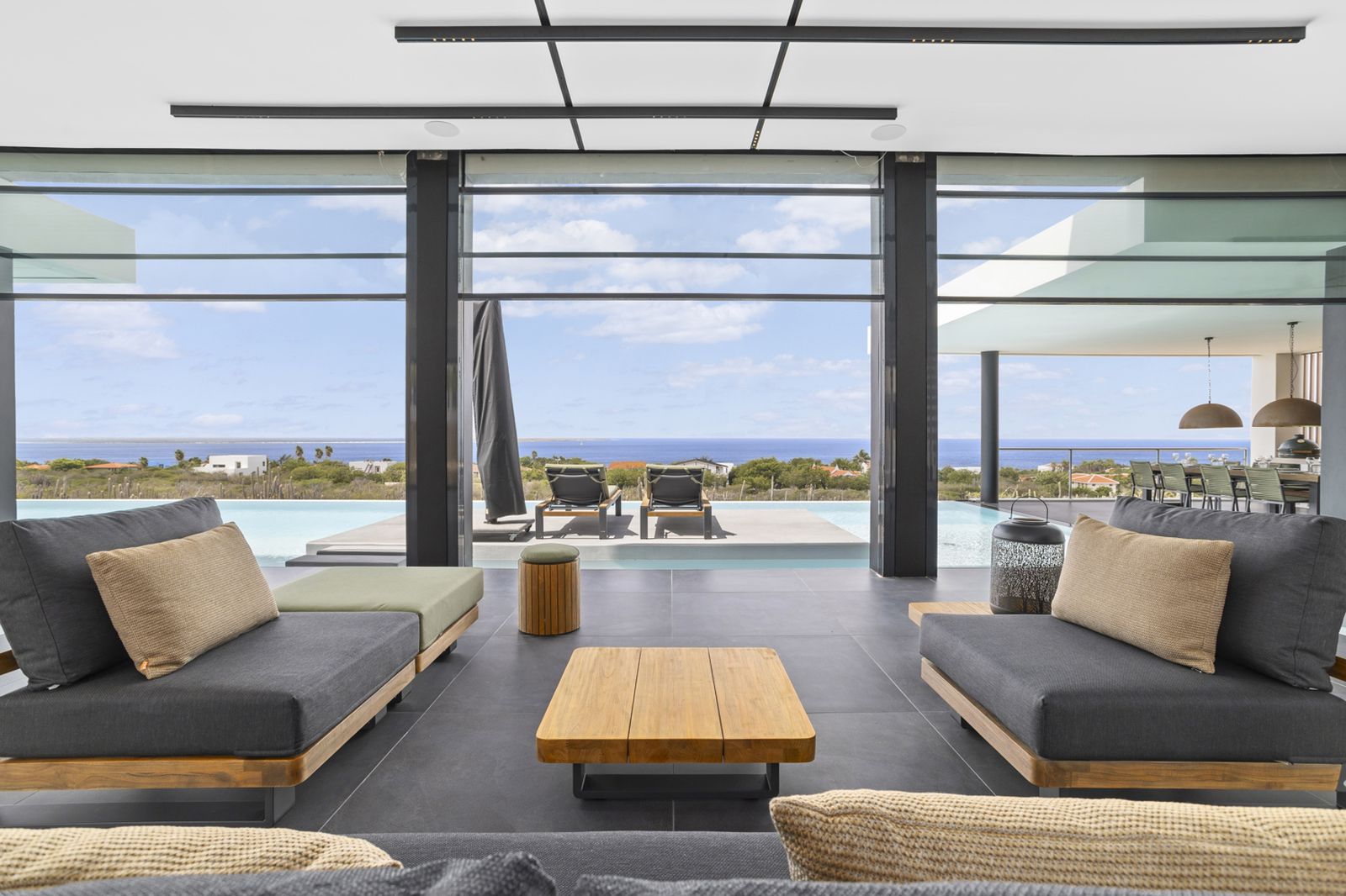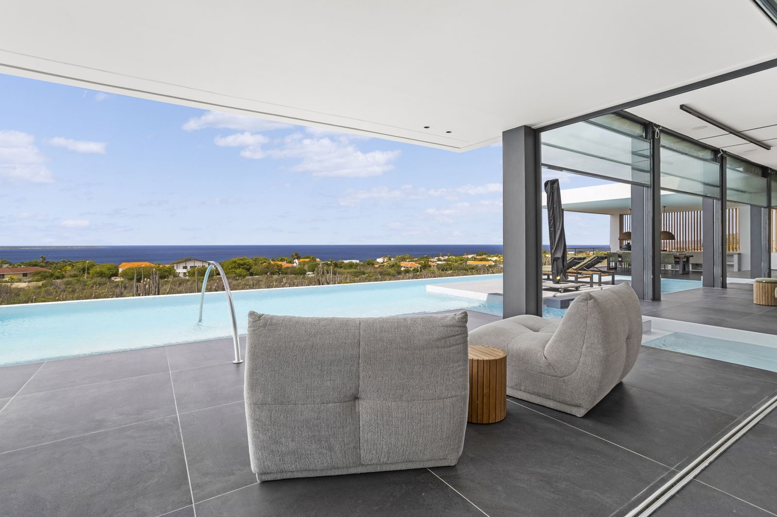 Villa for sale Kralendijk defines refined Caribbean living, set atop the beautiful hills of Sabadeco Crown West. This recently built villa offers 600m² of living space on a 1,944m² plot, where contemporary design meets panoramic ocean views, creating a sense of calm and space from the moment you arrive. Glass-framed vistas stretch from Bopec in the north to Salt Mountains in the south, infusing every room with light and a continual connection to the landscape.