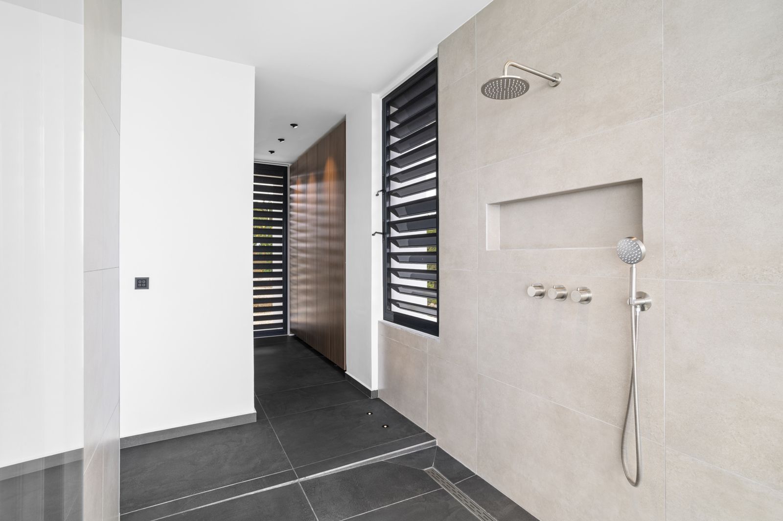 The main residence features three generous bedrooms, each crafted for rest, complemented by three meticulously finished bathrooms and a guest toilet. An additional room with private entrance offers flexible use, whether as a guest suite, study, or tranquil retreat. Throughout, interiors balance custom-made furnishings with modern comforts, supported by the discrete integration of a GIRA/TCI home automation system and TP-Link Mesh WiFi.