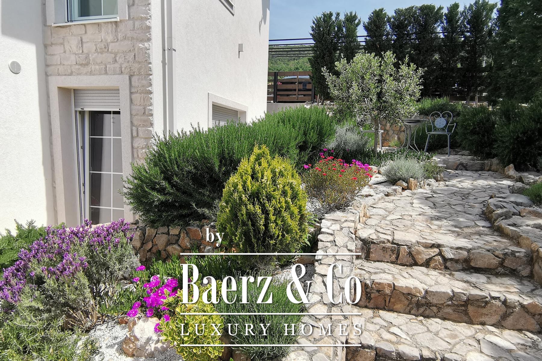 In the picturesque area of Labin on the southeastern coast of the Istrian peninsula, this unique villa is located. Surrounded by greenery and with a breathtaking view of the surroundings and the Adriatic Sea, this modern villa with its 240 m2 of living space is suitable for living in a peaceful climate.It extends over two floors and has 4 beautiful airy bedrooms, each of which is equipped with a handmade double bed, Smart TV and air conditioning. Each bedroom also has its own en-suite bathroom with a walk-in shower. All bathrooms are equipped with a system for underfloor and wall heating.On the upper floor there are 3 bedrooms with bathrooms, while one bedroom with a bathroom is located on the ground floor of the villa, providing additional comfort and can be used as a guest room. Two bedrooms on the upper floor offer direct access to a beautiful terrace equipped with a comfortable seating area and deck chairs, and from which there is a view of the landscaped garden, swimming pool and surroundings.The spacious ground floor of the villa consists of an elegant kitchen equipped with top-of-the-line appliances, a dining room that can accommodate all guests, and a comfortable living room equipped with two