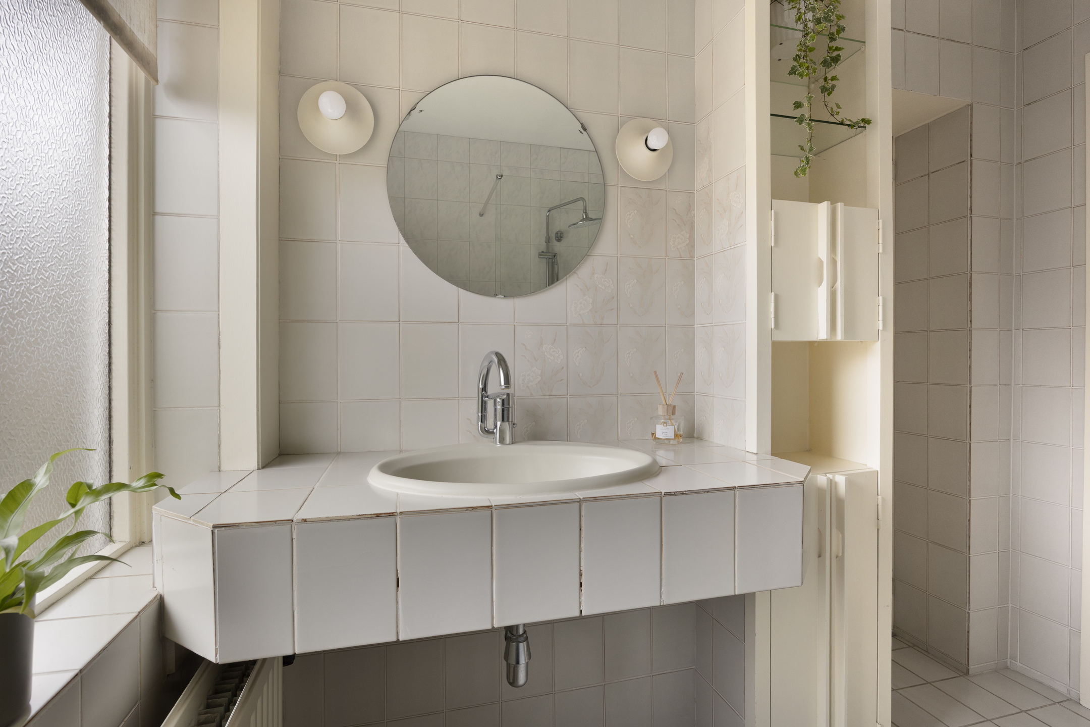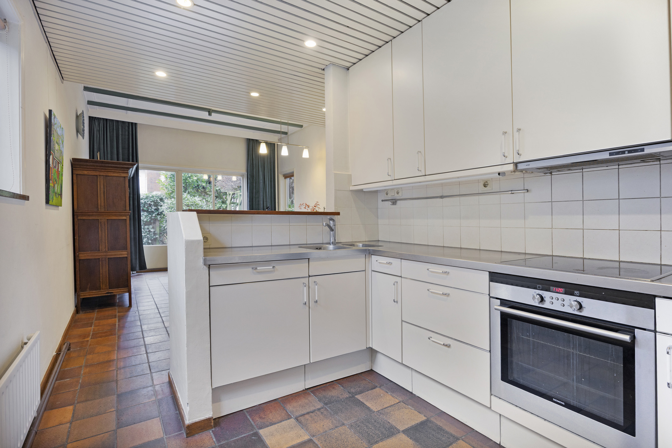 Aan de achterzijde van de woning ligt de keuken met alle ruimte voor de keukenopstelling en een grote eettafel. De deur naar de tuin staat bij mooi weer waarschijnlijk altijd open en zal voor een zoete inval van vrienden en familie zorgen. Aansluitend aan de keuken bevindt zich de bijkeuken met achterdeur naar de tuin. Wasmachine, droger, extra koel-vriescombinatie, wijnklimaatkast: er is ruimte genoeg!