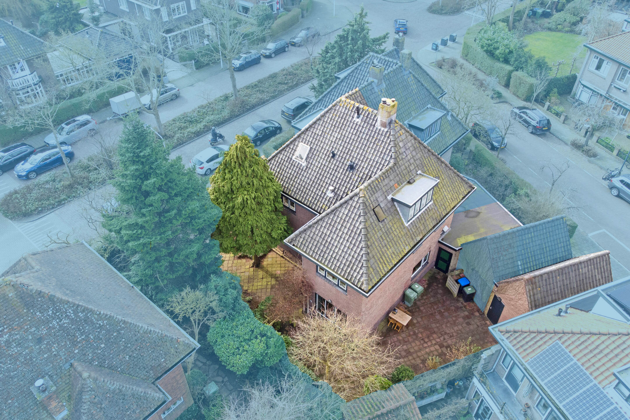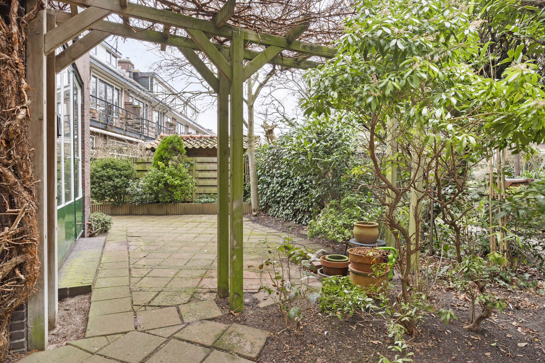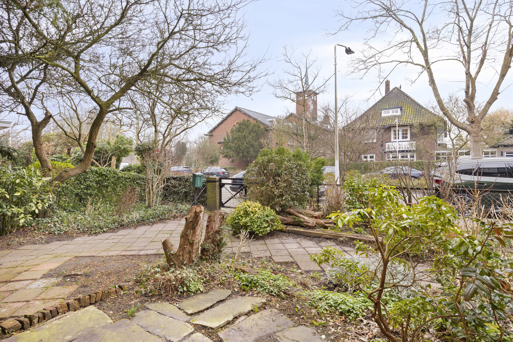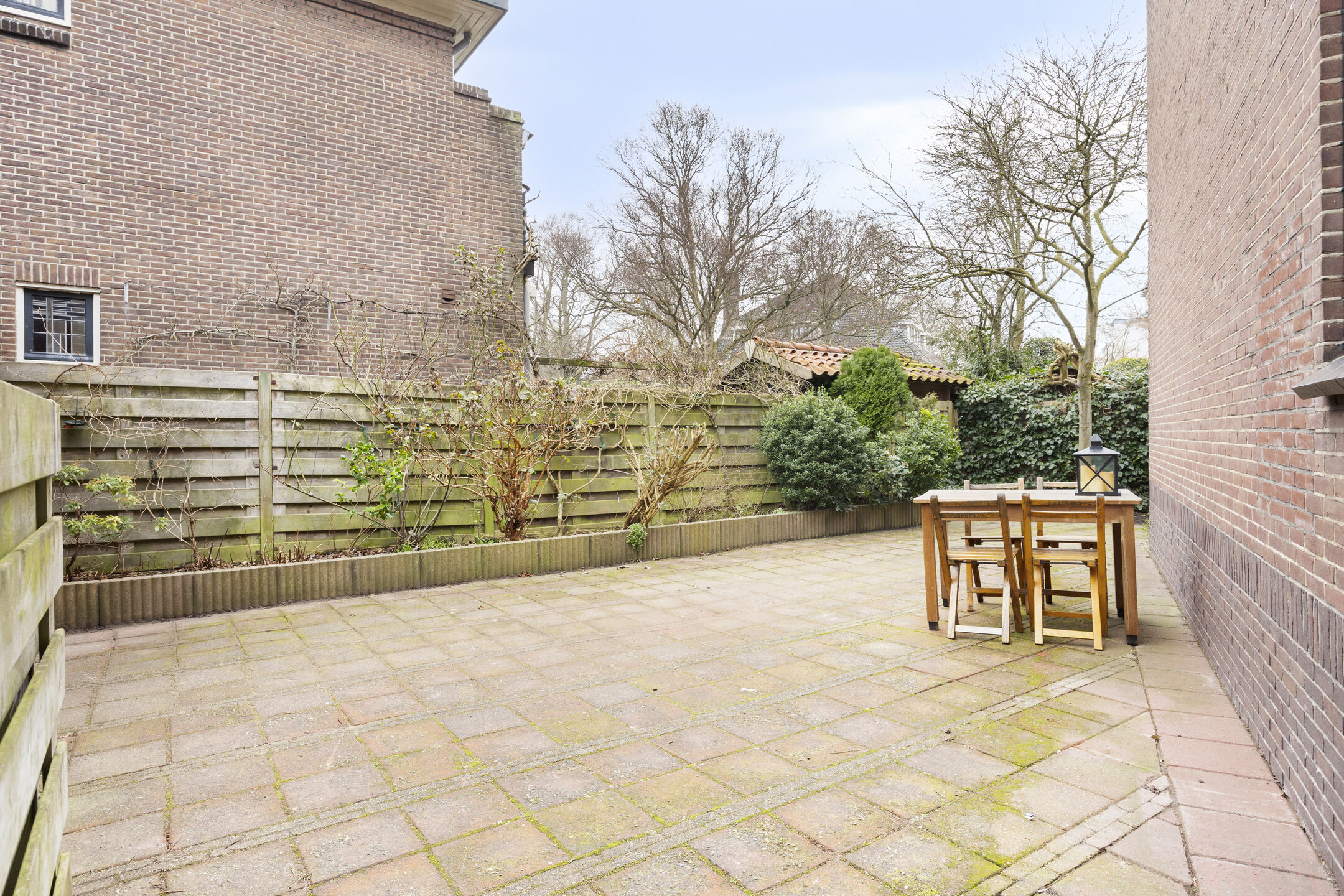 De woning ligt op een ruim perceel met aan drie zijden tuin, waarmee de mogelijkheid wordt geboden om op elk moment van de dag te genieten van de zon of juist de schaduw. De openslaande deuren vanuit de woonkamer, de deur vanuit de keuken, de achterdeur van de bijkeuken en de deur vanuit de garage verbinden huis en tuin vanuit alle vertrekken op de begane grond.
