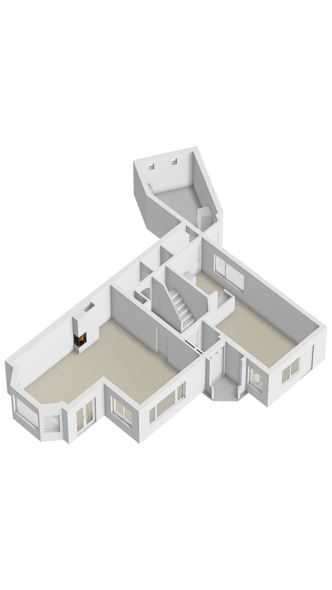 Hier wordt de bijzondere en speelse opzet van de woning goed zichtbaar. Het dak heeft verschillende nokken en dit is terug te zien in de indeling. Nu zijn er meerdere slaapkamers, een douche en ook nog een speelzolder die speels met elkaar in verbinding staan. Uiteraard kan dit nog naar eigen inzicht worden ingedeeld.