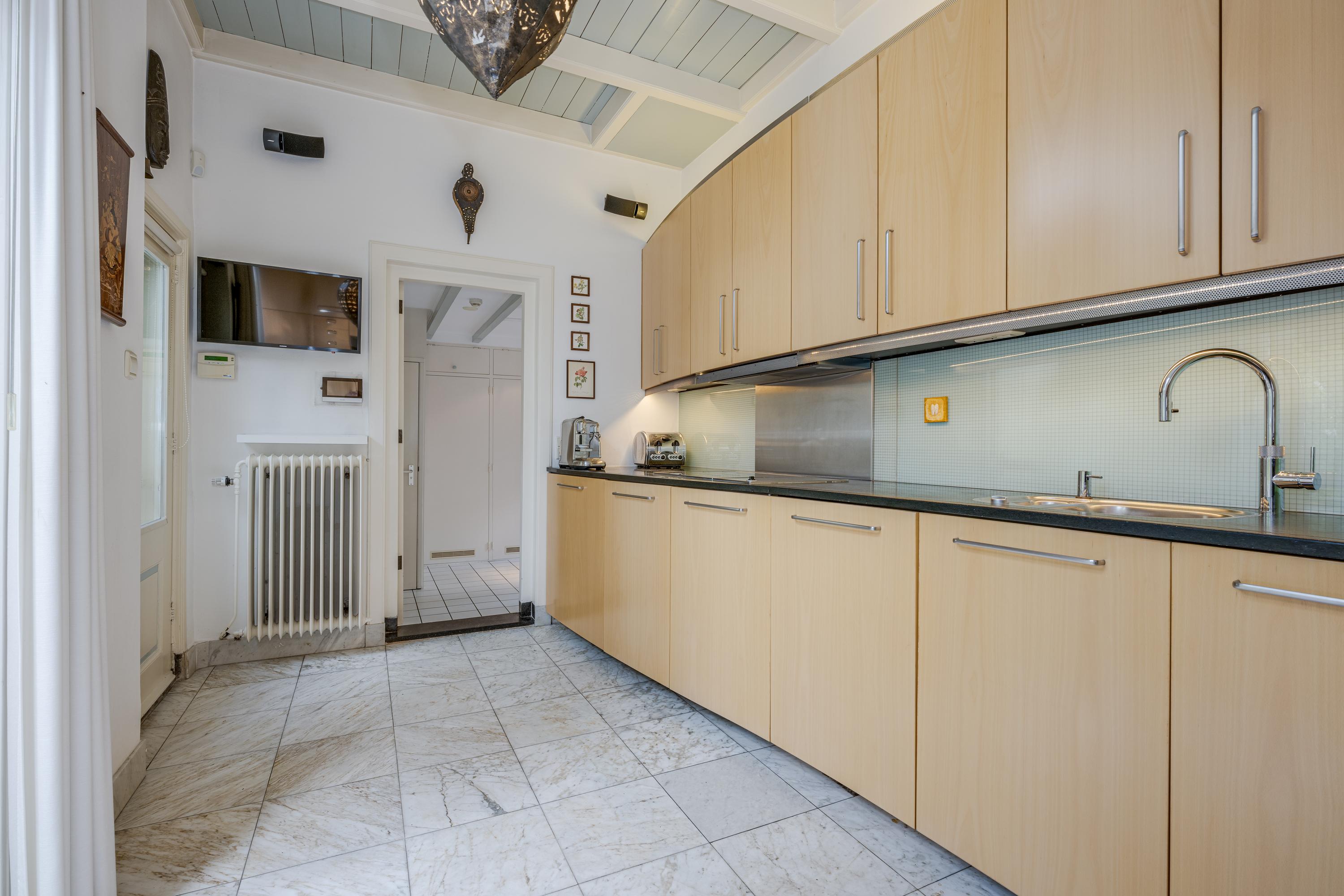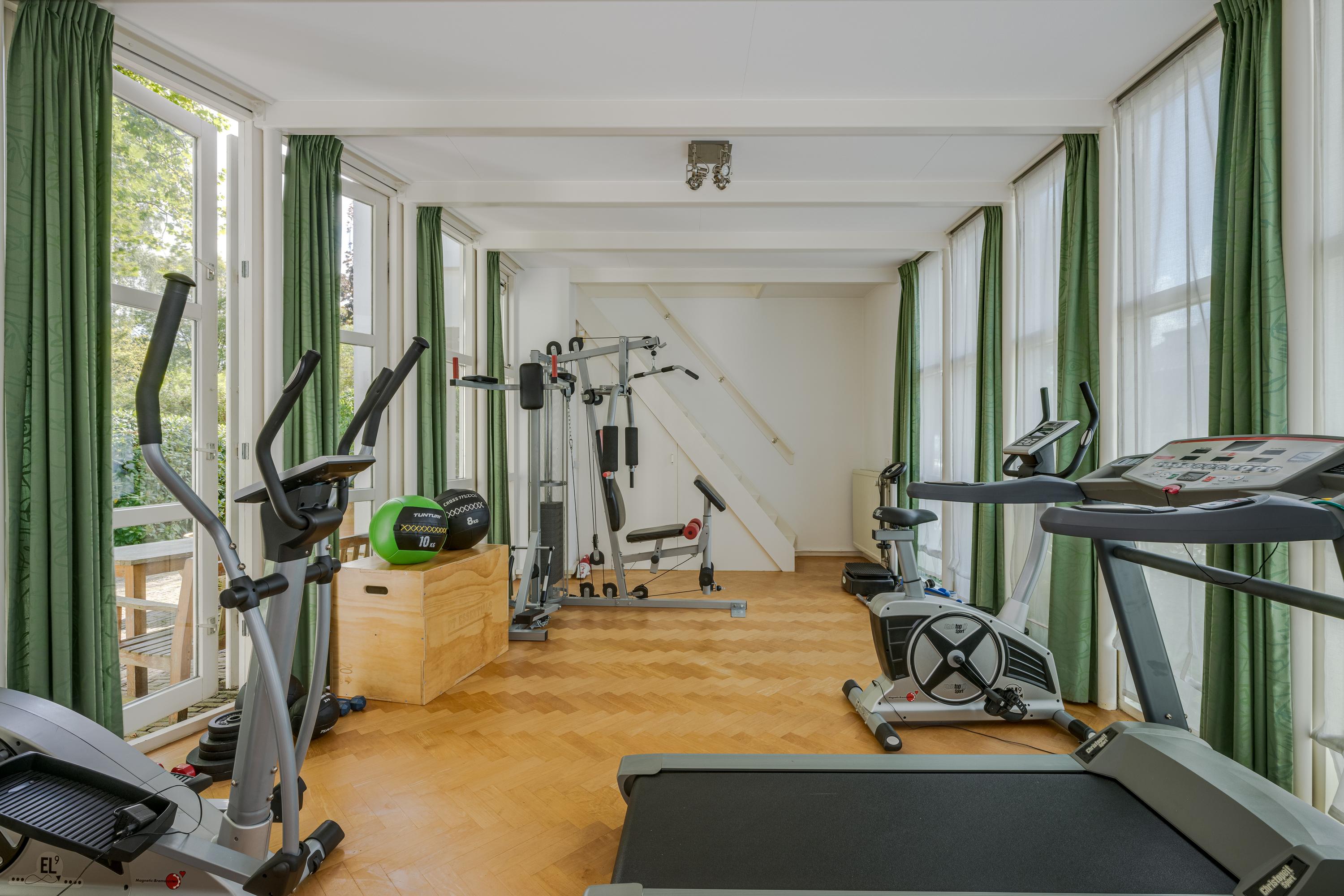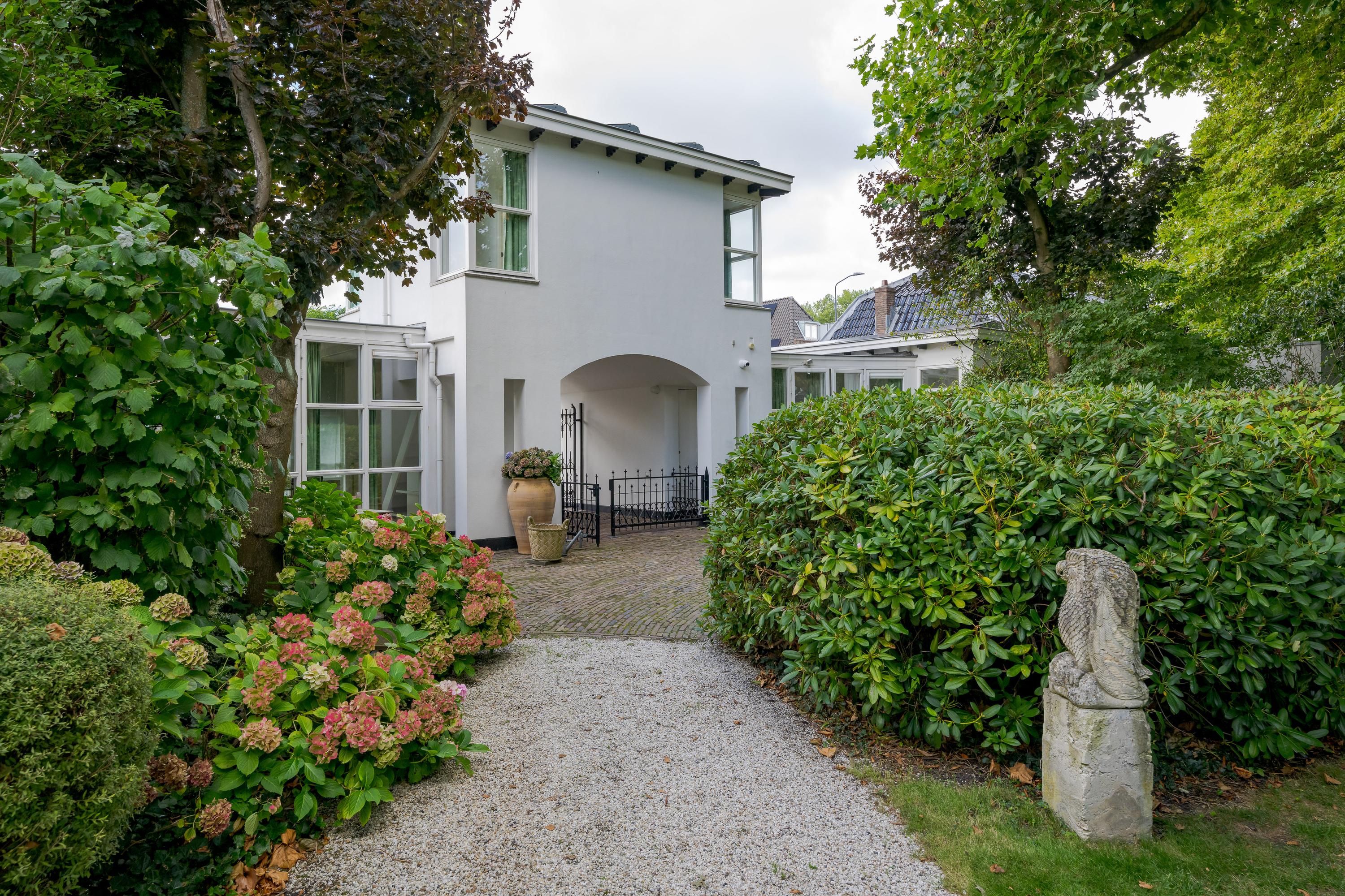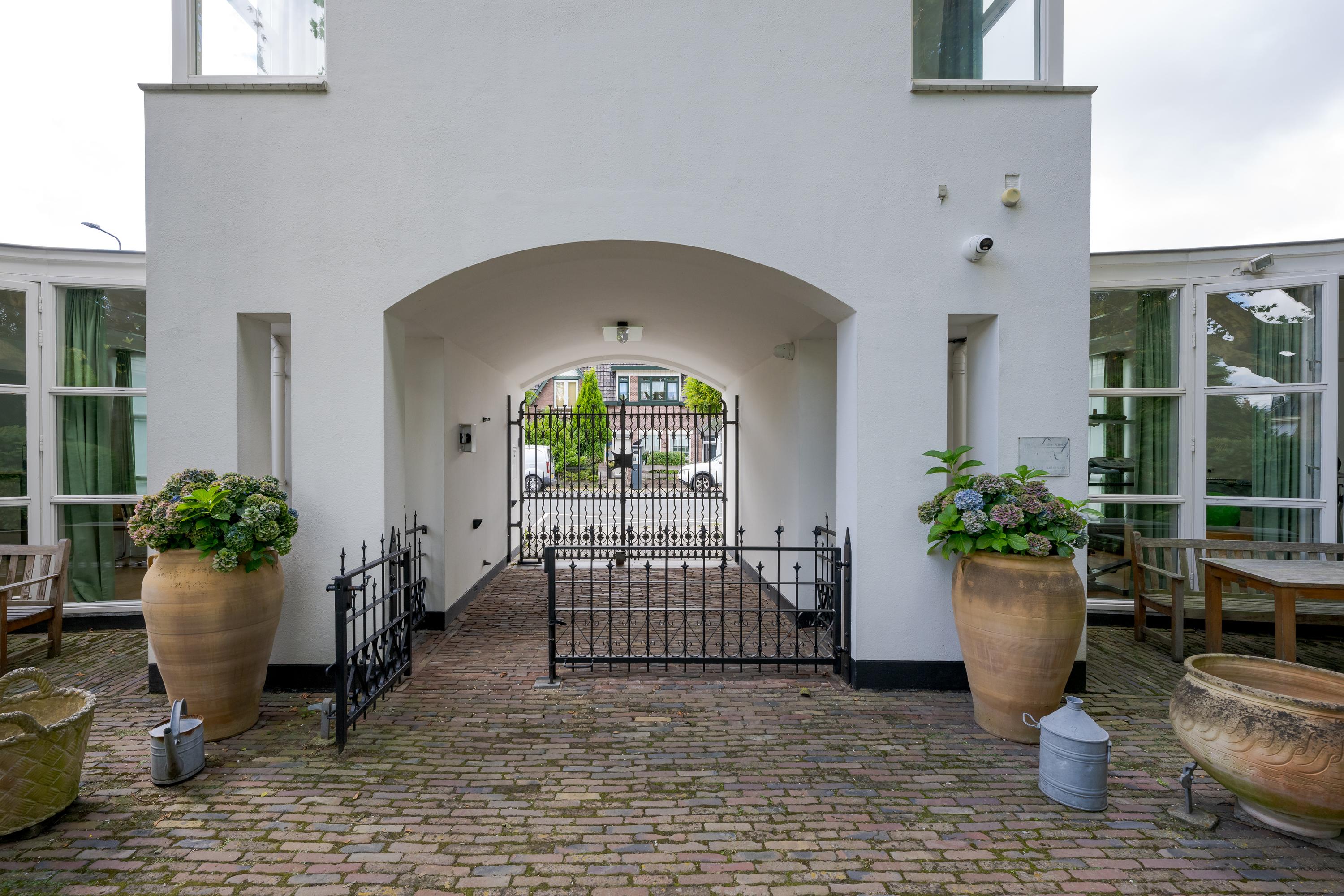 The 1995 gatehouse, designed symmetrically with glass façades and French doors, balances office and fitness space on the ground floor, with a luminous guest room above. Security, modern insulation, sustainable solar technologies, and linked alarm systems ensure discretion and peace of mind. Local amenities, shops, international schools, and the historic heart of Leiden are all within walking or cycling distance, while the A4’s swift connections link city, coast, and airport.