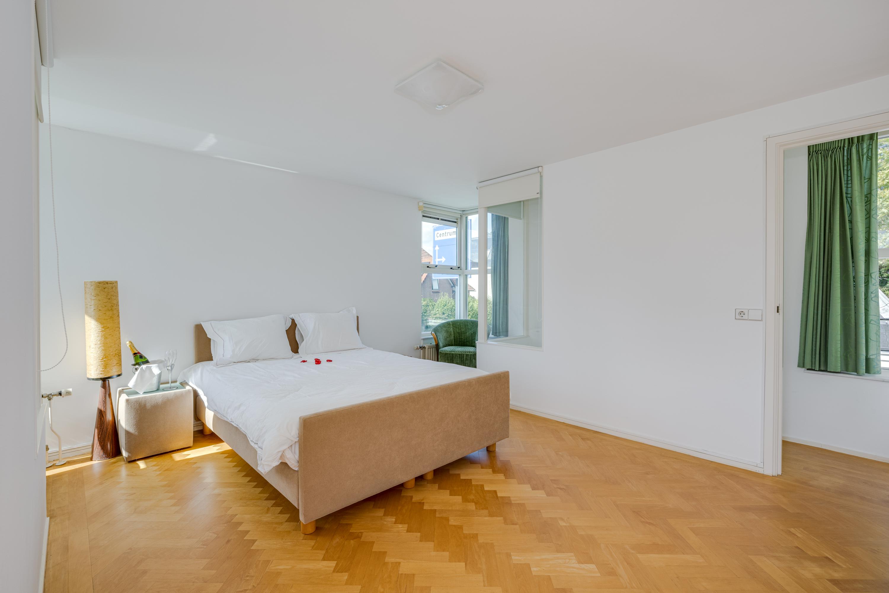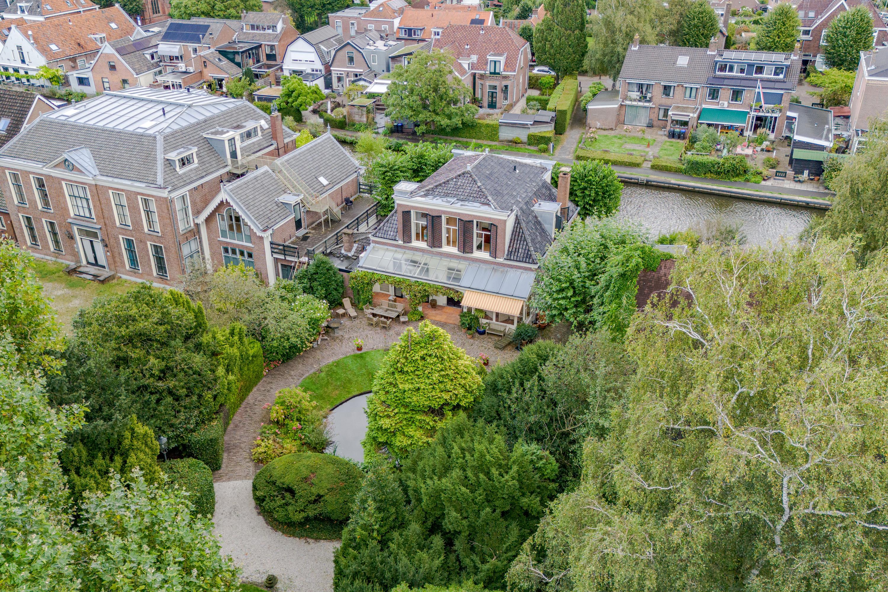Upstairs, four serene bedrooms offer leafy, water-facing perspectives; the master suite includes a walk-in wardrobe and a refined bathroom featuring granite floors, underfloor heating, a sunken bath, sauna, and Turkish bath. Three bathrooms in total assure comfort and privacy. The estate’s boathouse allows effortless river access, opening leisure to the waterways of De Kaag and the Groene Hart.