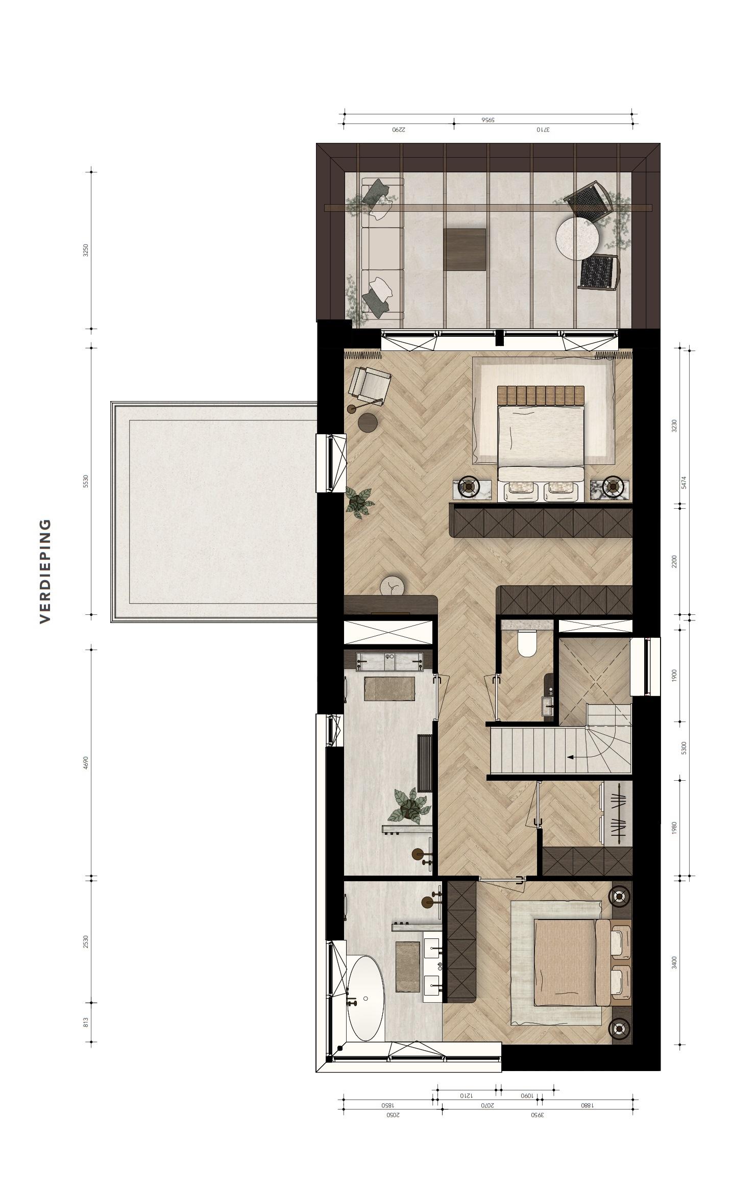Furthermore, the ground floor will be equipped with a spacious bedroom with bathroom (shell) entirely according to the buyer's wishes.