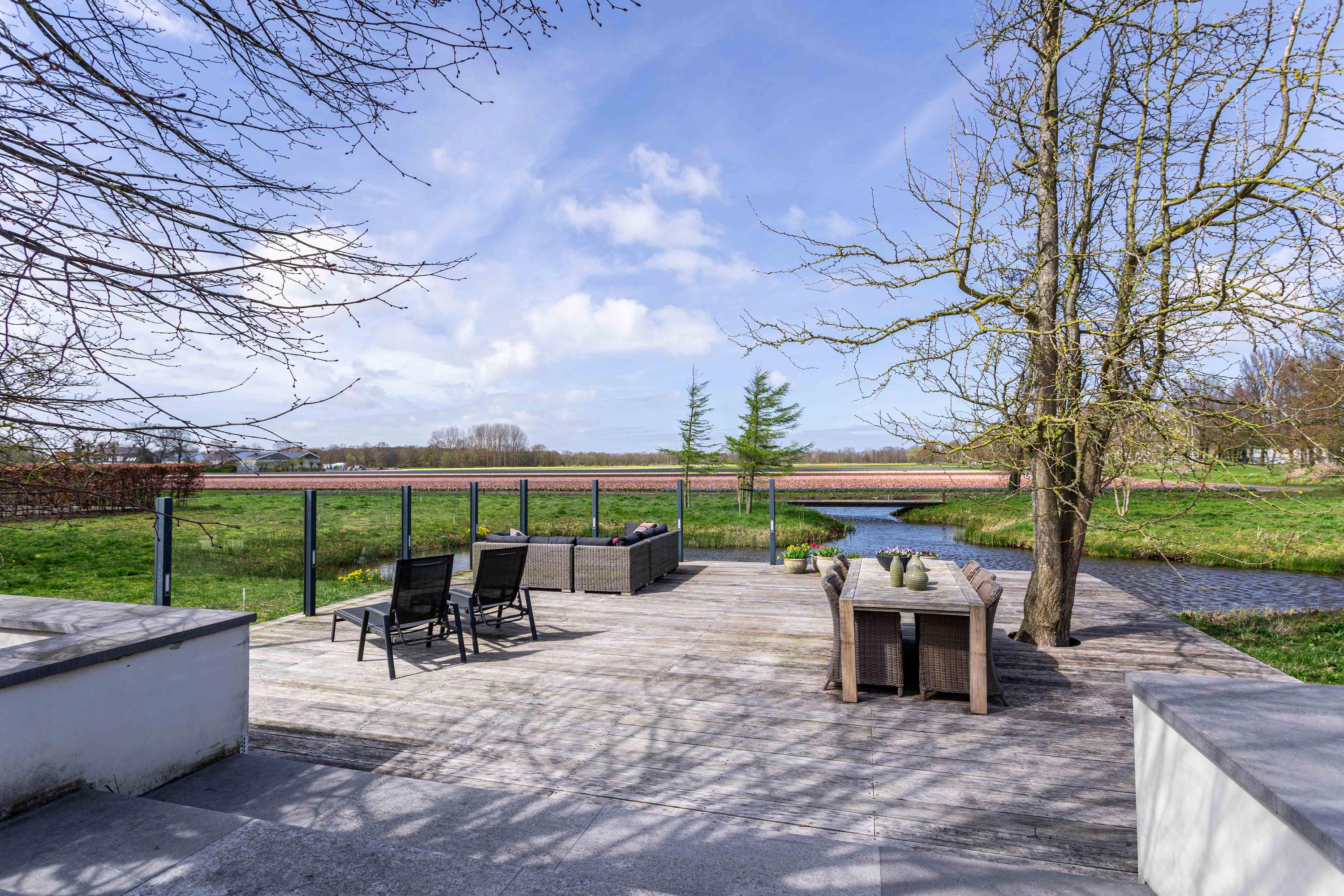 Country house Lisse offers a rare combination of timeless architecture and exceptional privacy, set in the heart of the famed Dutch bulb fields. This 590m² residence, built in 2009, rises discreetly from a 10,170m² plot encircled by water, a decorative electric fence, and landscaped gardens adorned with terraces, verandas, two ponds, and mature plantings. Within walking distance of Keukenhof and the historic castle, this country house places the rhythm of local life and the colors of the seasons at your doorstep.