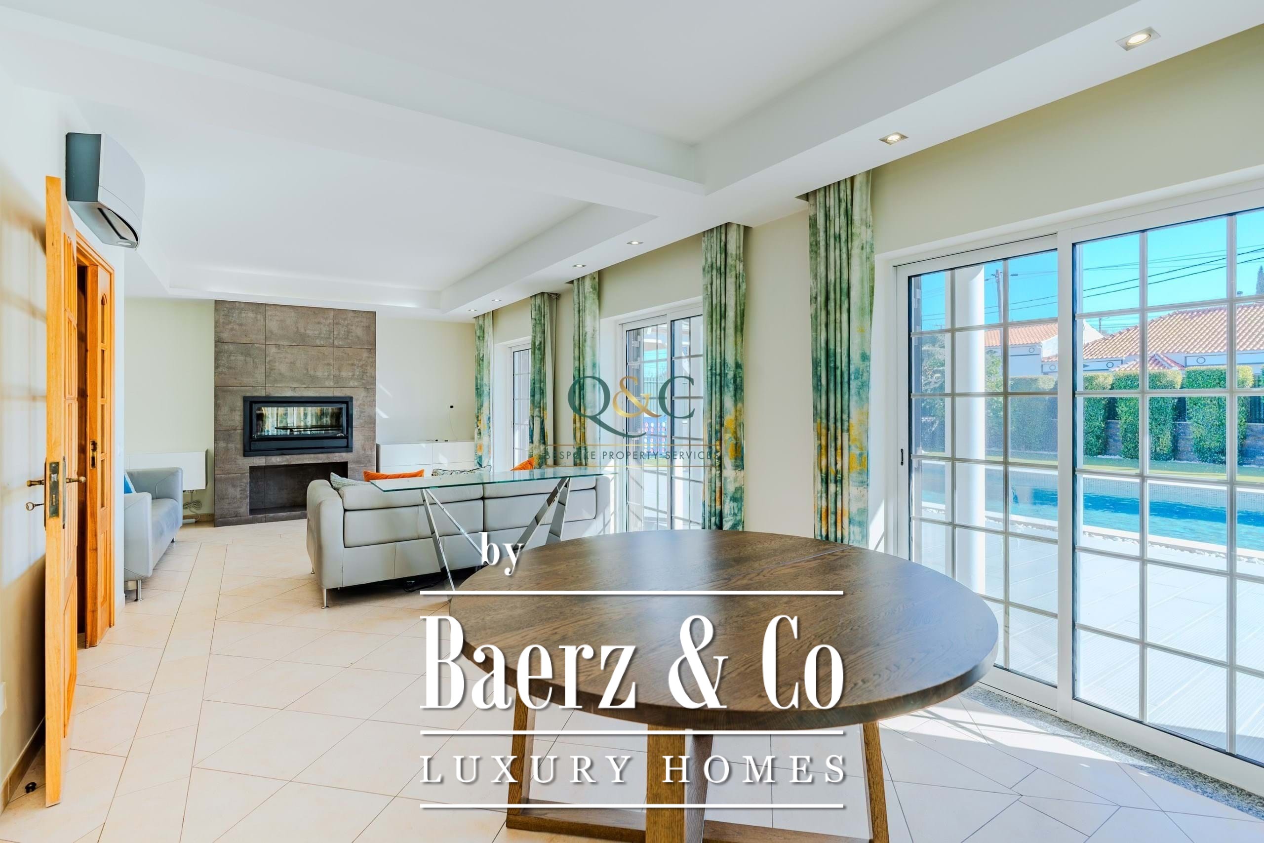 Entering Casa Oliveiras, a private swimming pool and inviting terrace welcome you, inviting quiet relaxation or effortless entertaining under the Algarve sun. The villa features a garage, basement, and dedicated laundry room, combining everyday practicality with understated comfort. Air conditioning, ambient music, double glazing, and a central vacuum system enhance the daily living experience, while a fully equipped kitchen and built-in wardrobes offer further convenience.