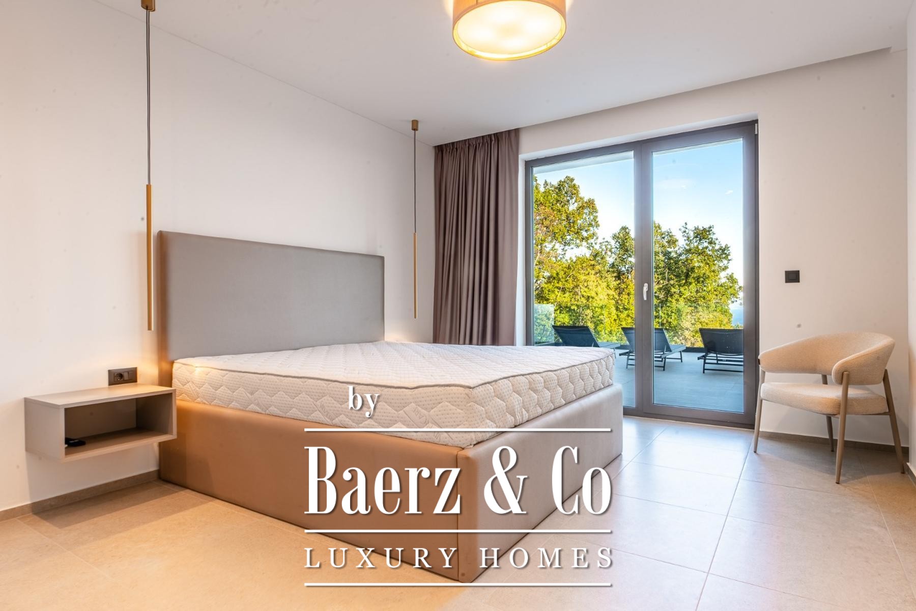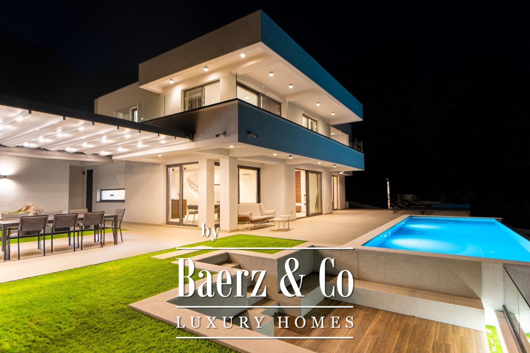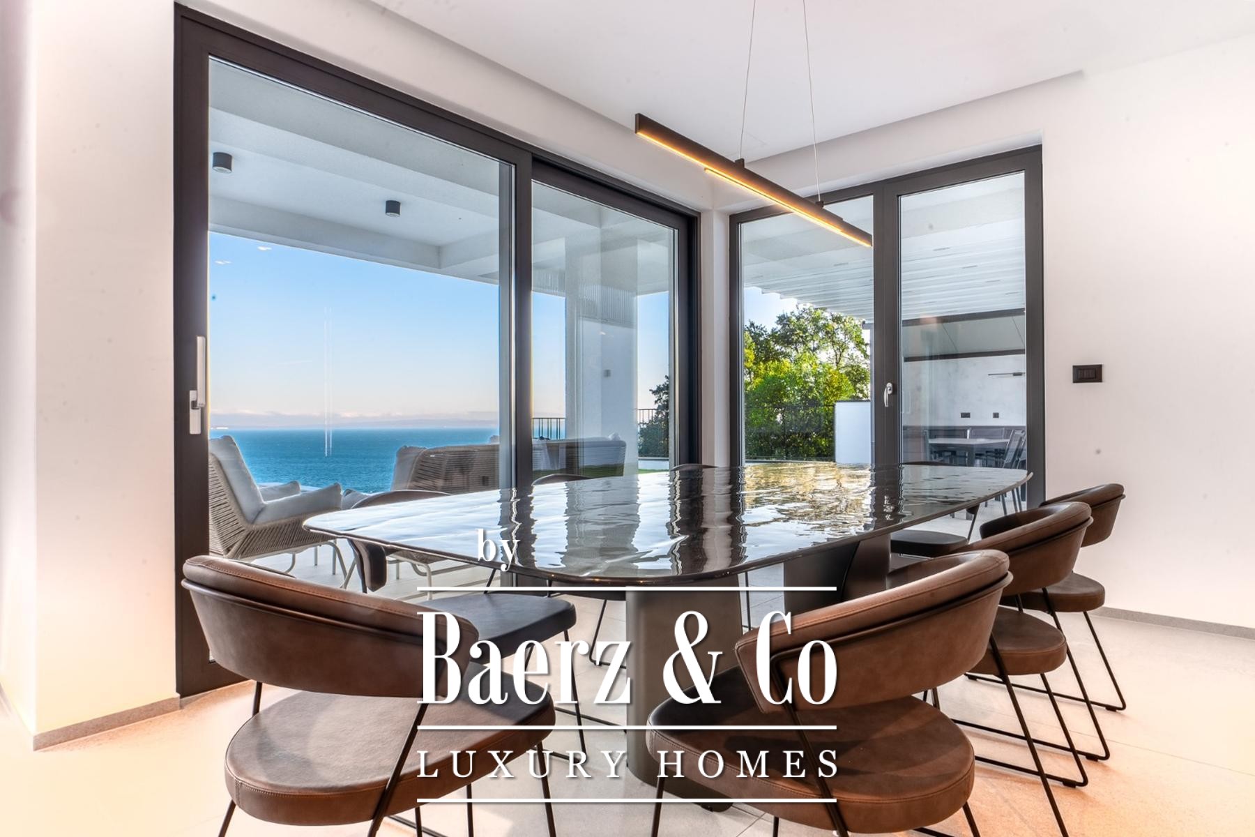 Modern villa Lovran sets a refined standard for contemporary living, offering 250 m² of light-filled interiors on the tranquil hillside above Kvarner Bay. This property presents a considered architectural rhythm across two floors, each appointed for comfort and privacy. Four generous bedrooms and four bathrooms provide space for family and guests, while a large open-plan living and dining area flows seamlessly toward the panoramic terrace. Floor-to-ceiling windows frame uncompromised bay views, imbuing the home with a sense of openness and calm.